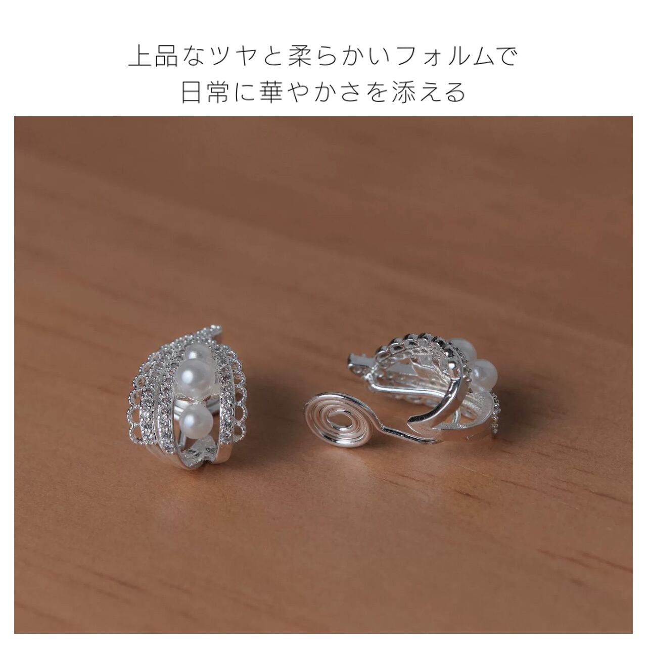 B247 .レース パール 耳飾り スクリュー式 925シルバー