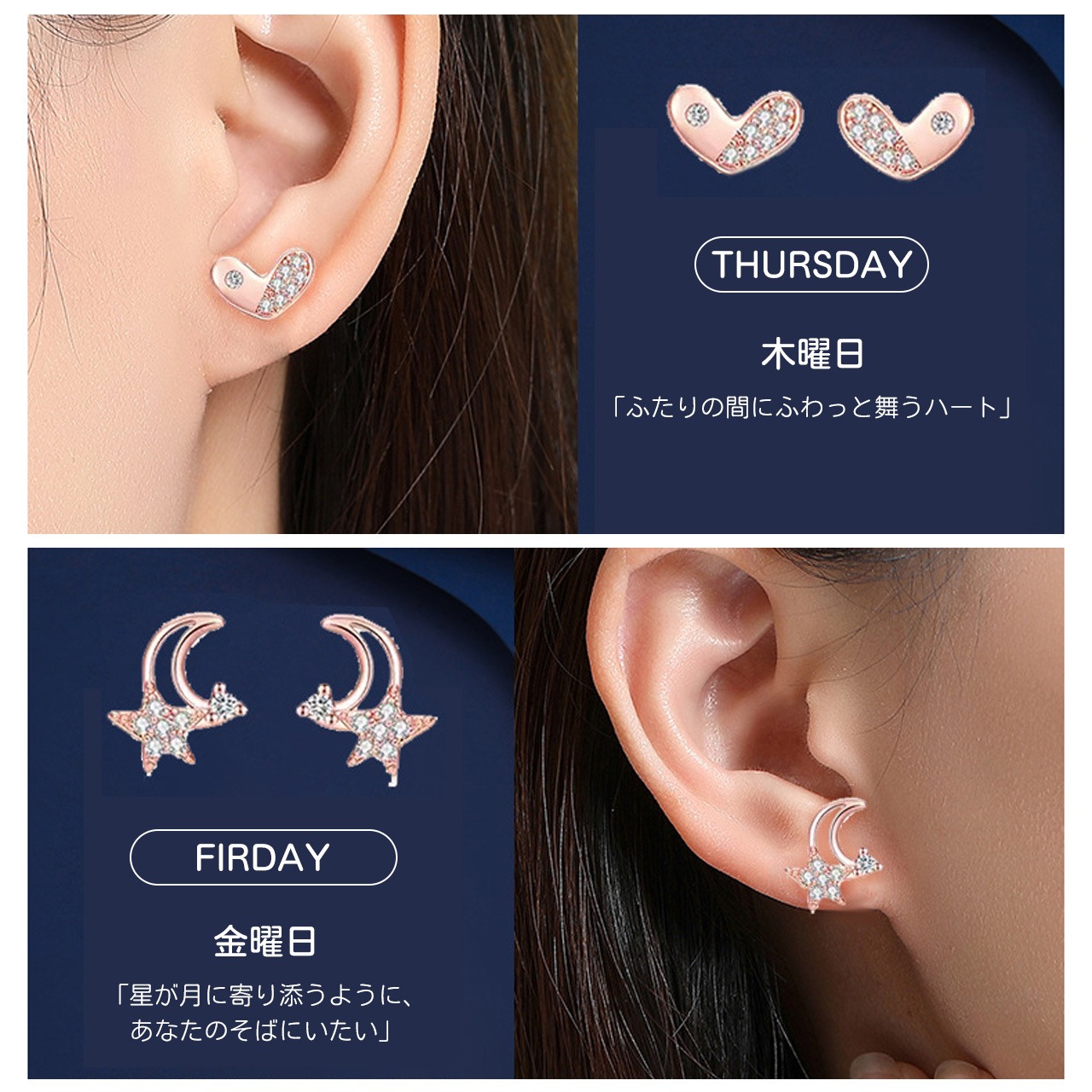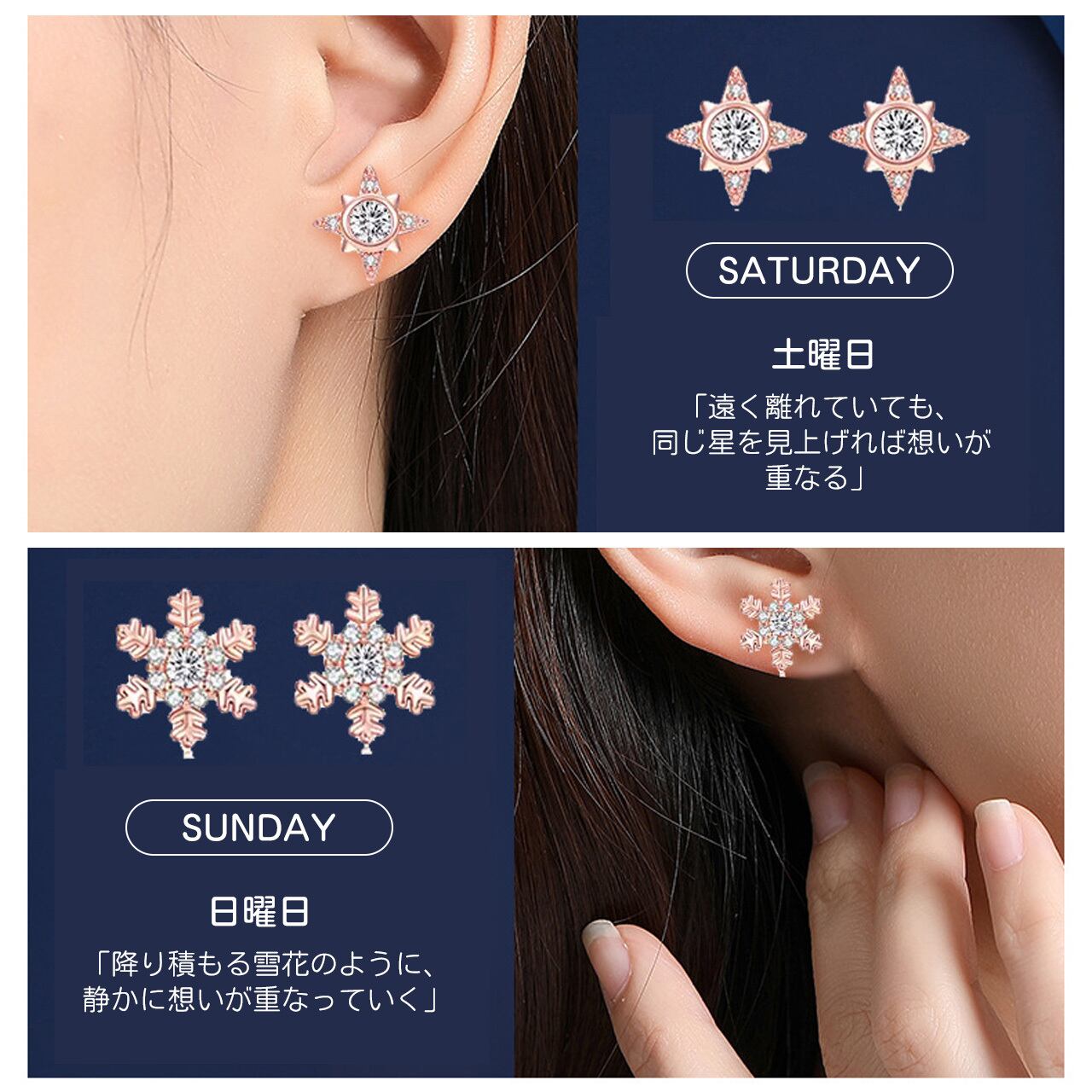 B255 .曜日ピアス 女性向けS925 銀針7日違うスタイル 敏感肌安心