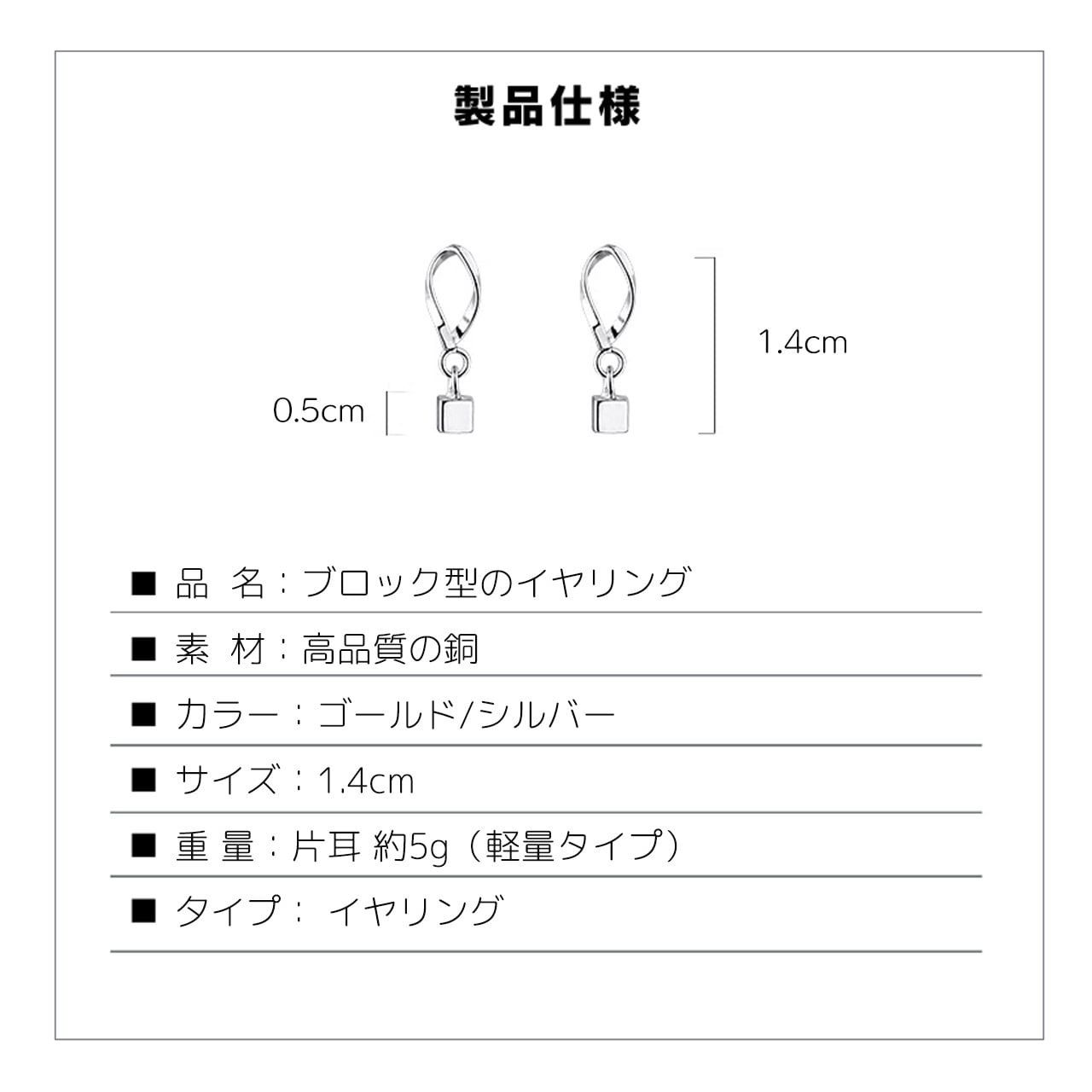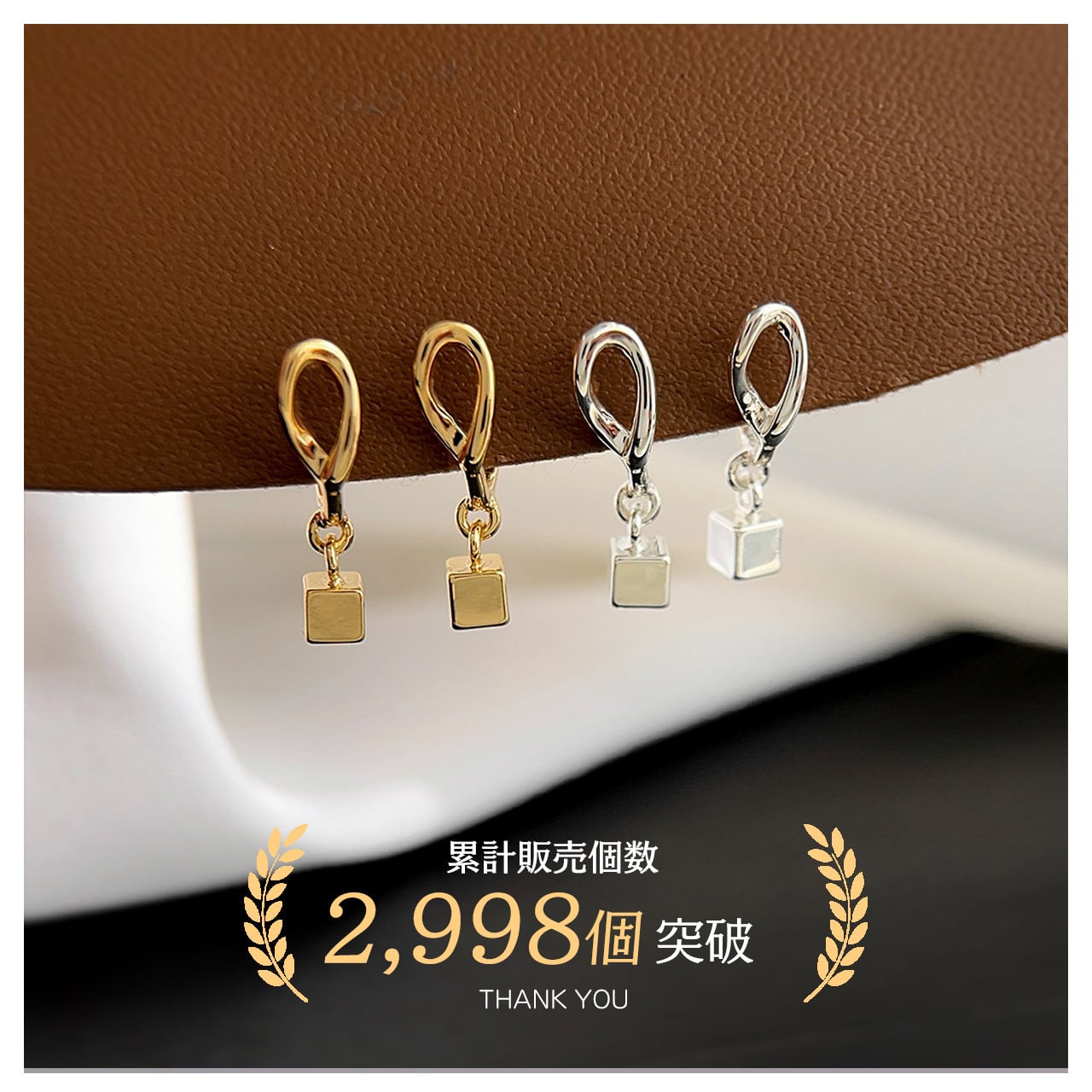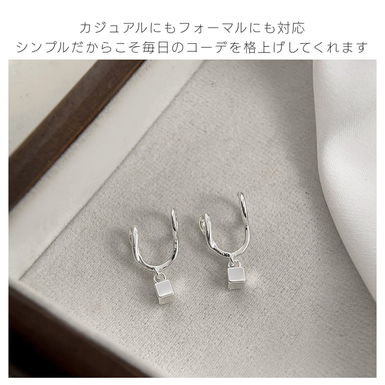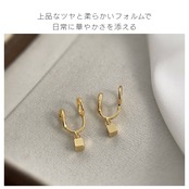 金属小四角のシンプルジオメトリーデザインで、オシャレ感と可愛らしさを両立;