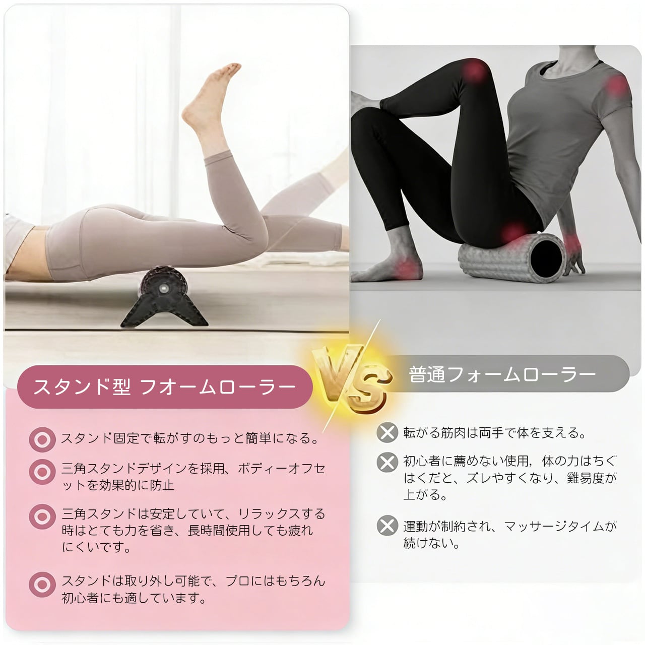 高密度中実素材を採用,筋肉の凝りを深くほぐしてくれます;
