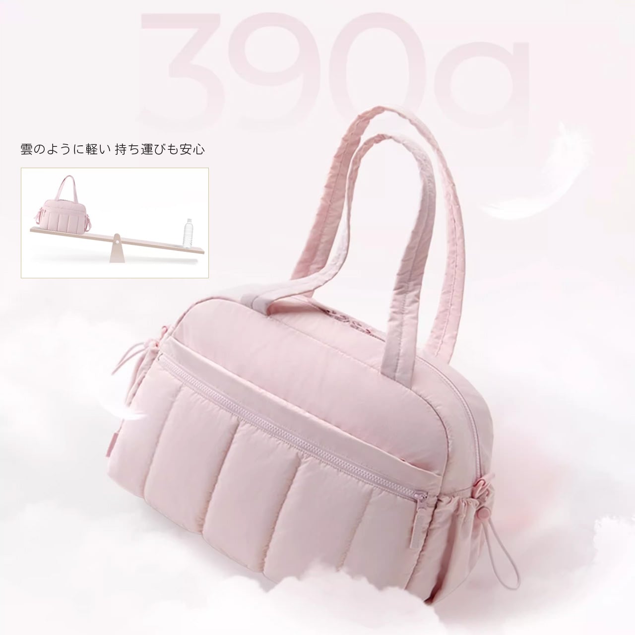 わずか390gの軽量設計。長時間の持ち運びもストレスフリー。