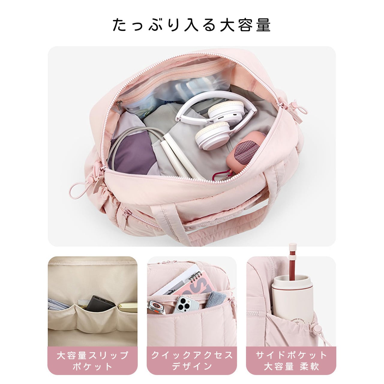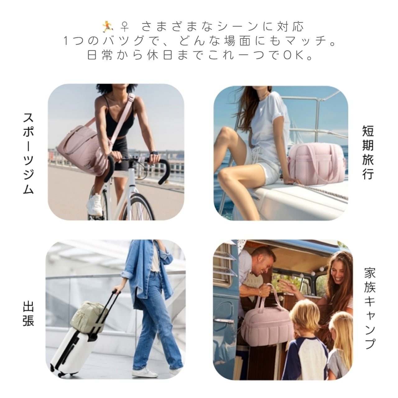 ジム、短期旅行、出張、家族のお出かけなど、あらゆるシーンで大活躍。
