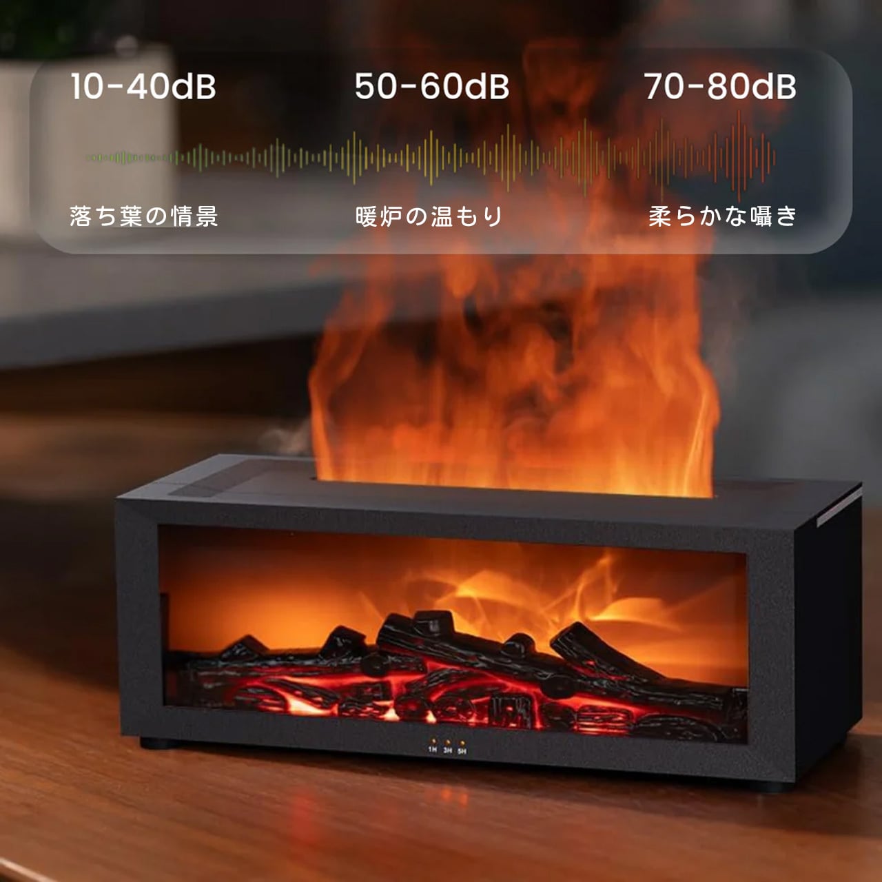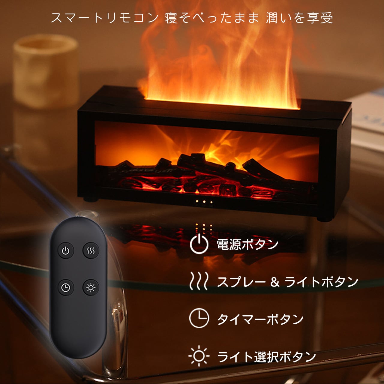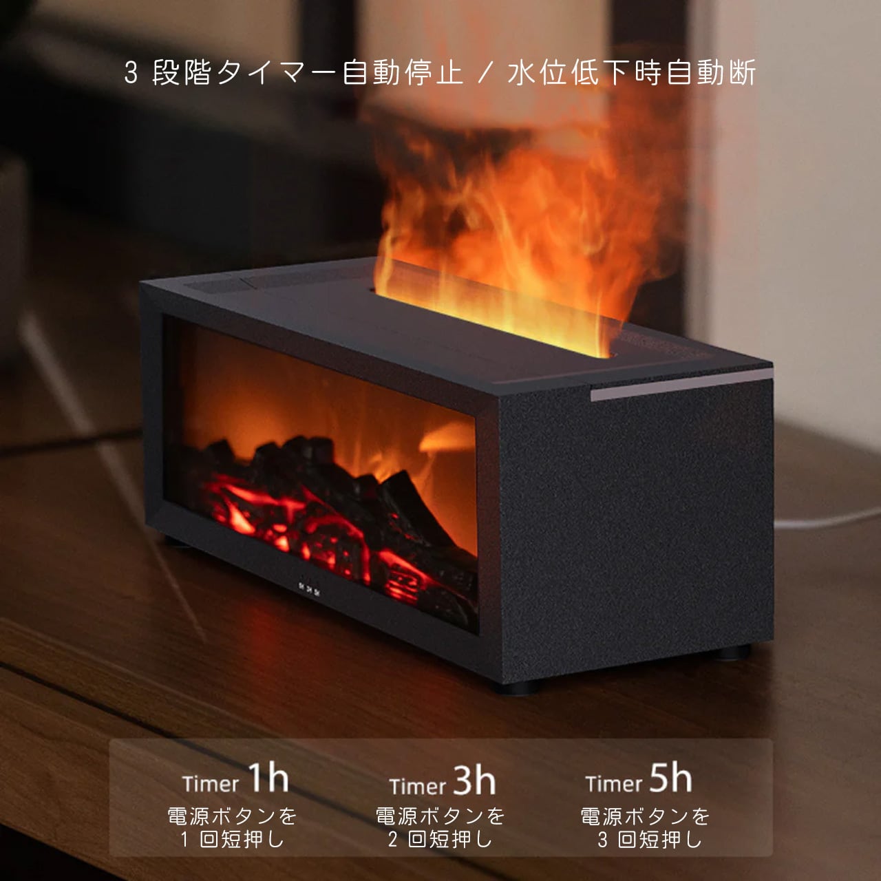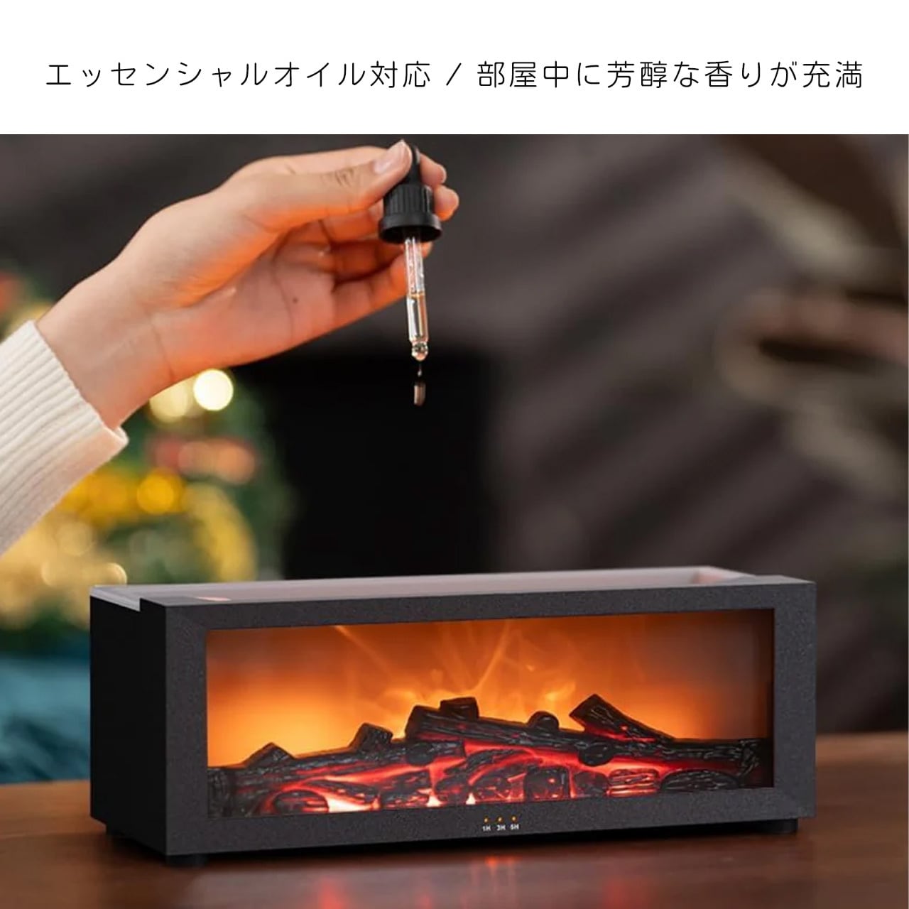 B271 .ミニストーブ トップアロマディフューザー 暖炉スタイル エッセンシャルオイル対応 難燃性 ファッション加湿器 7 色 LED 搭載 3 段階タイマー 缺水自動停止 大容量 Type-C 電源 リモコン付き