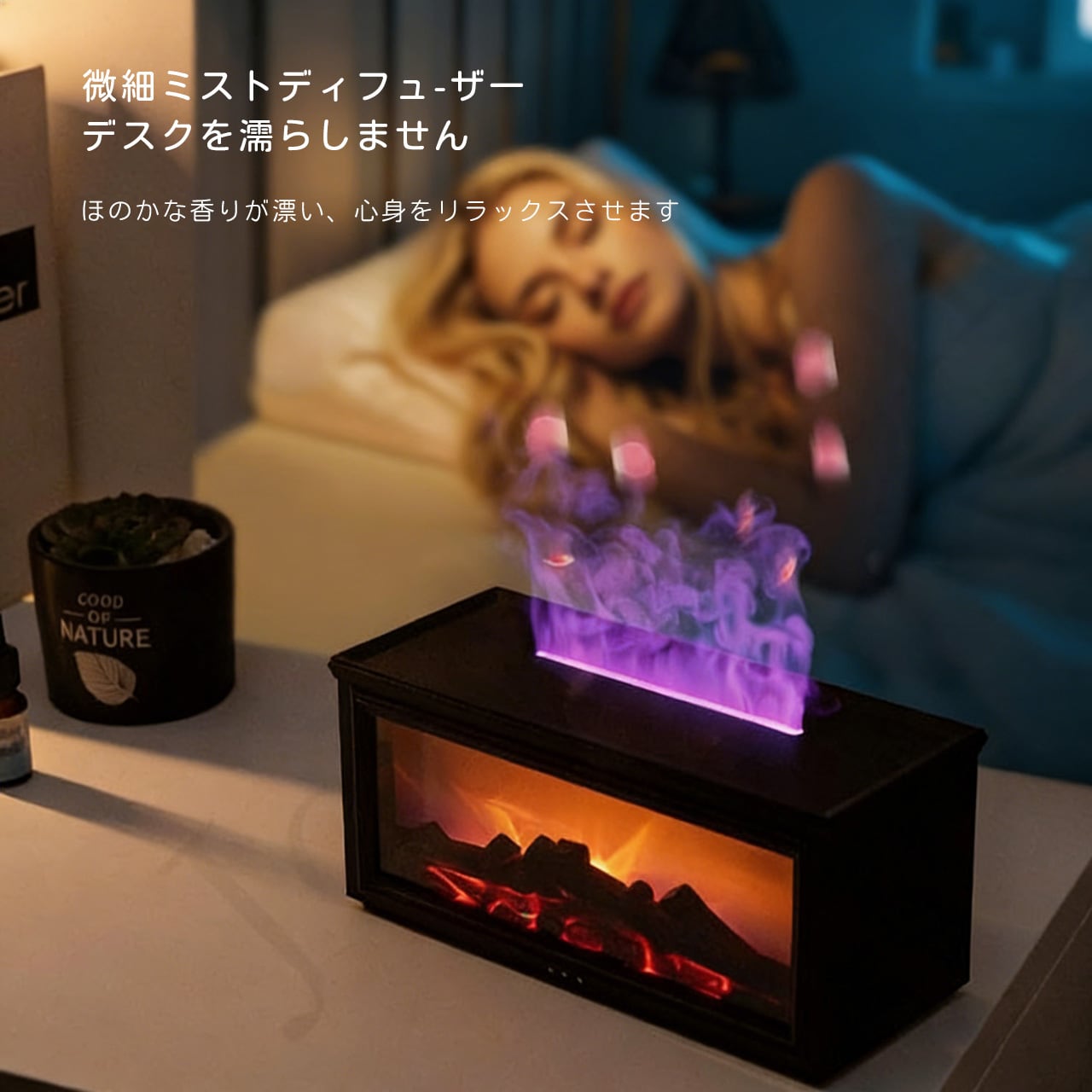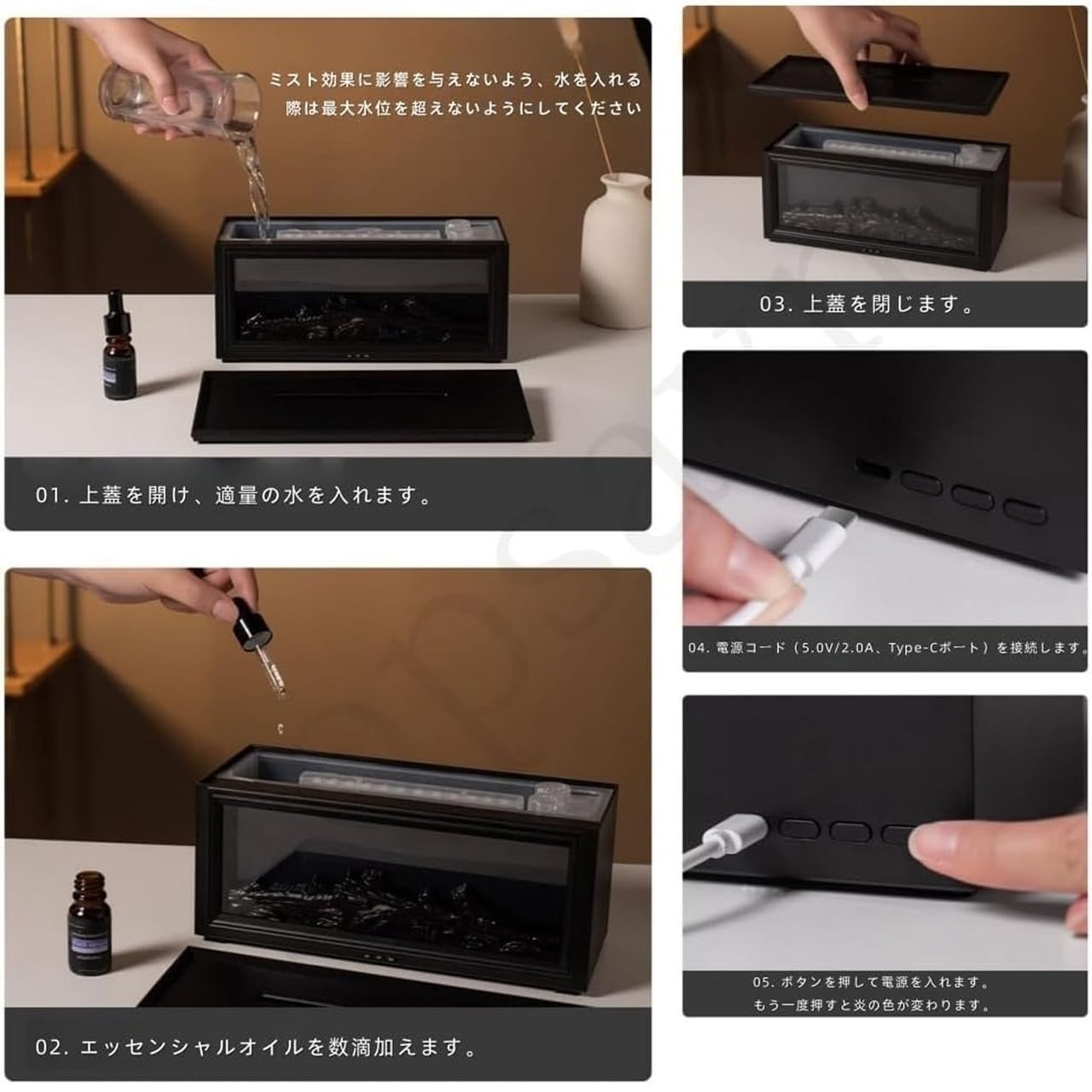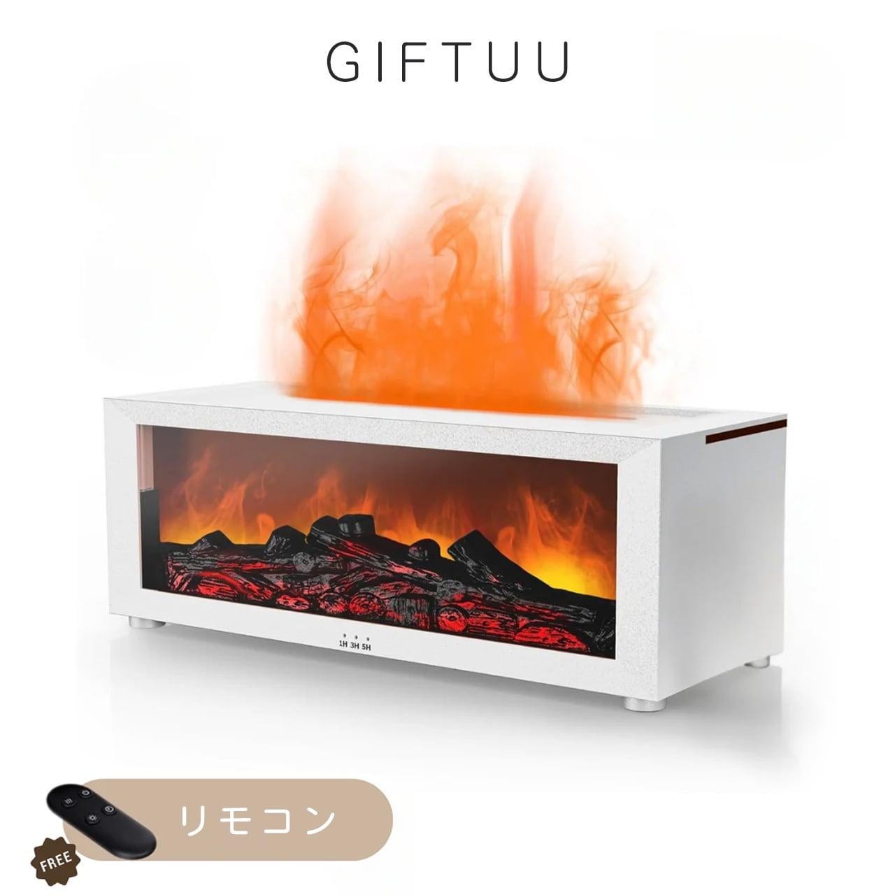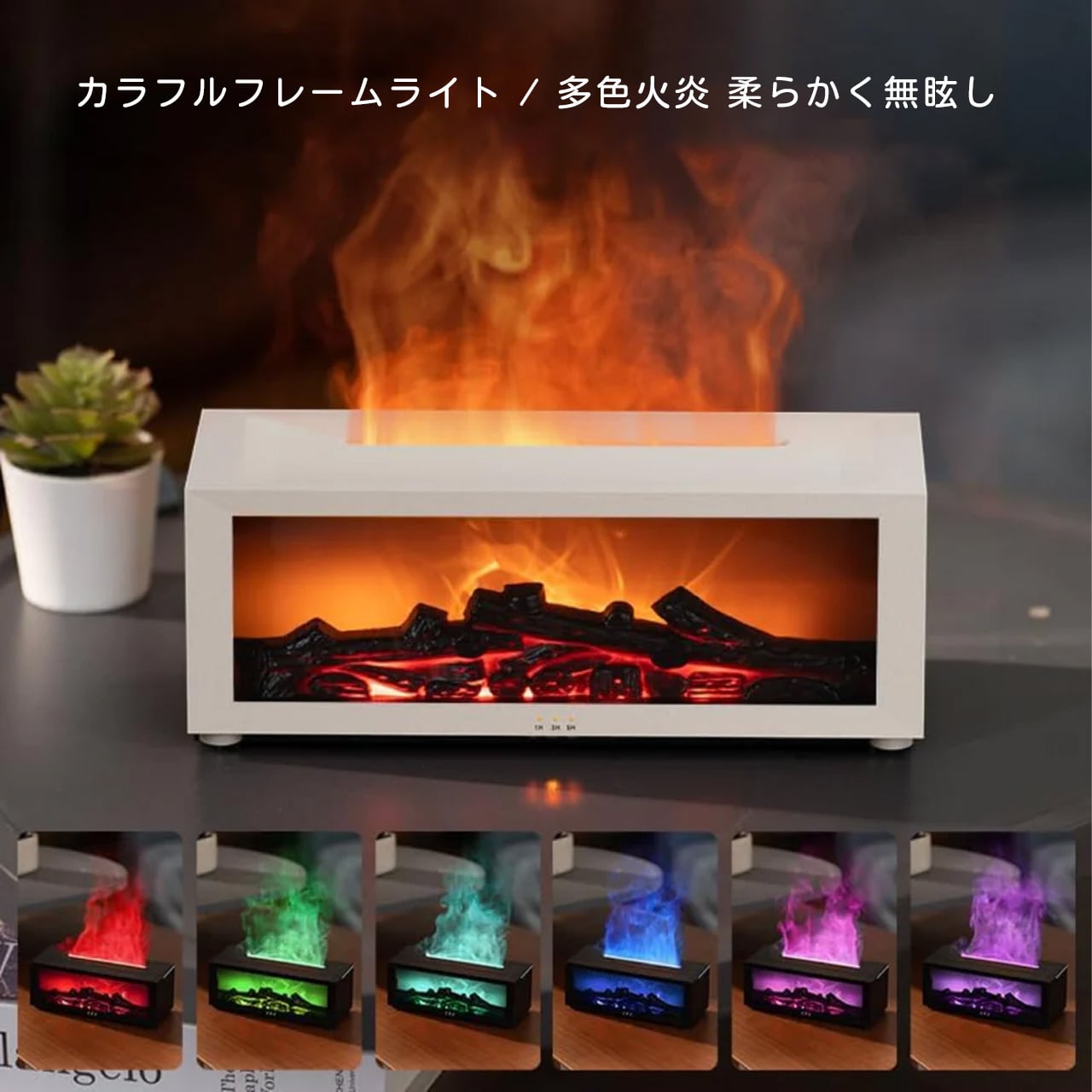 B271 .ミニストーブ トップアロマディフューザー 暖炉スタイル エッセンシャルオイル対応 難燃性 ファッション加湿器 7 色 LED 搭載 3 段階タイマー 缺水自動停止 大容量 Type-C 電源 リモコン付き