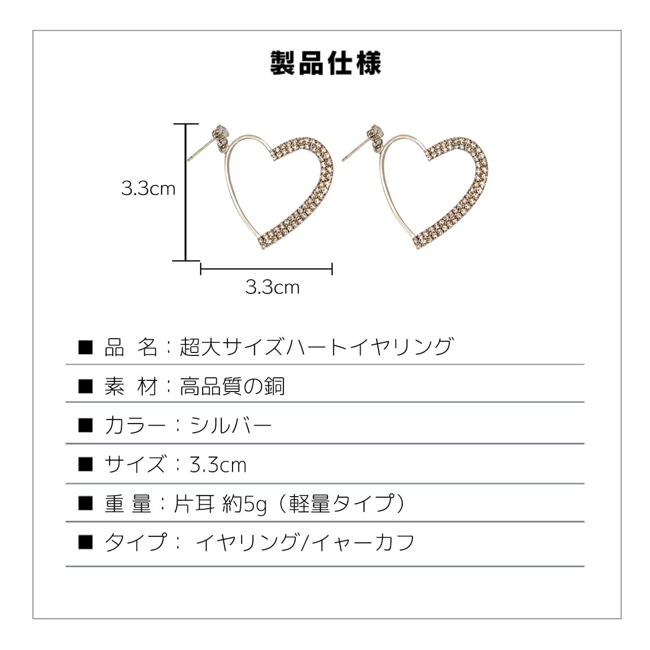 B278 .超大サイズハートイヤリング(イャーカフ / イャリング)