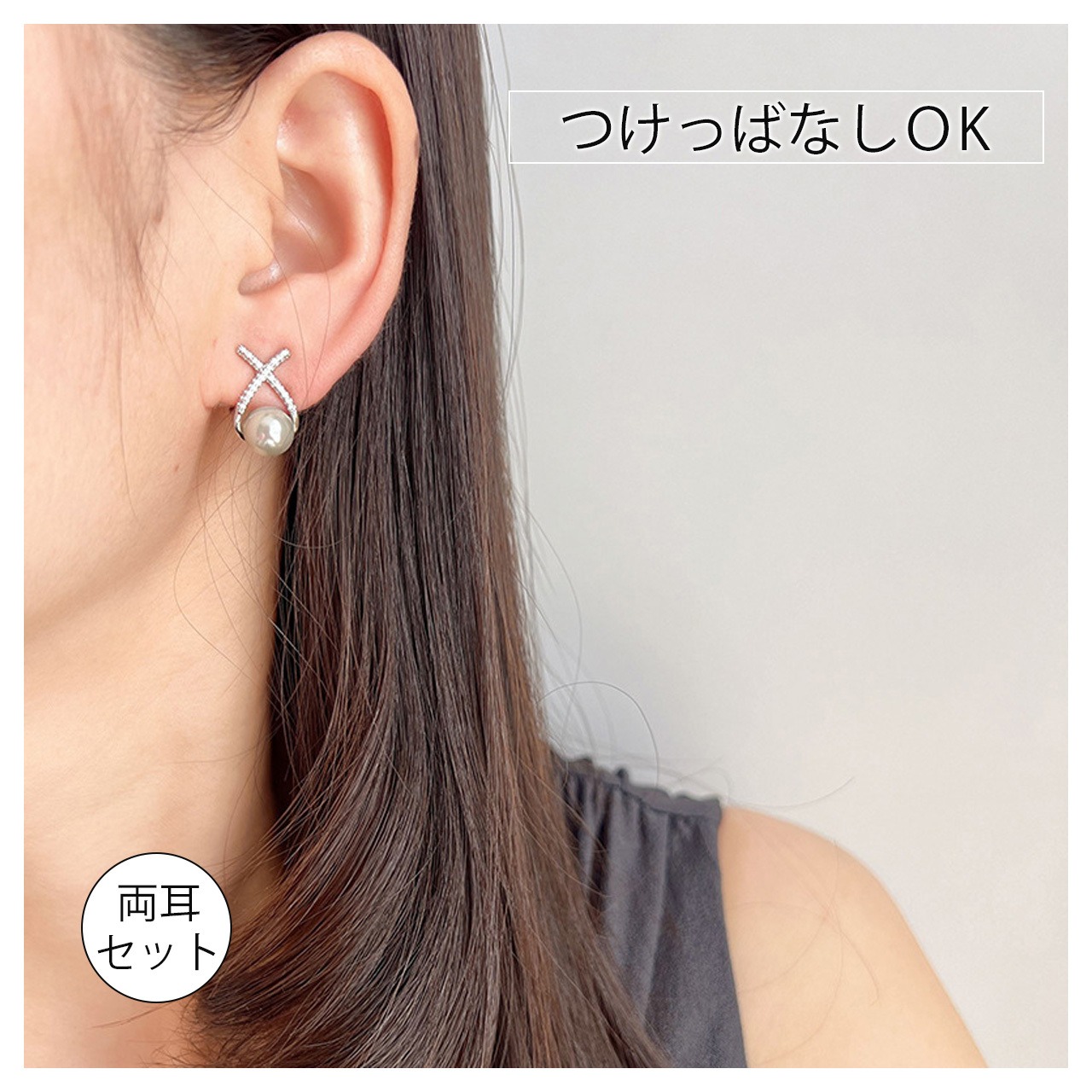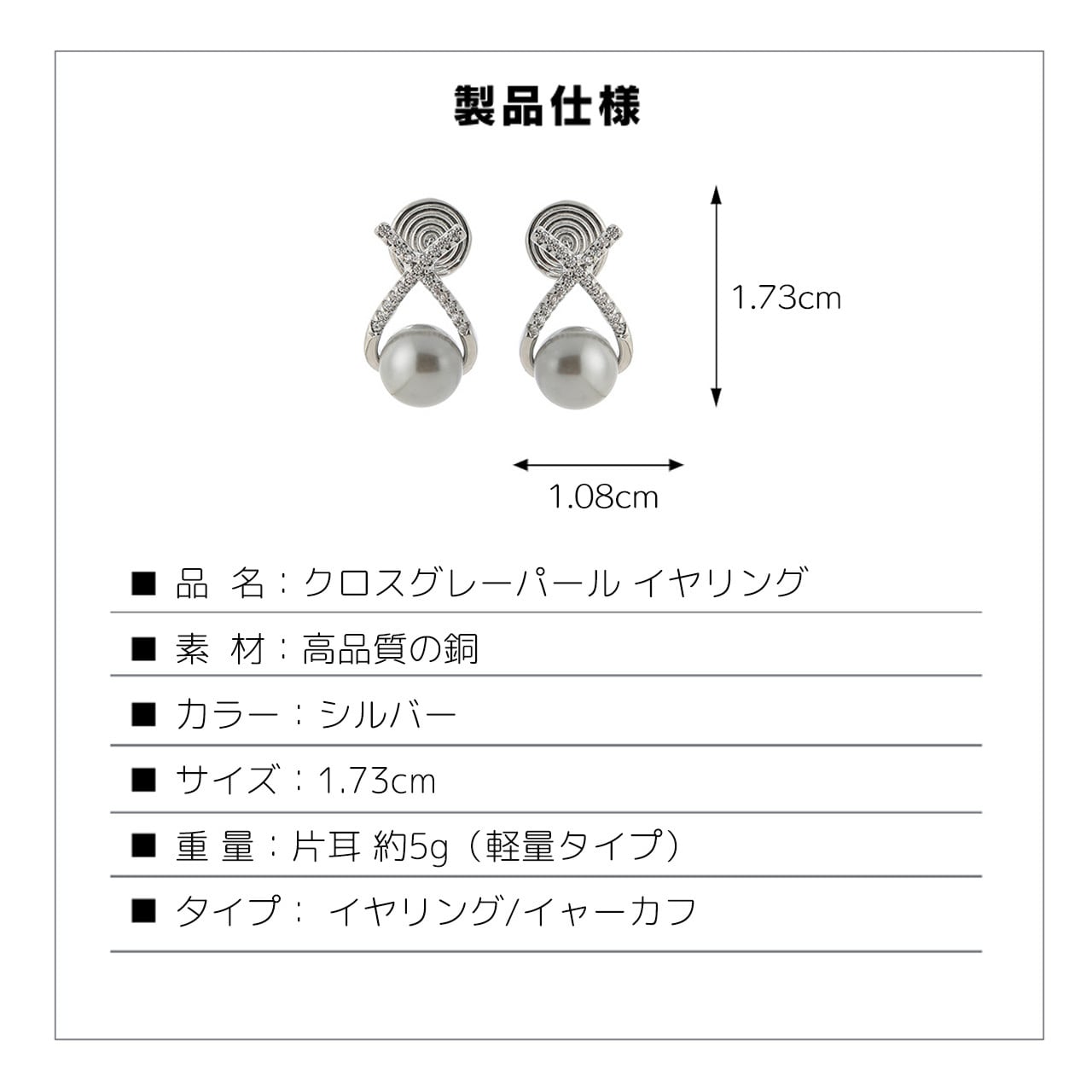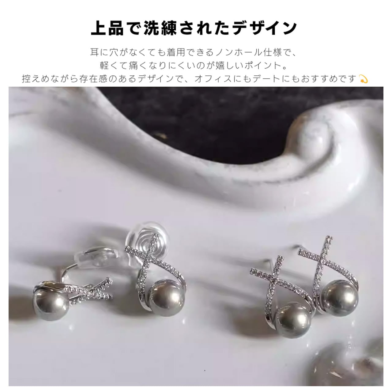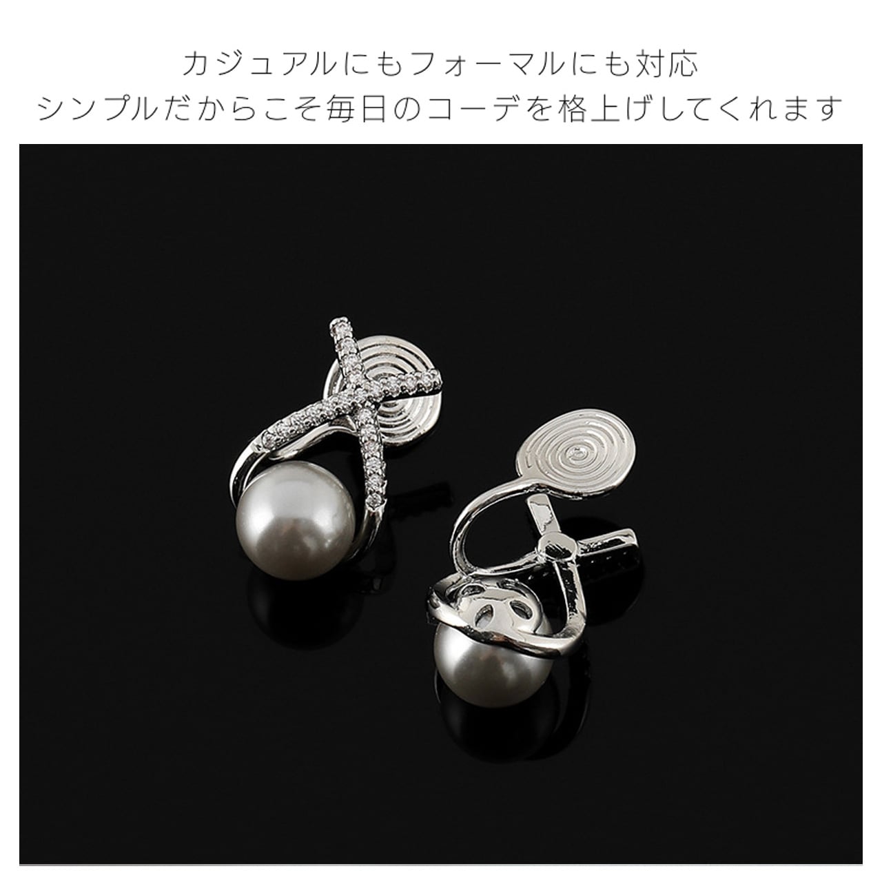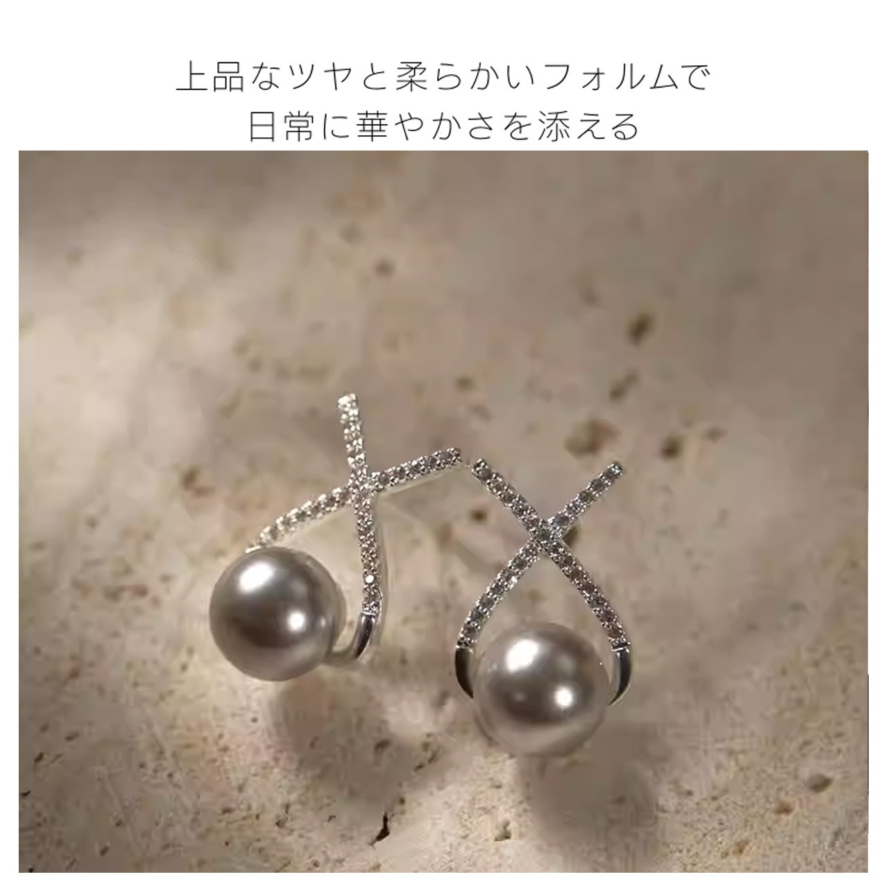 B280 .ヴィンテージジルコン 銀灰色パール ピアス & イヤリング