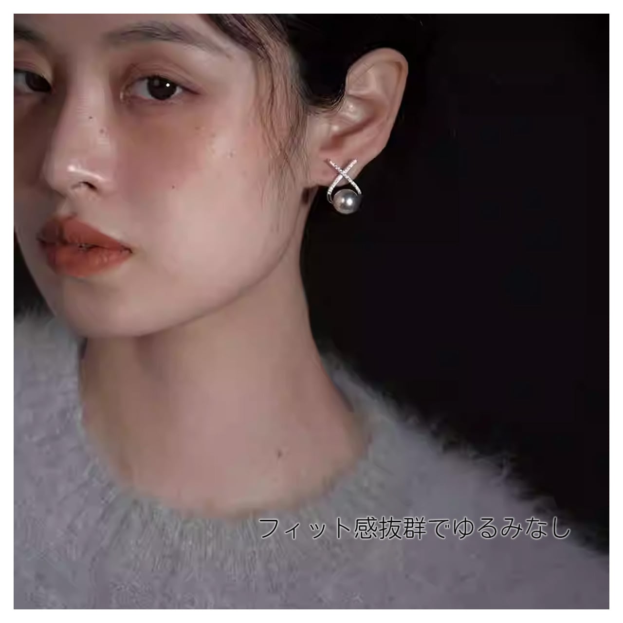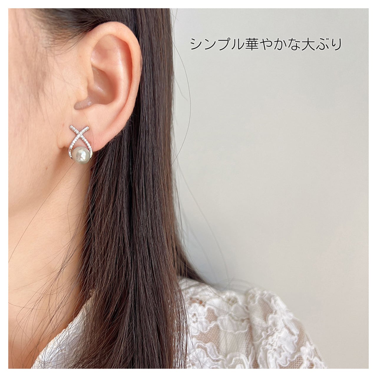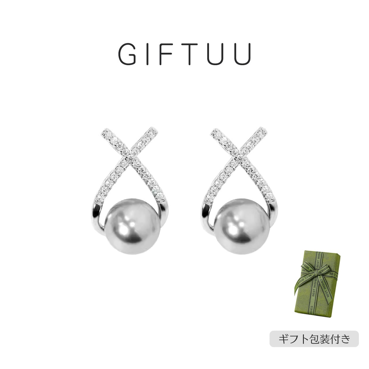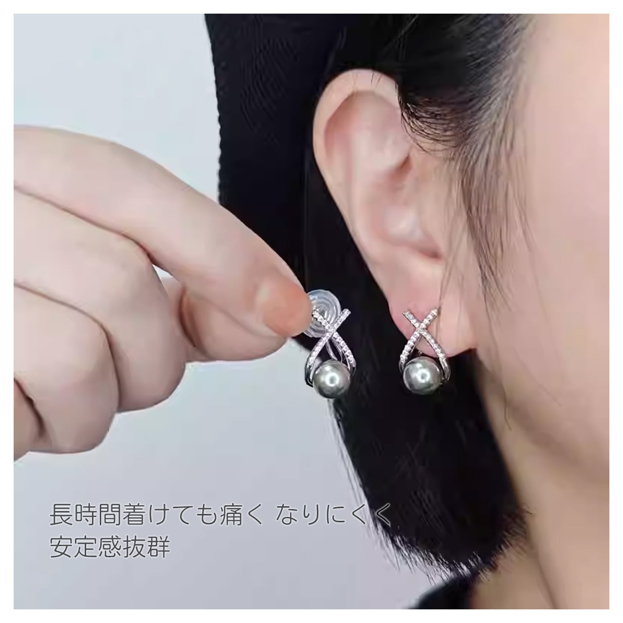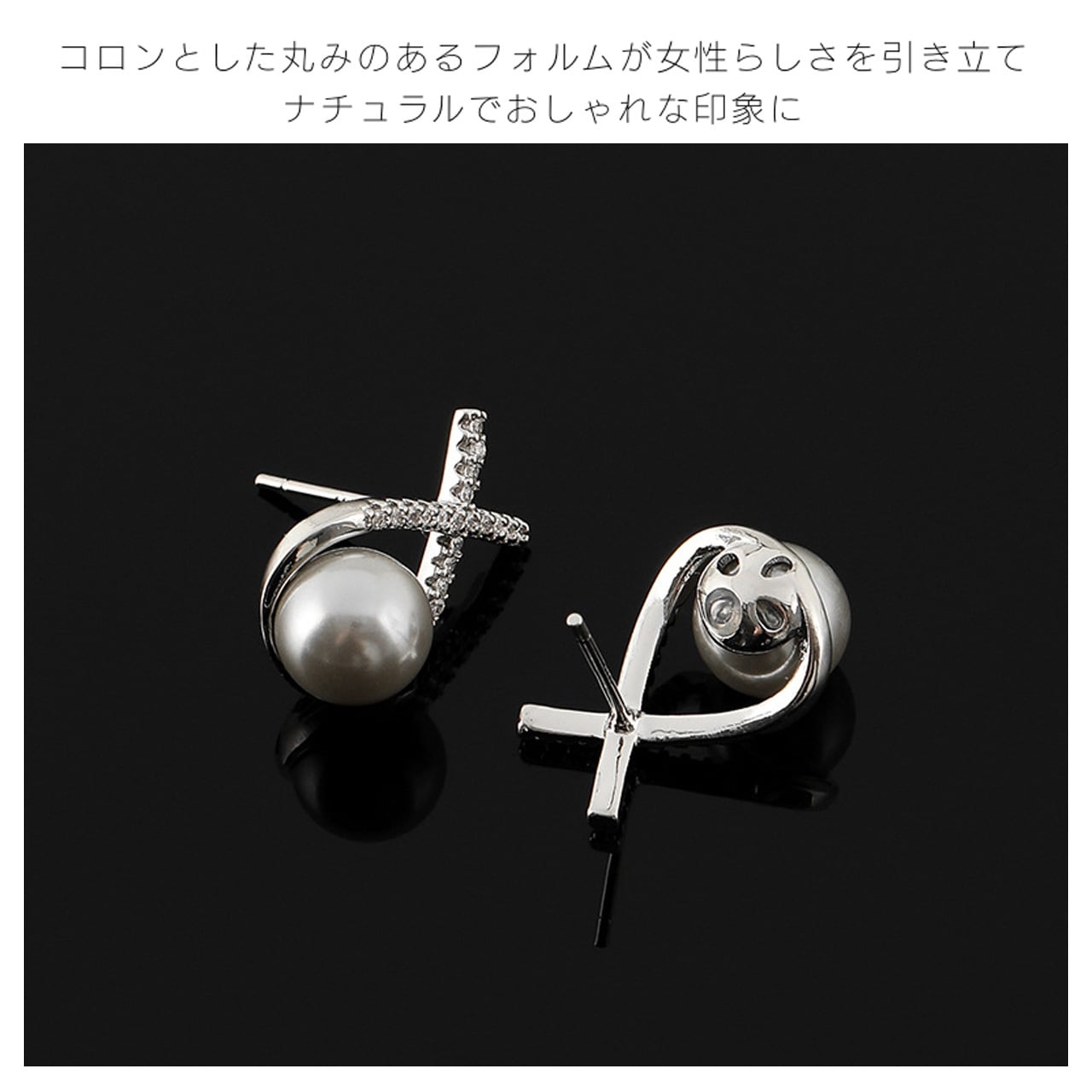 B280 .ヴィンテージジルコン 銀灰色パール ピアス & イヤリング