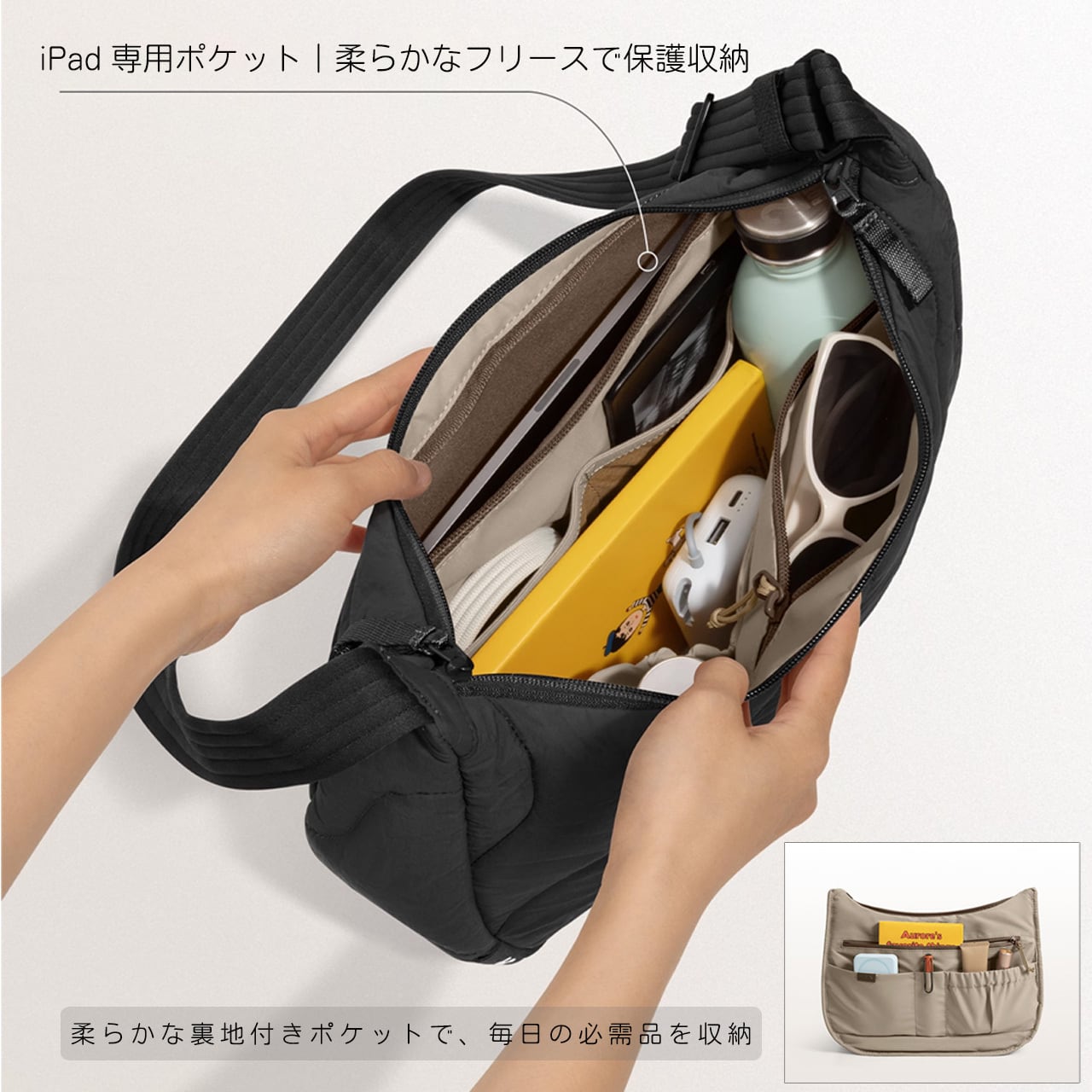 B281 .詰め綿レディースバッグ 韓国風万能デザイン ファッショナブルハーフムーンバッグ シンプルショルダー&クロスボディ
