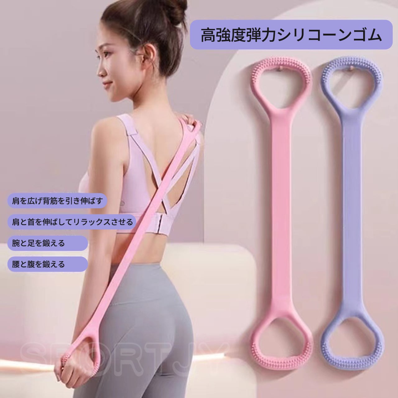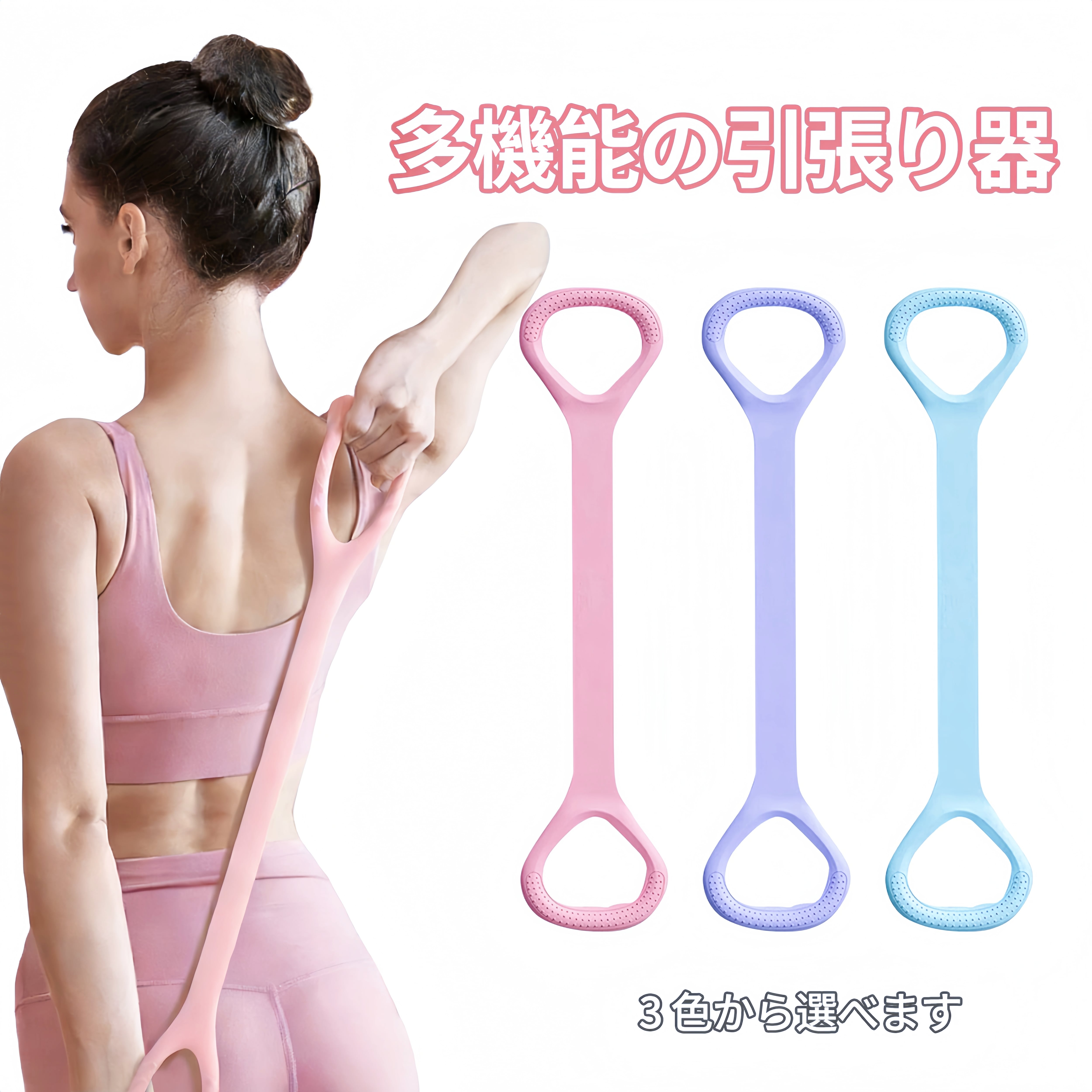 46 .背中・ネック用ストレッチ器具|シリコン素材 家庭用 ヨガストレッチ 腕トレ対応(ピンク/パープル/ブルー)