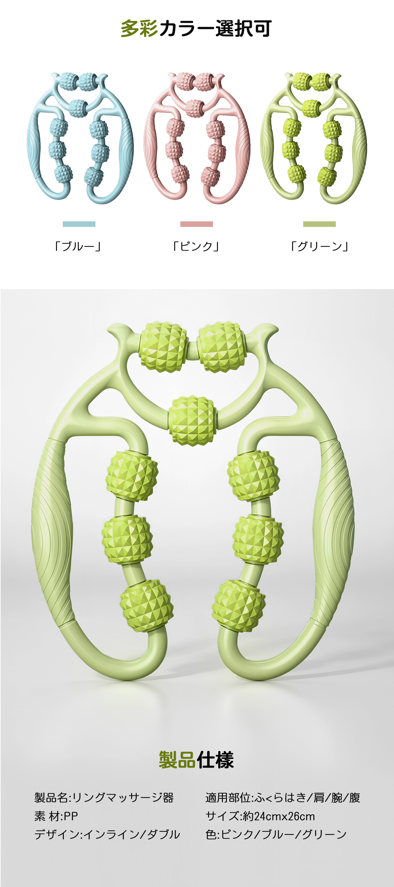 9-1 .リングマッサージャー、突起付きマッサージローラー、ふくらはぎの筋肉用、ダブルローラー、ローラー軸、脚痩せサポート、脚を巻くリング付き(ピンク,青,グリーン,24*26cm)