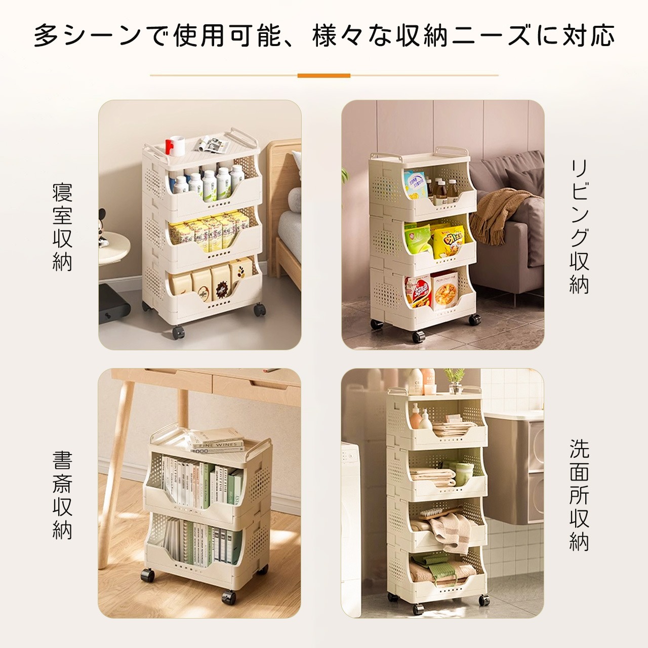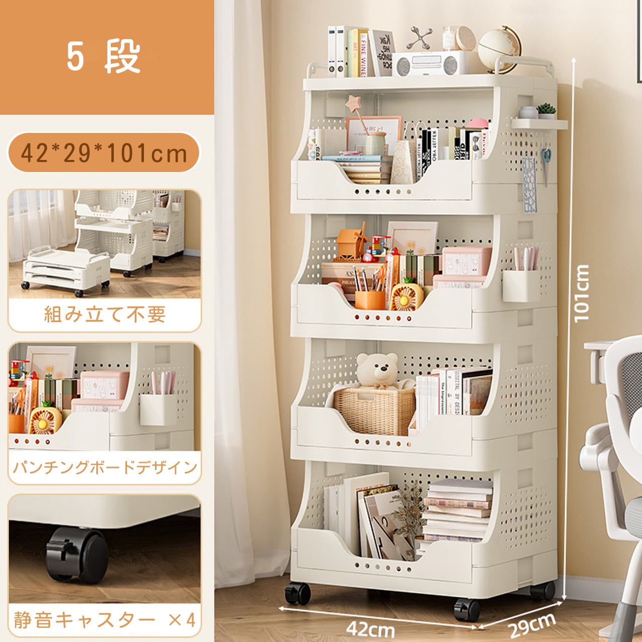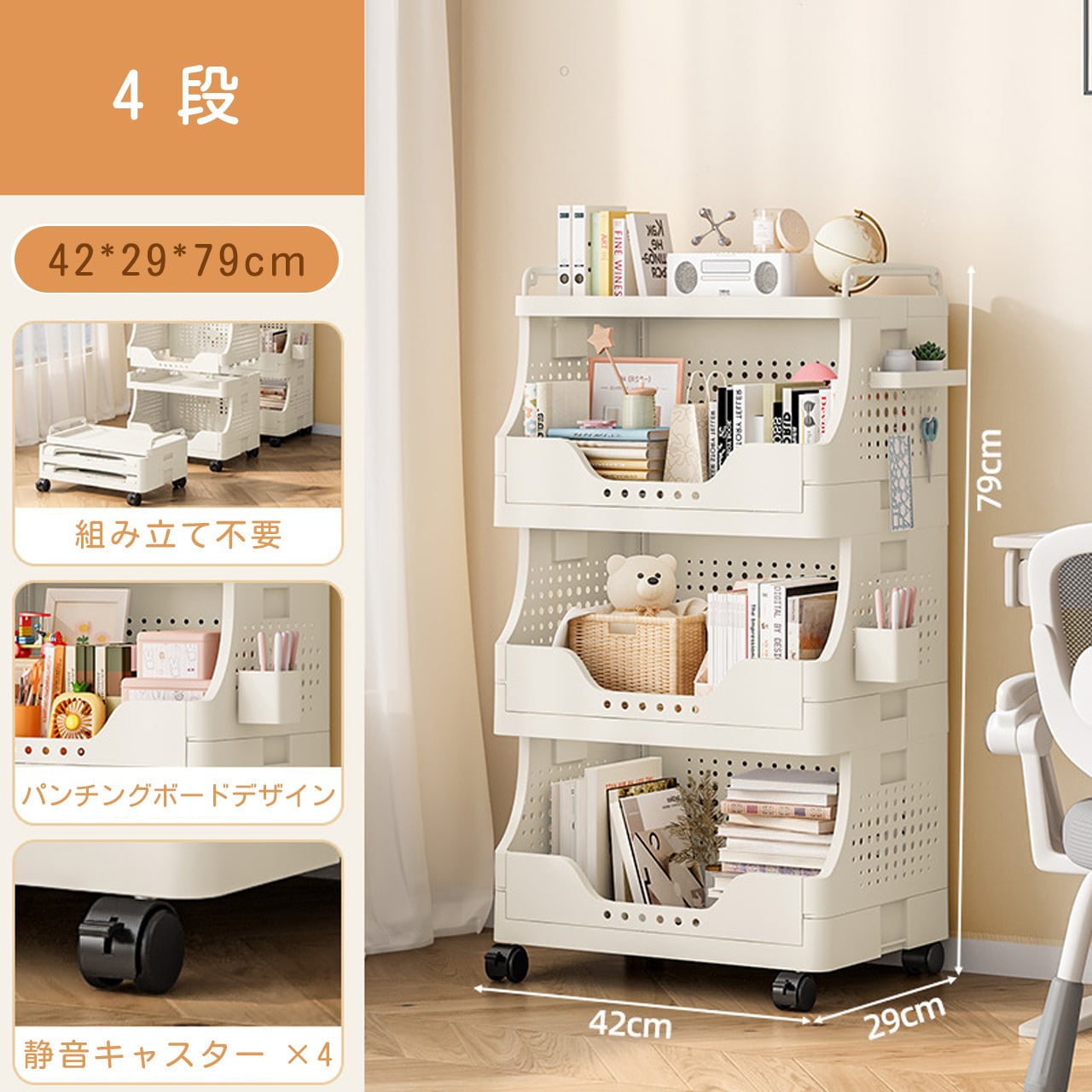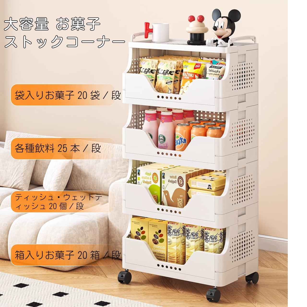 J-347 .多段収納ワゴン キャスター付き|家庭用 リビング お菓子・おもちゃ整理ラック