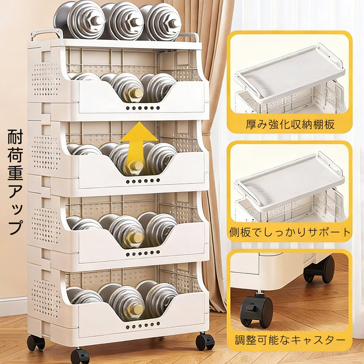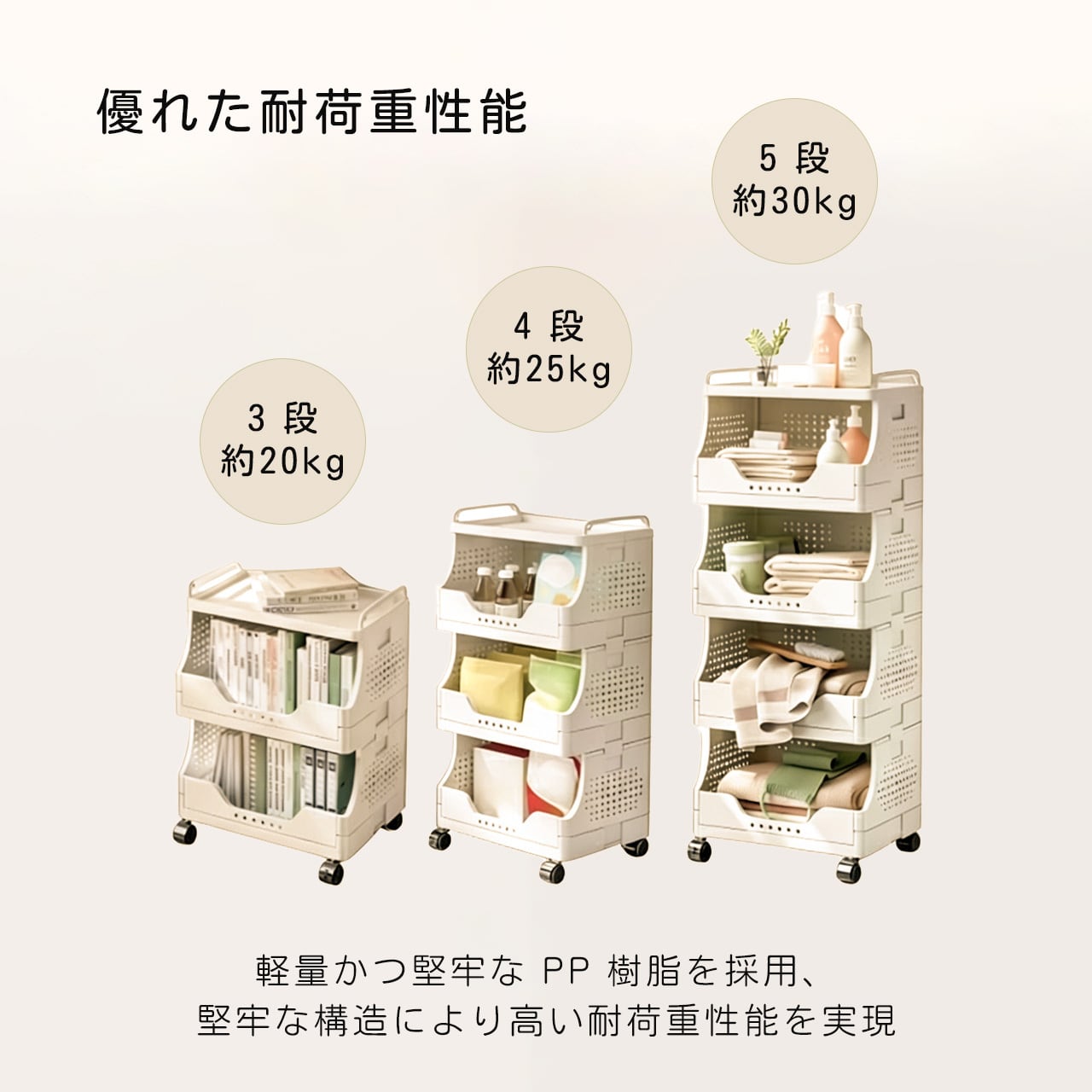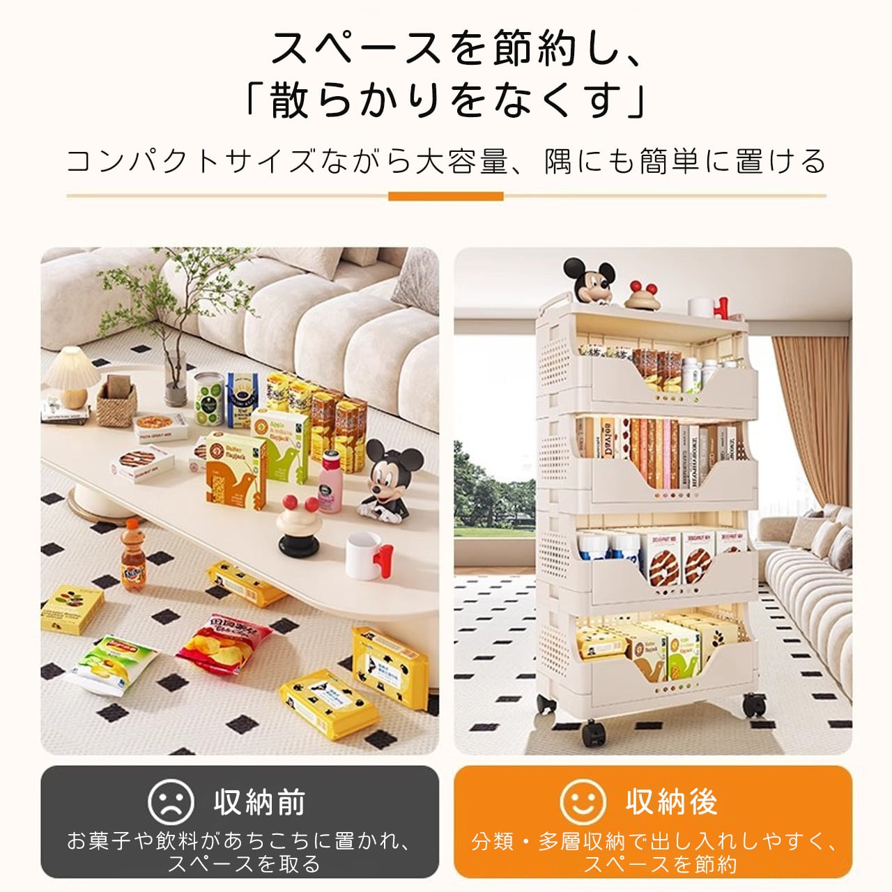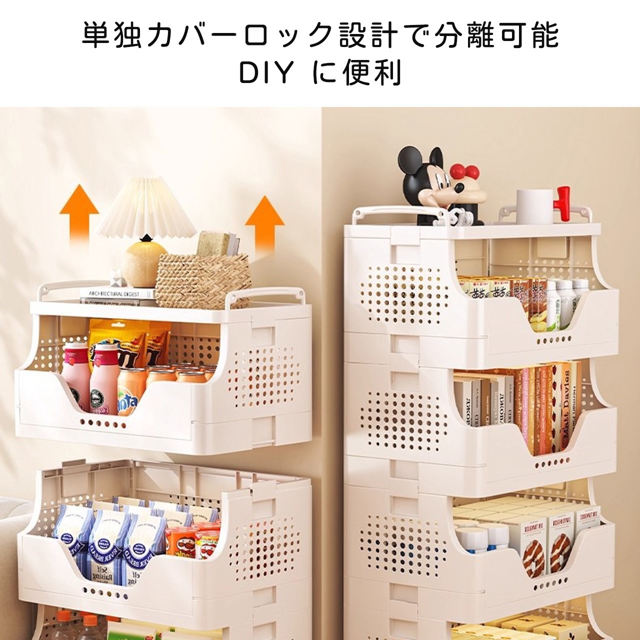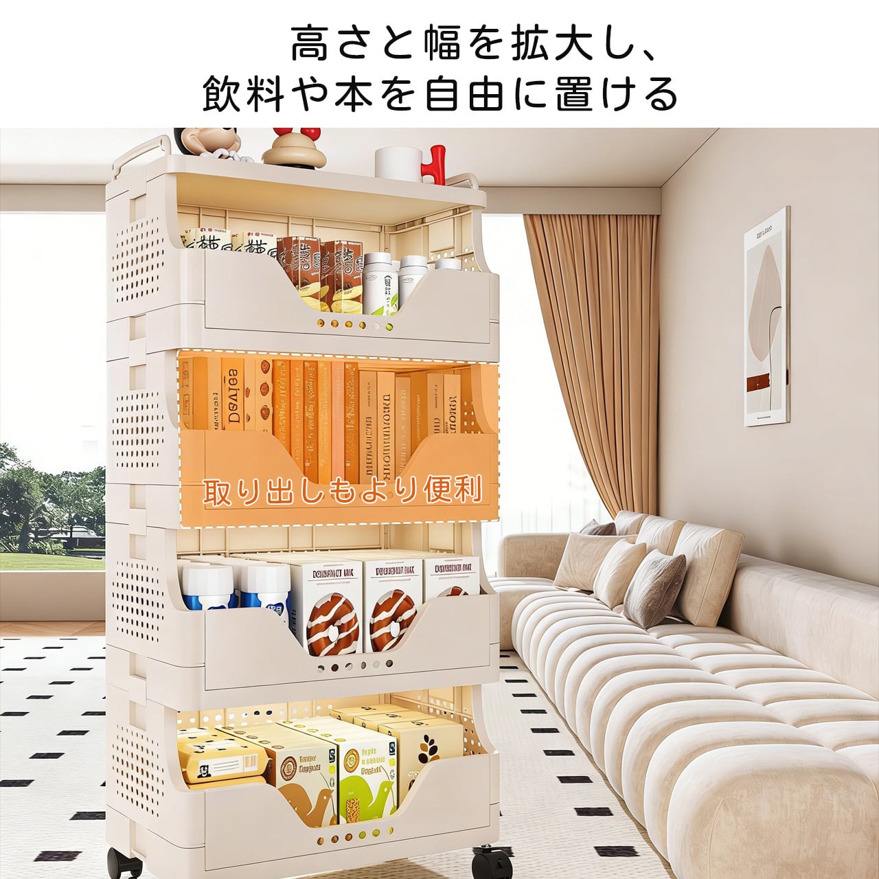 J-347 .多段収納ワゴン キャスター付き|家庭用 リビング お菓子・おもちゃ整理ラック