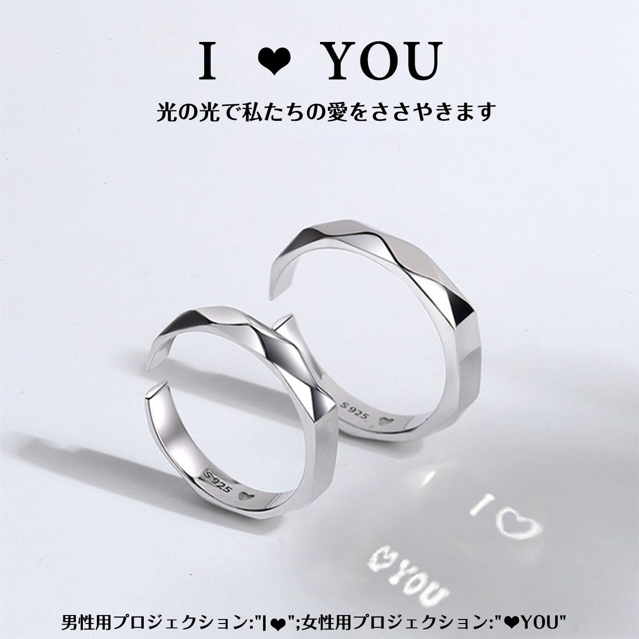 B3 .指輪カップルのペアリング925銀一対のバレンタインデー 防水性があり、色褪せません 彼女か彼氏に贈る贈り物 (男と女の2つの指輪)