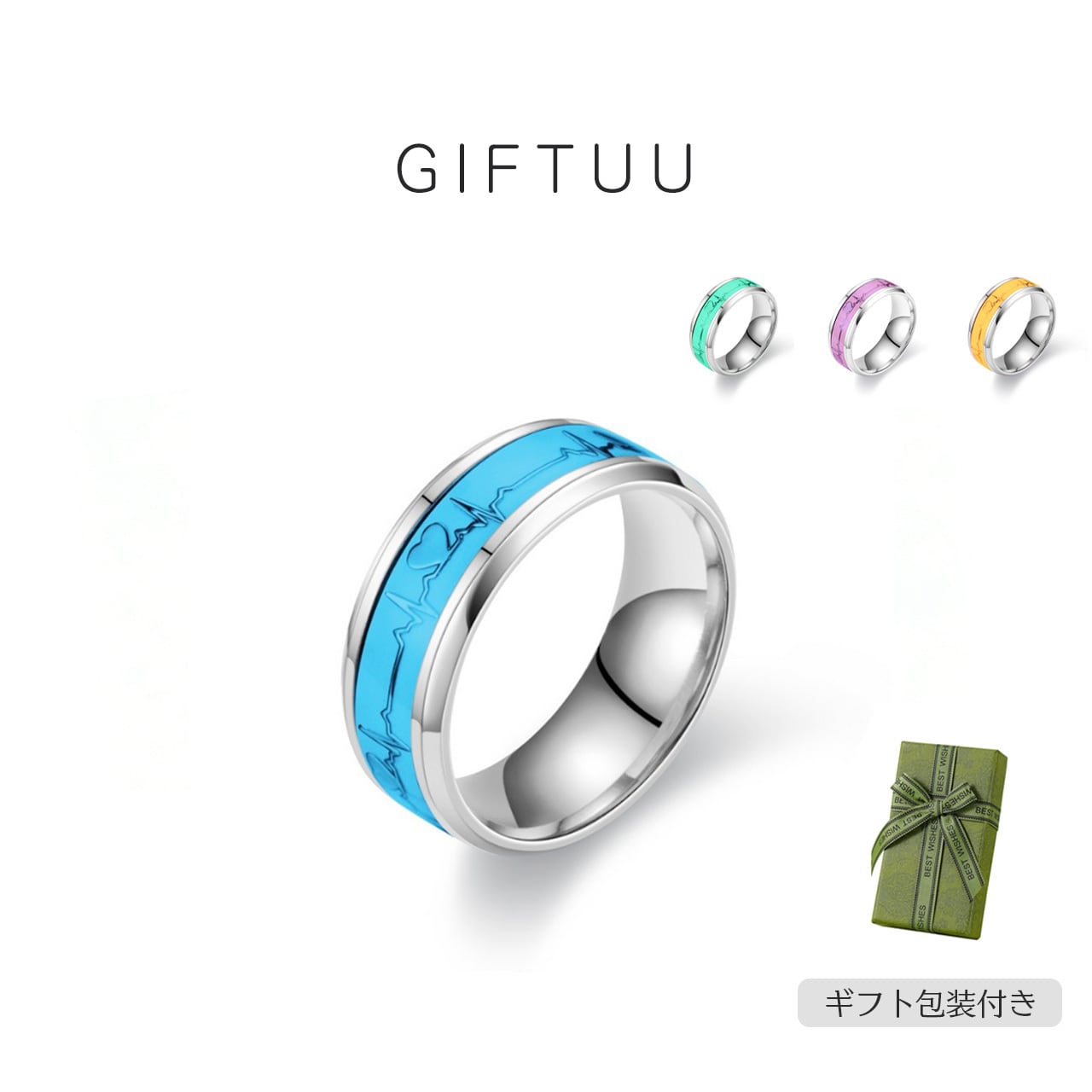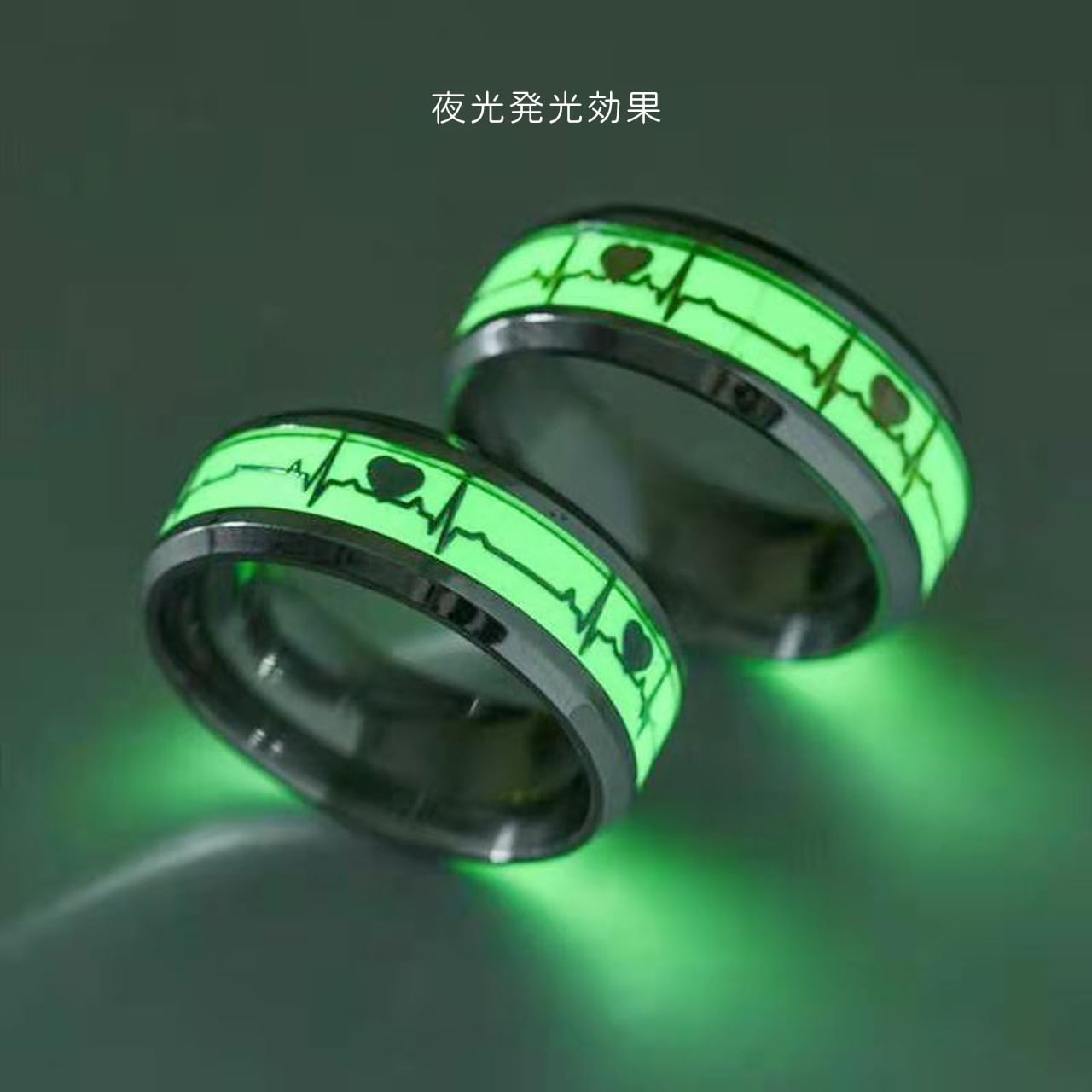B294 .夜光 ハート型 チタンスチール リング