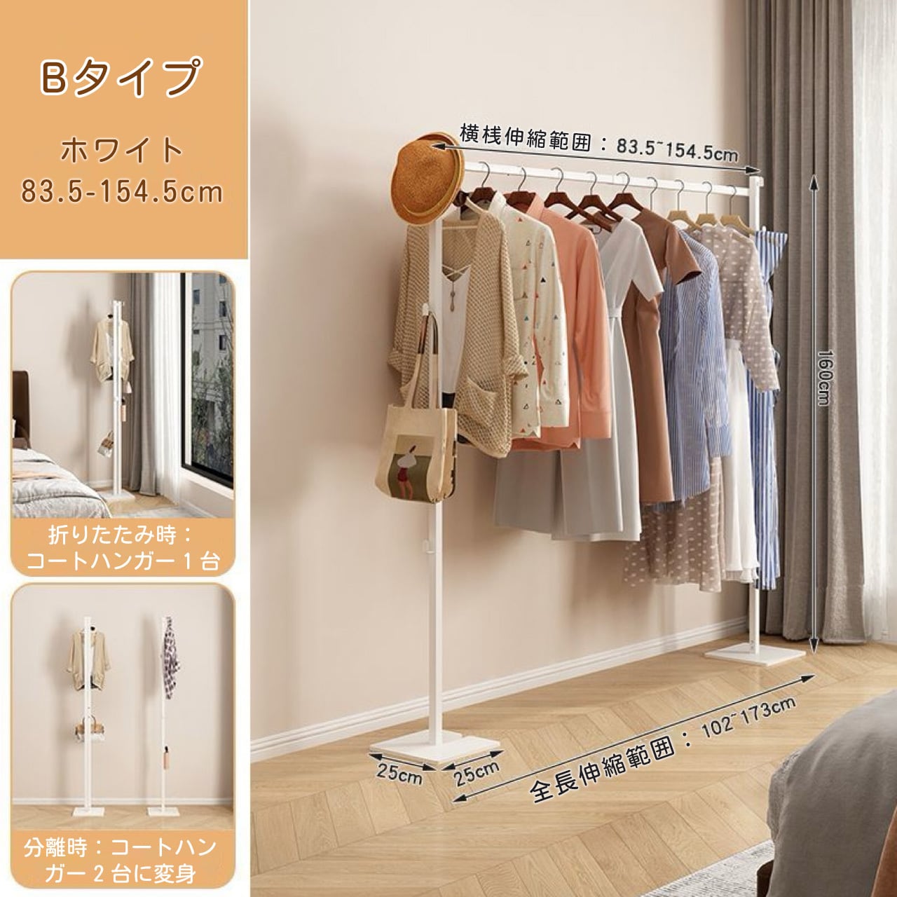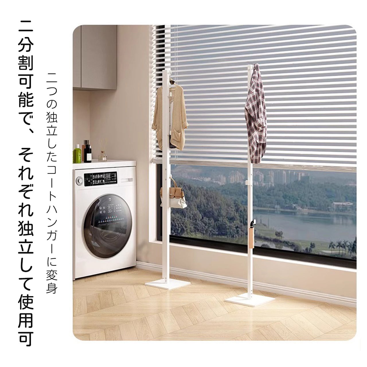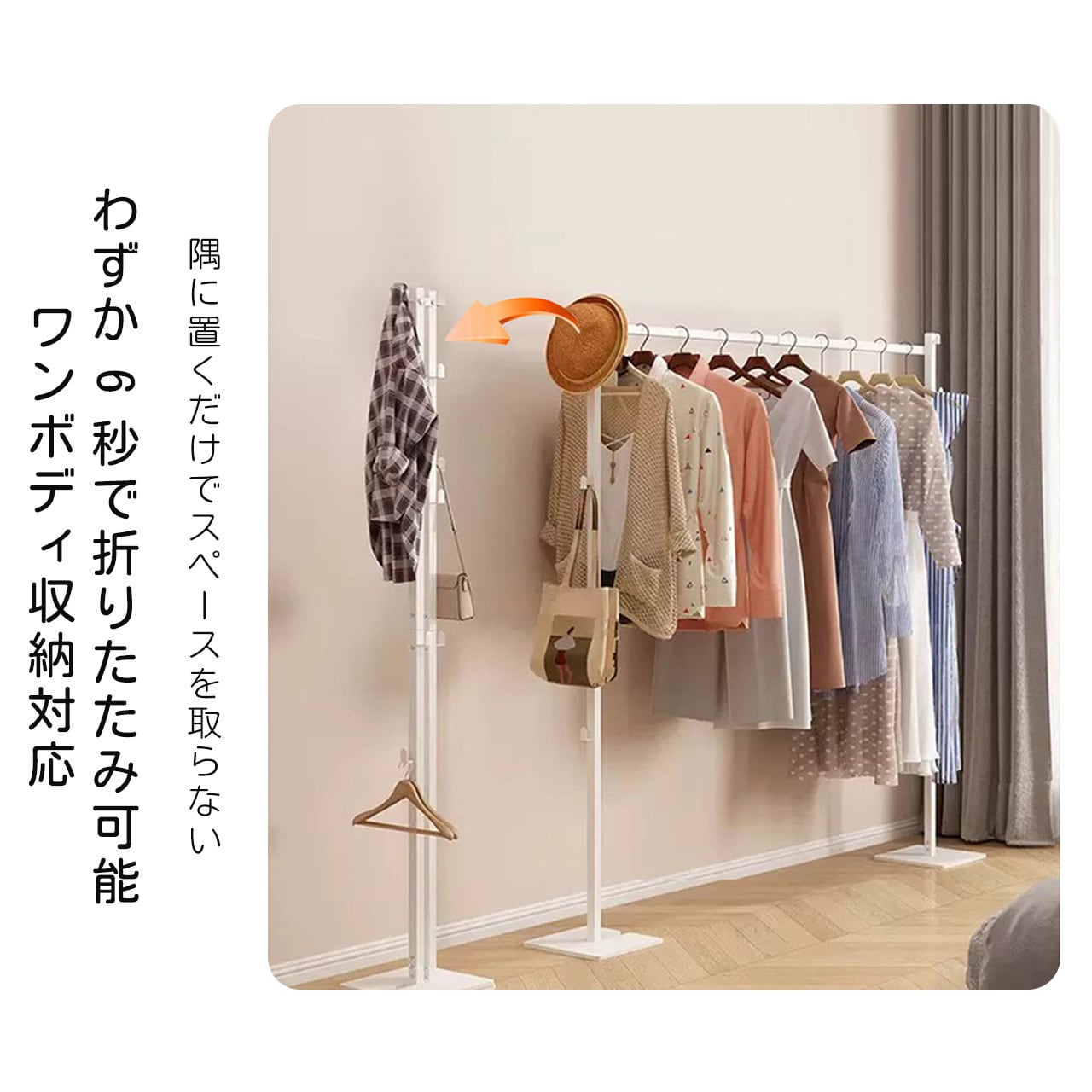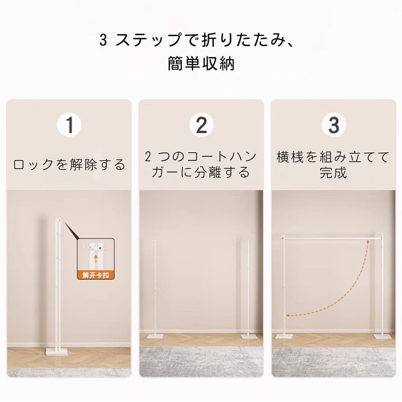 J-346 .家庭用多機能コンパクト物干しスタンド 伸縮式 ふとん干し対応 寝室・リビング兼用 収納簡単