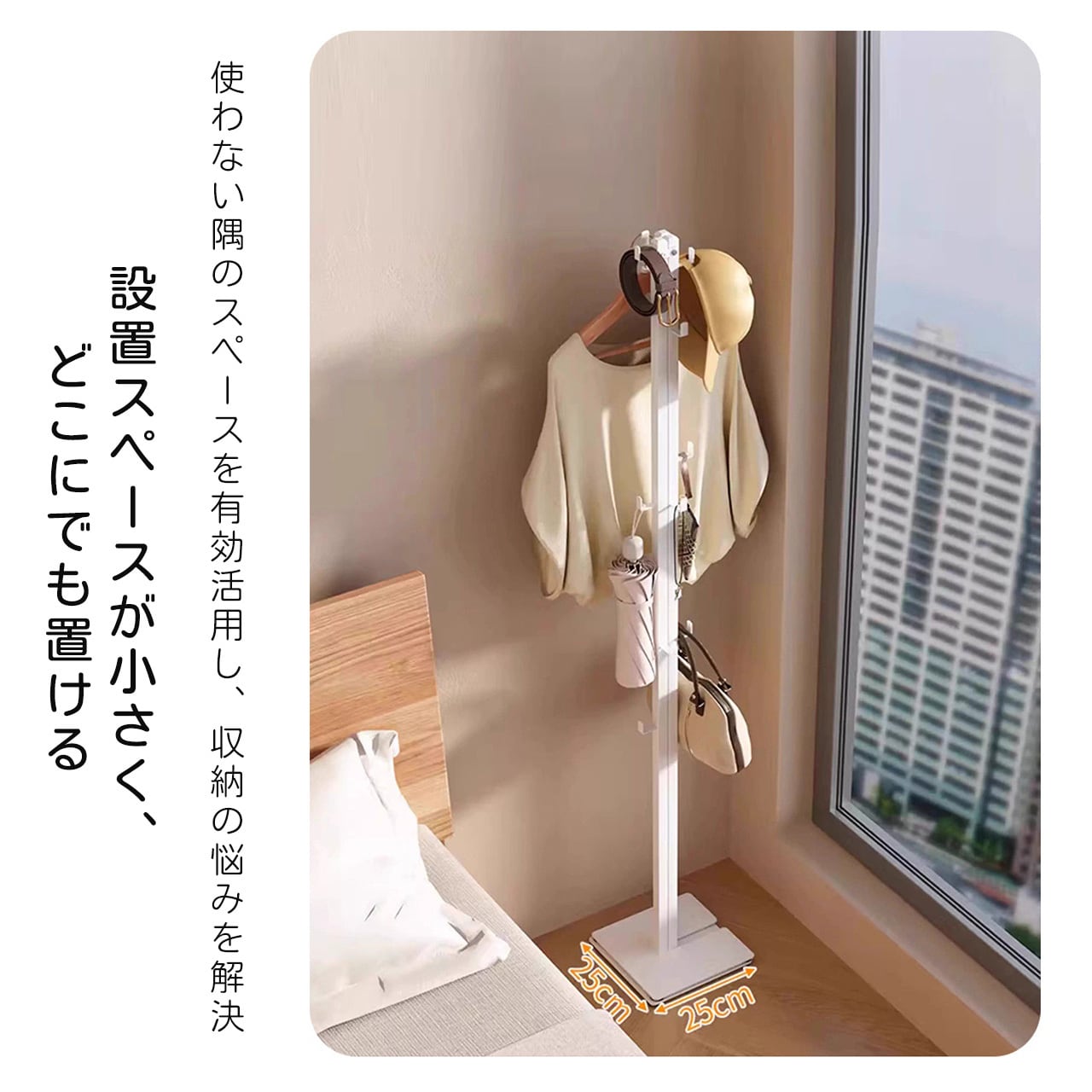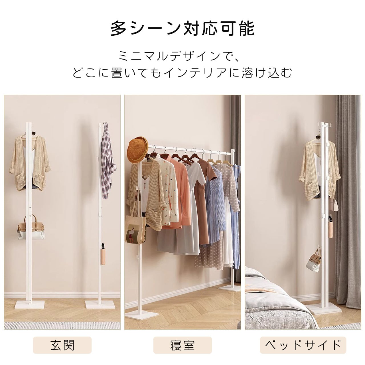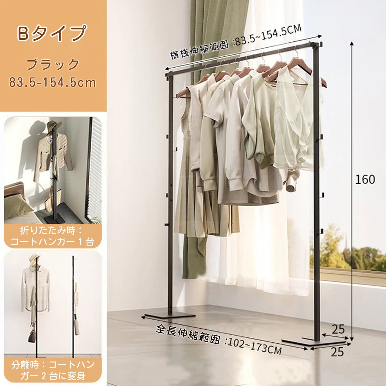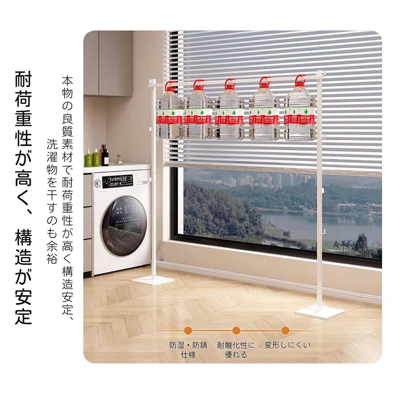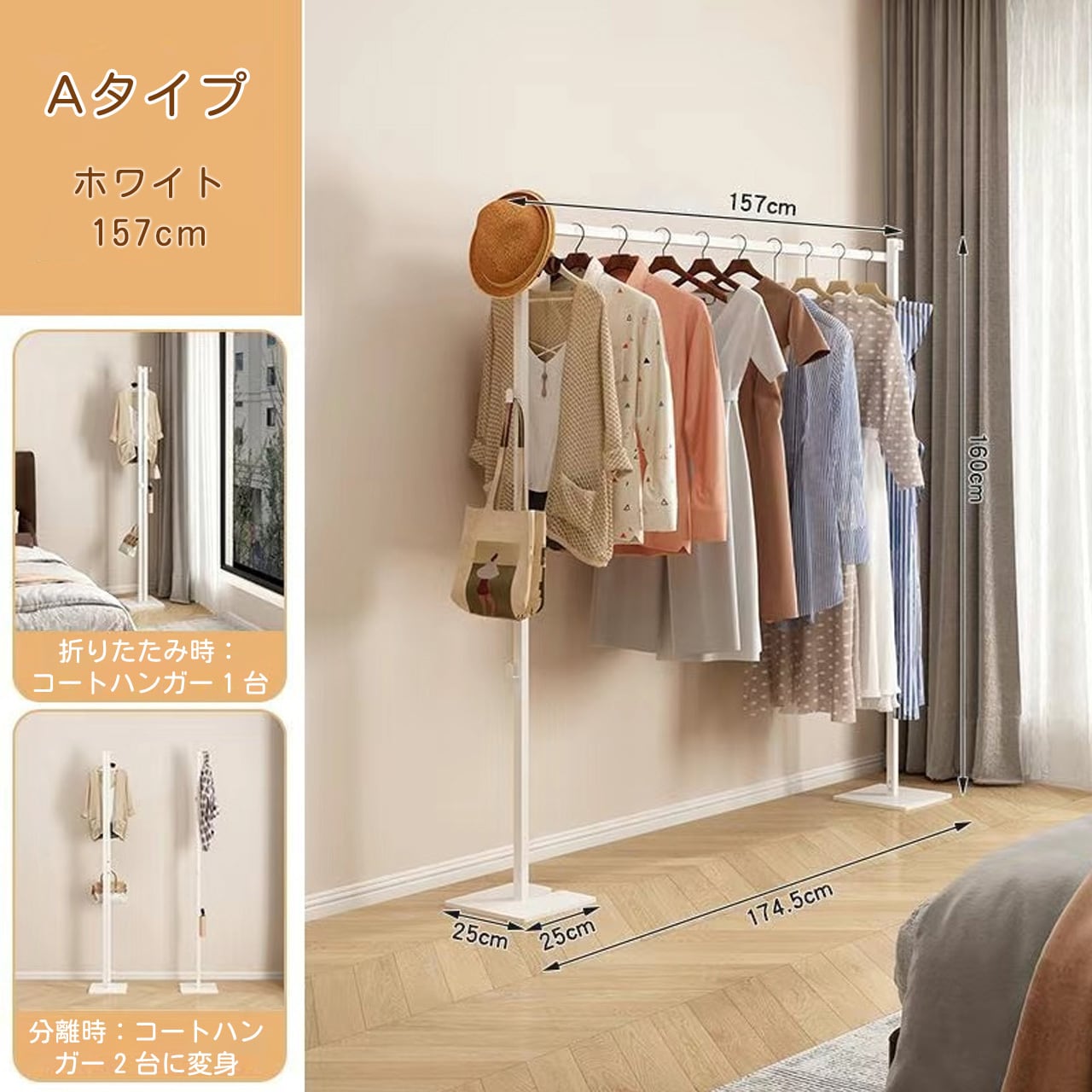 J-346 .家庭用多機能コンパクト物干しスタンド 伸縮式 ふとん干し対応 寝室・リビング兼用 収納簡単