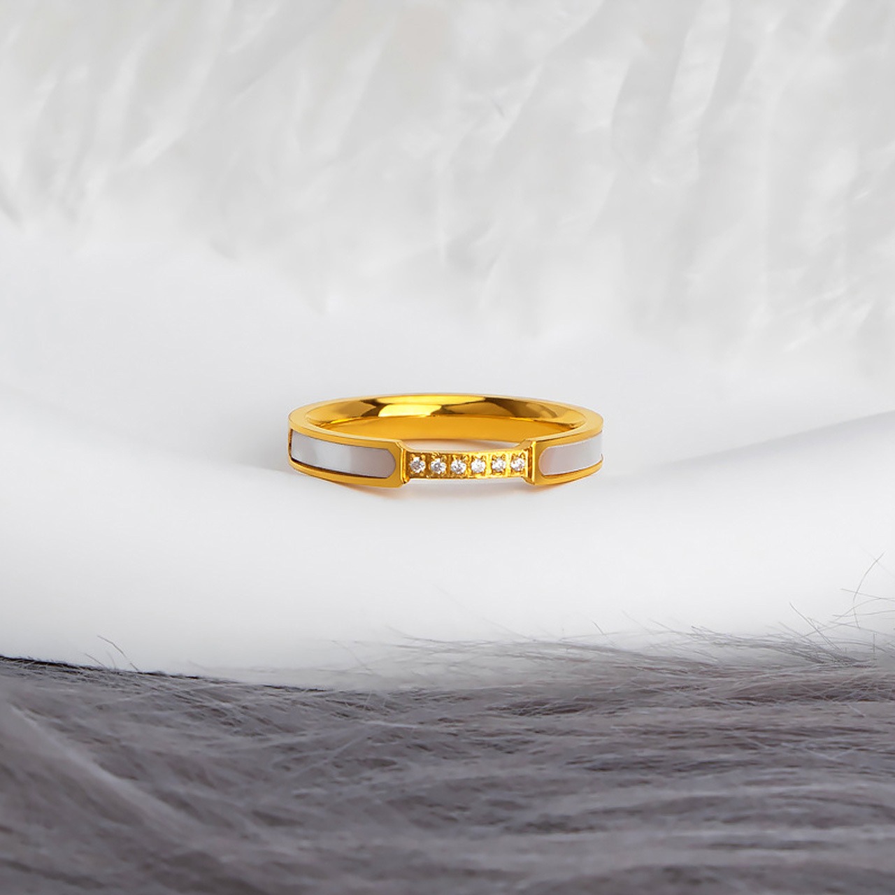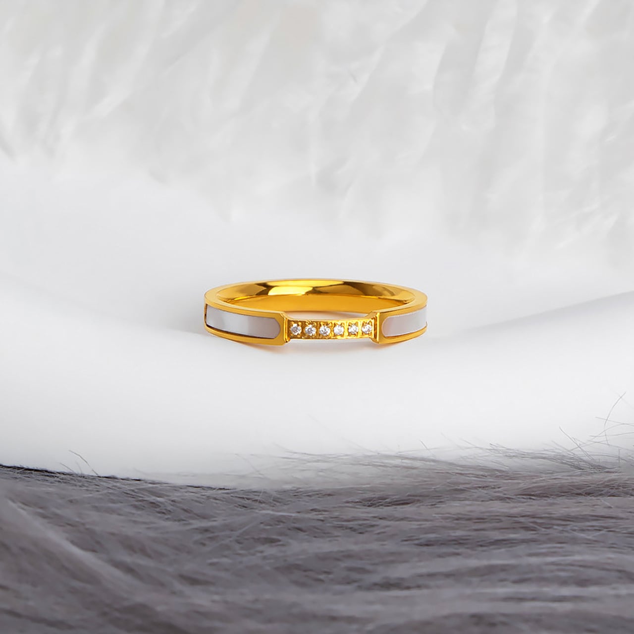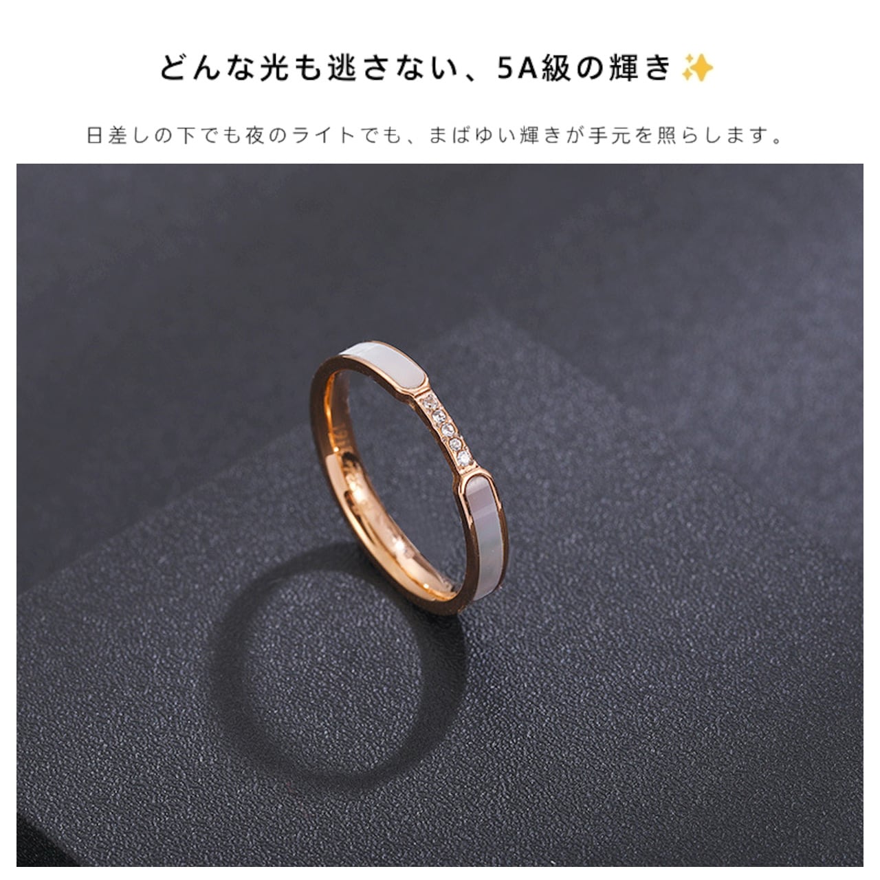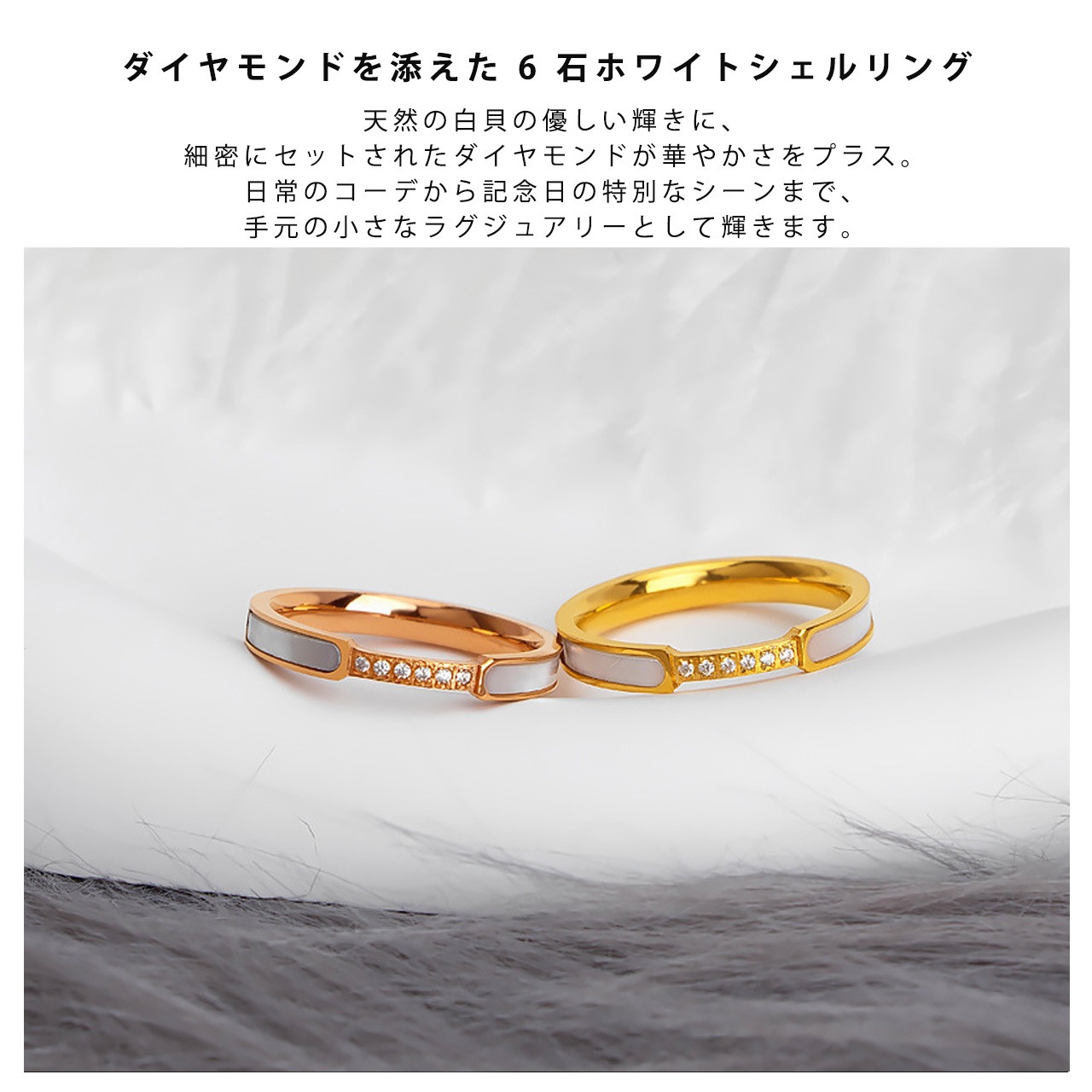 B304 .ダイヤモンド付き 6 石ホワイトシェルリング|煌めきが手元を彩る