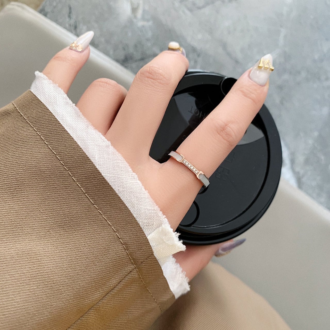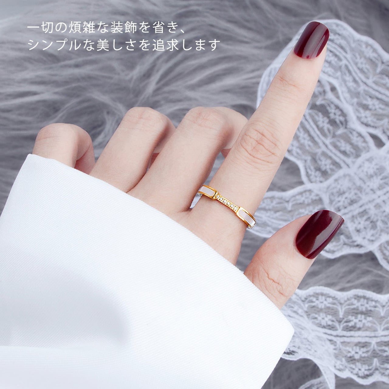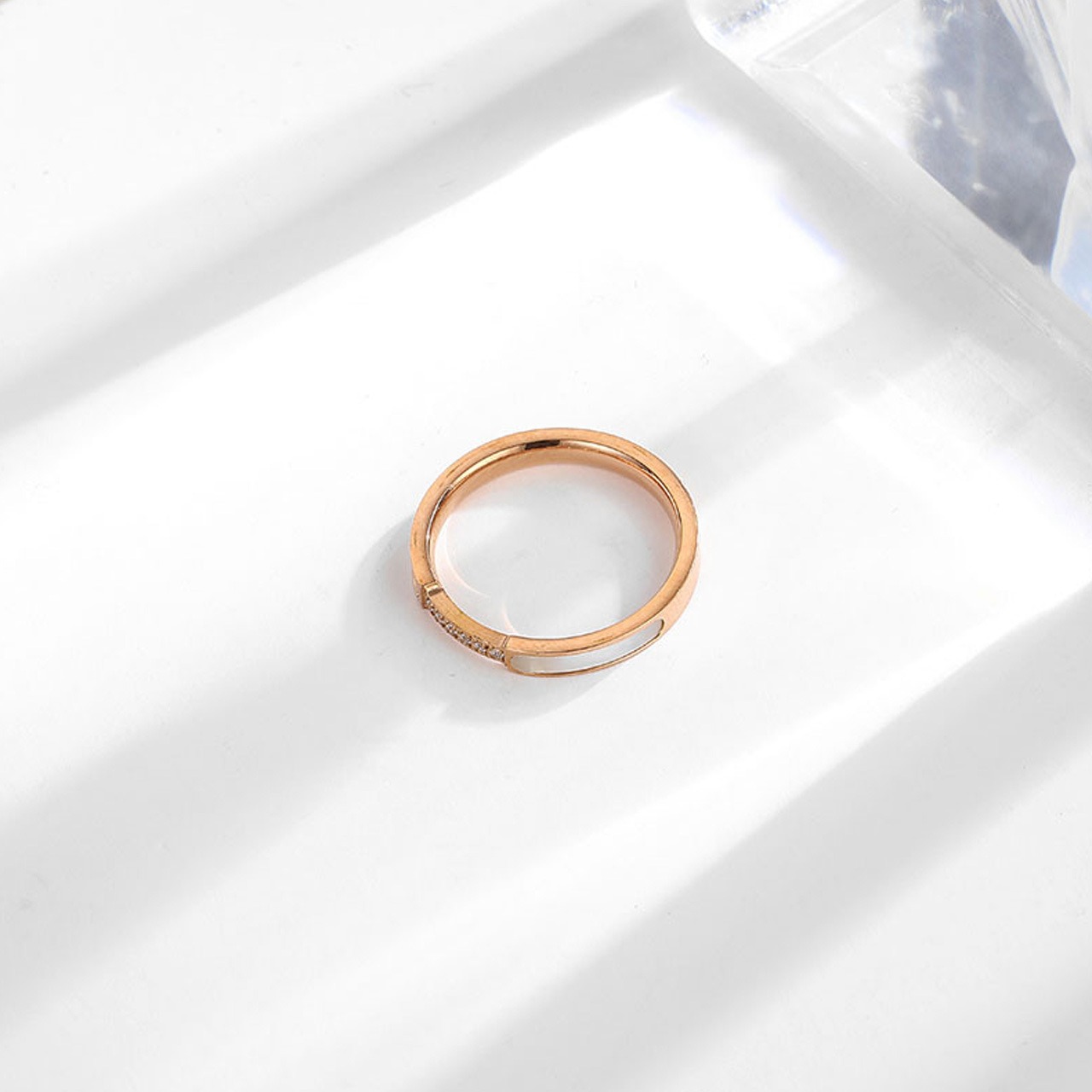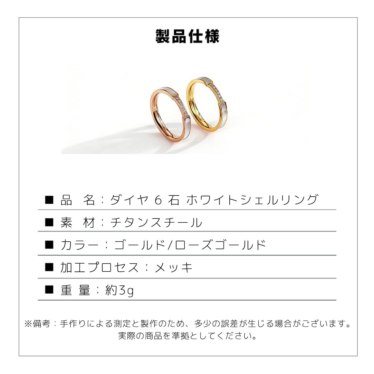 B304 .ダイヤモンド付き 6 石ホワイトシェルリング|煌めきが手元を彩る