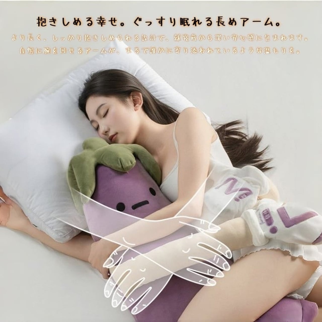 長めのアーム設計が、自然に腕を回せる抱き心地を実現。横向き、うつ伏せ、仰向け、どんな姿勢でも体を優しくサポートし、孤独感を和らげます。