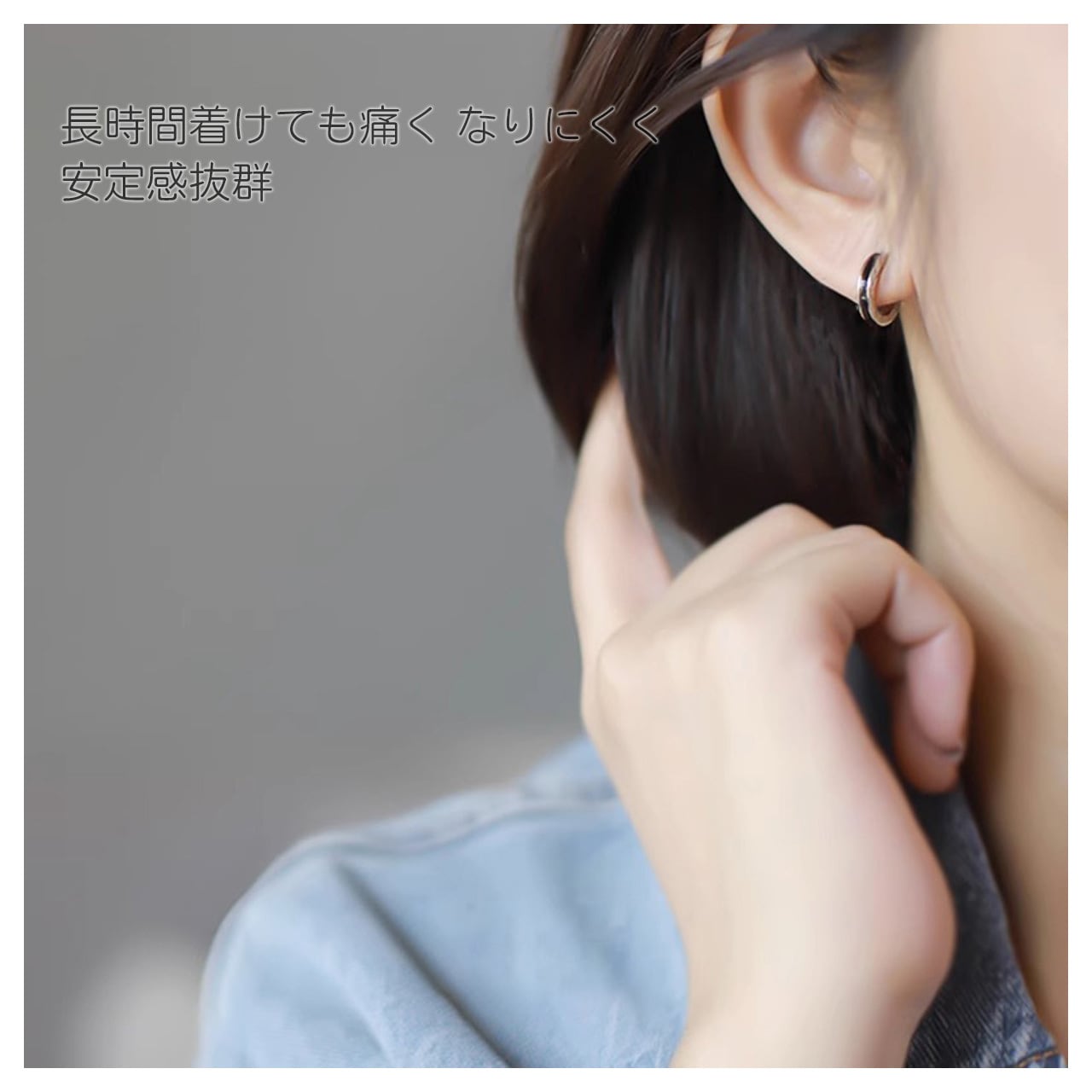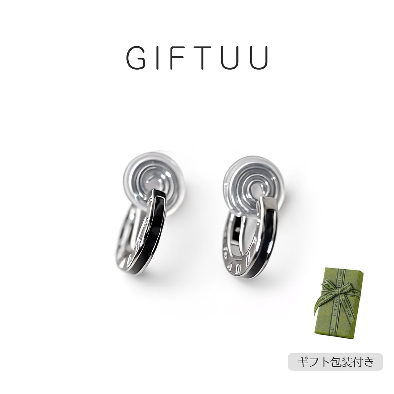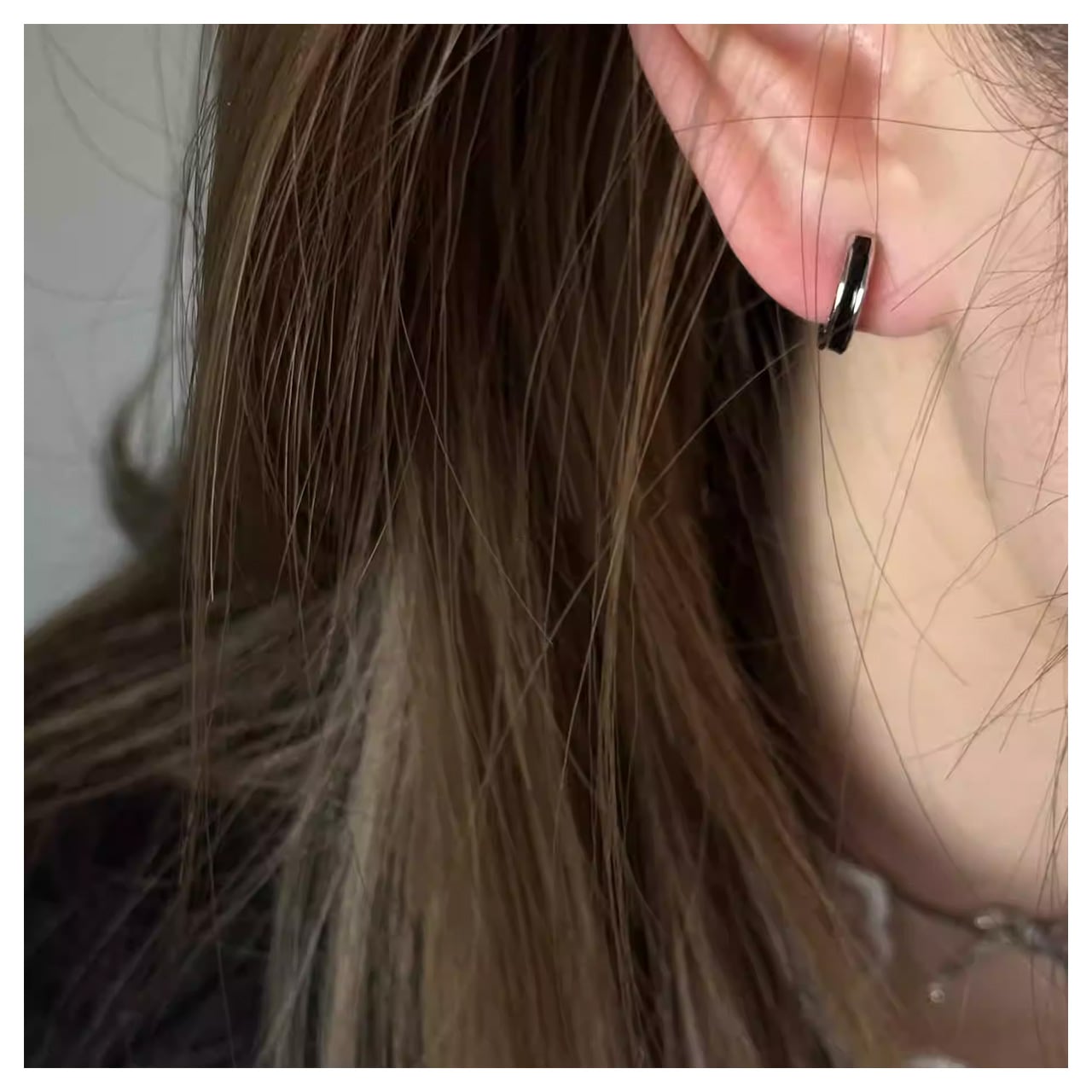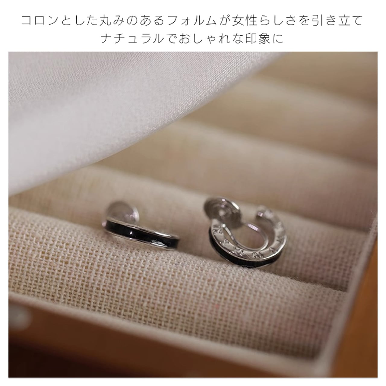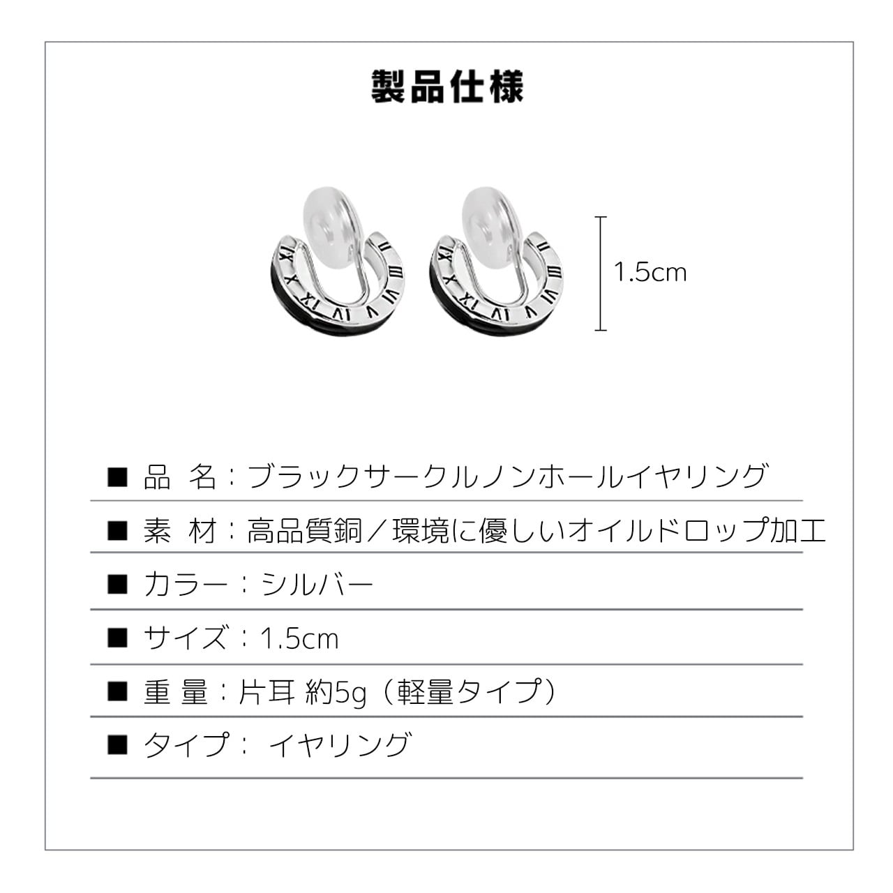 B314 .ブラックオイルドロップ サークルノンホールイヤリング