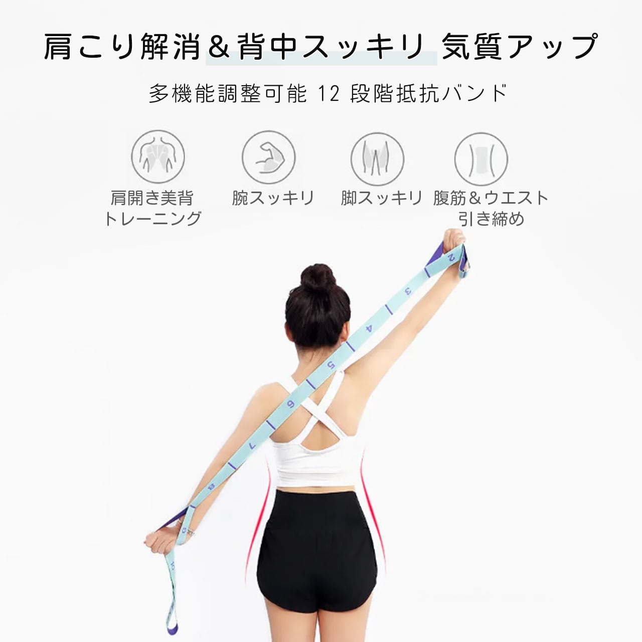 237 .11段階調整 ストレッチバンド バレエ筋トレ ヨガ ピラティス リハビリ 男女兼用