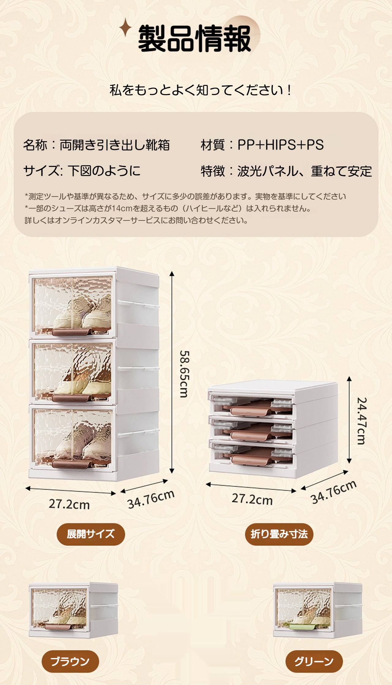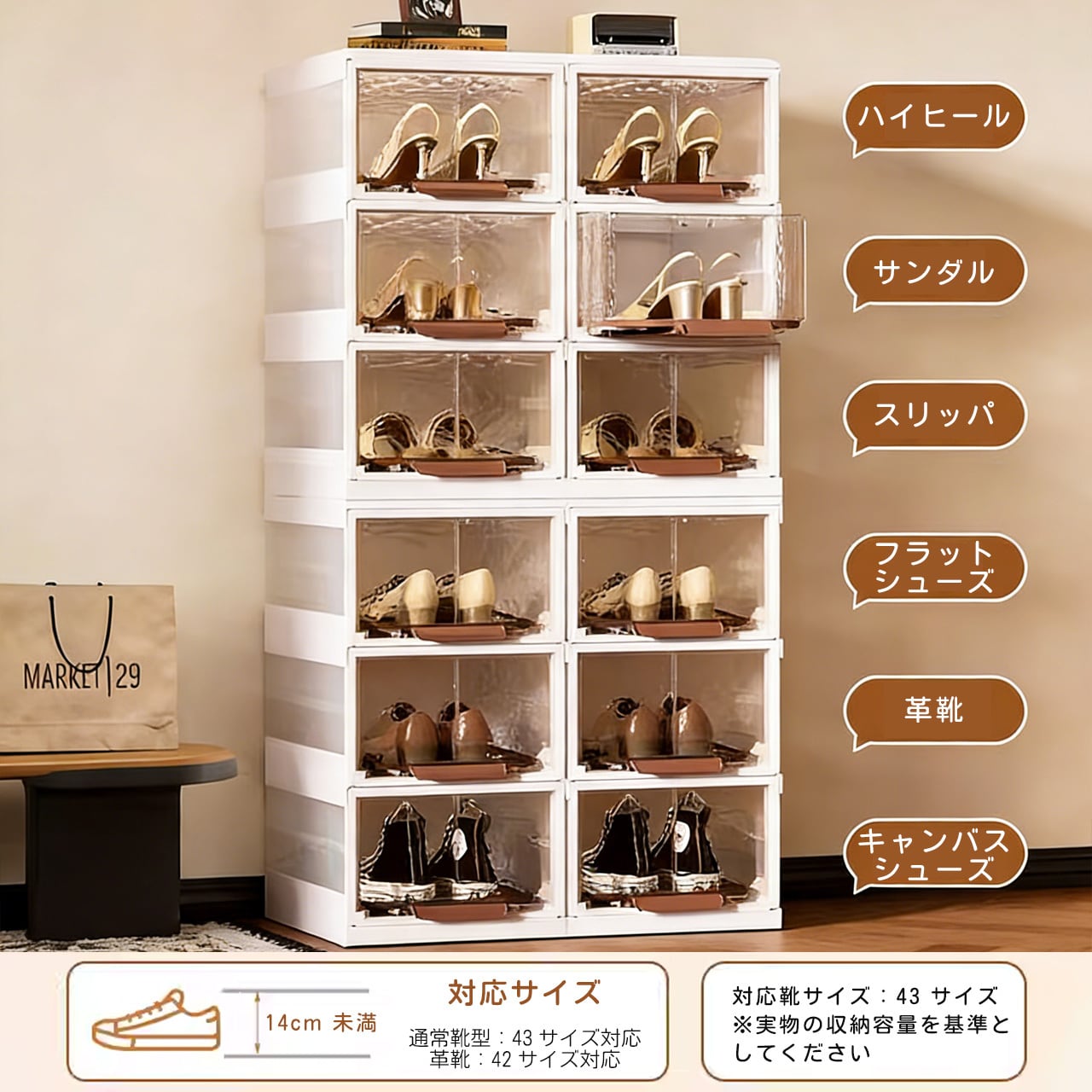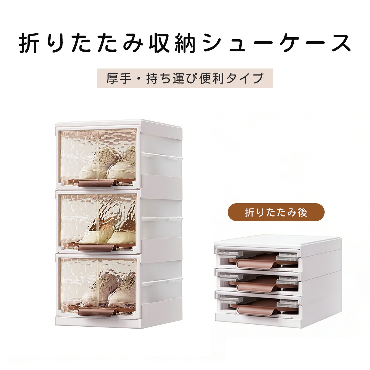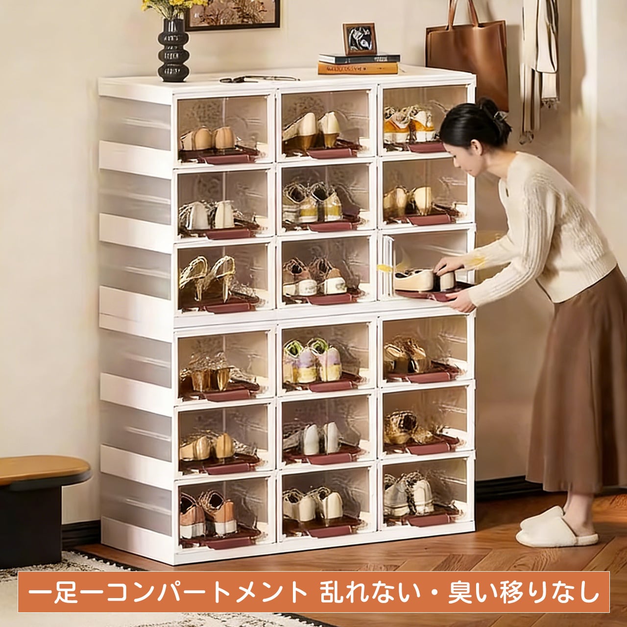 本体は厚手PP素材を採用,耐衝撃性に優れ、靴の重量に耐えられるだけでなく、子供がぶつかっても破損しにくい設計です。底部は防滑加工を施し、重ねて使用しても安定性が高く、倒れにくく安全です。