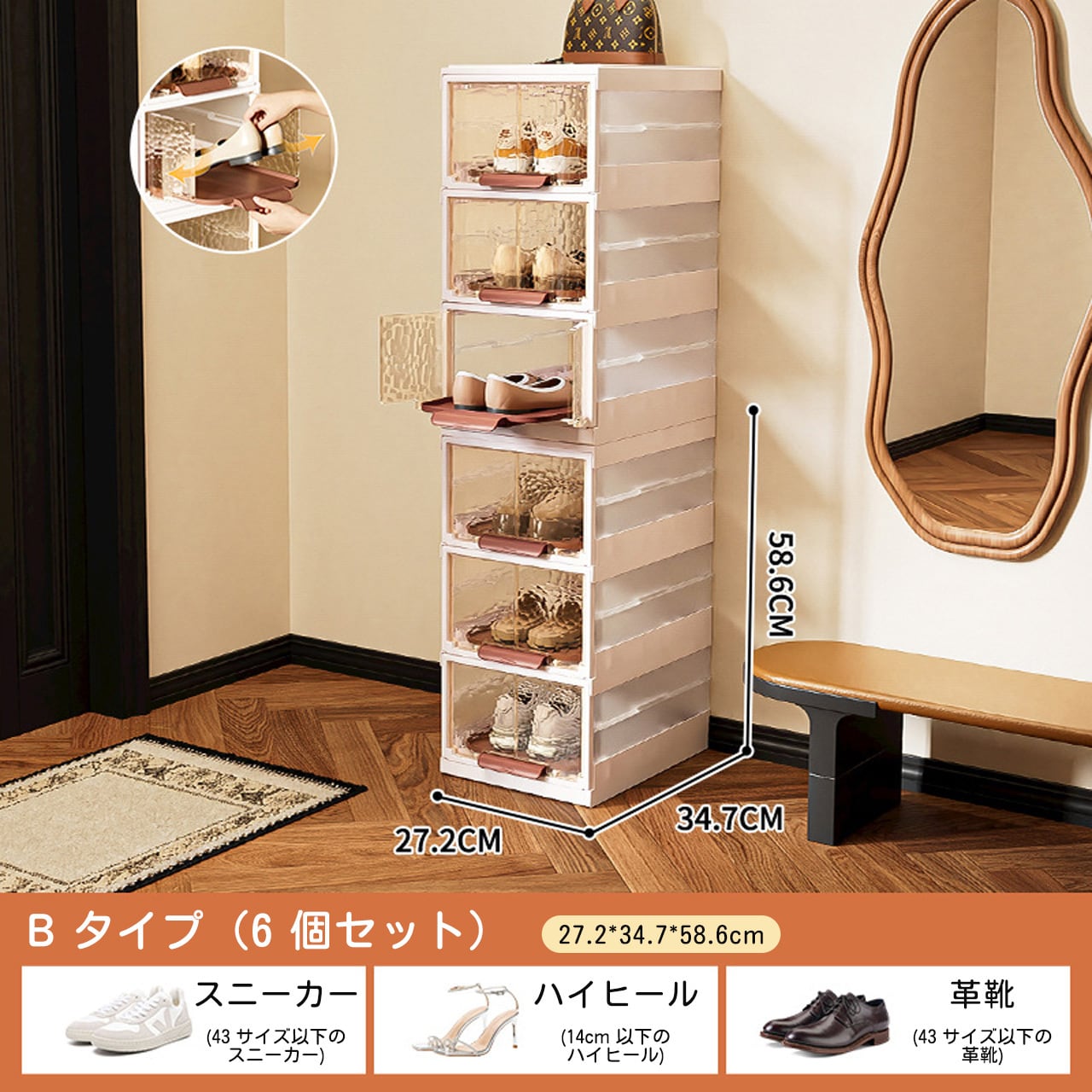 防塵構造で靴を汚れから守り、抽拉式設計で靴の出し入れがスムーズに行える、家庭用に最適な収納神器です。