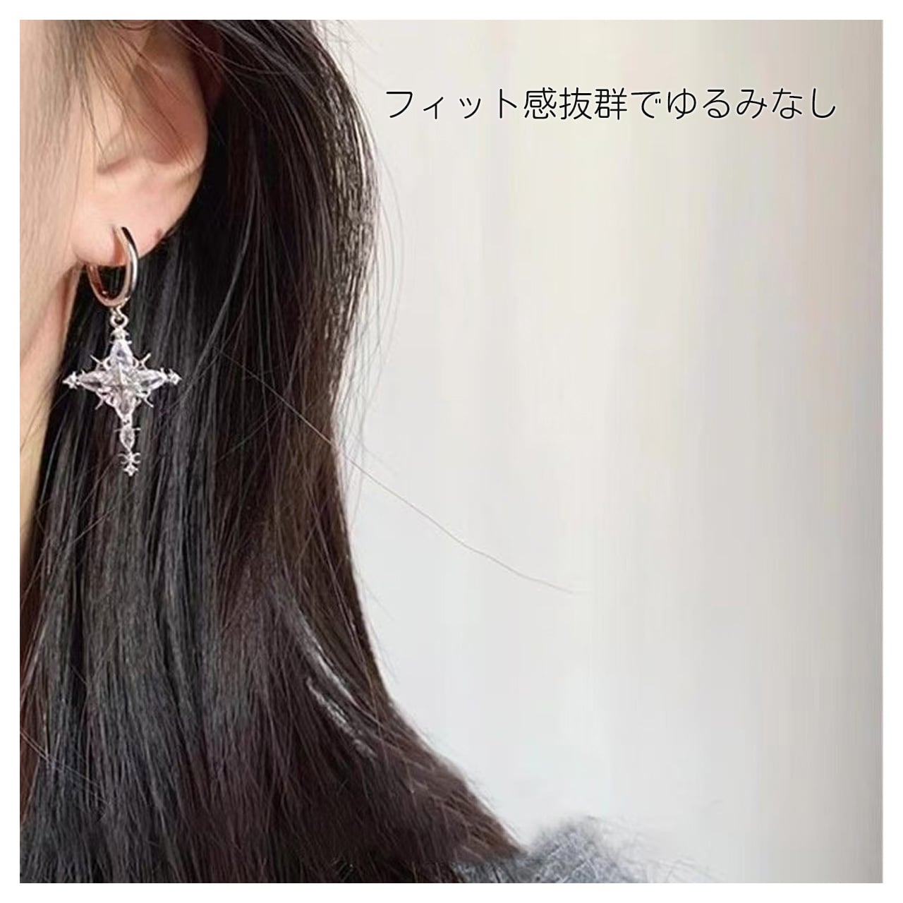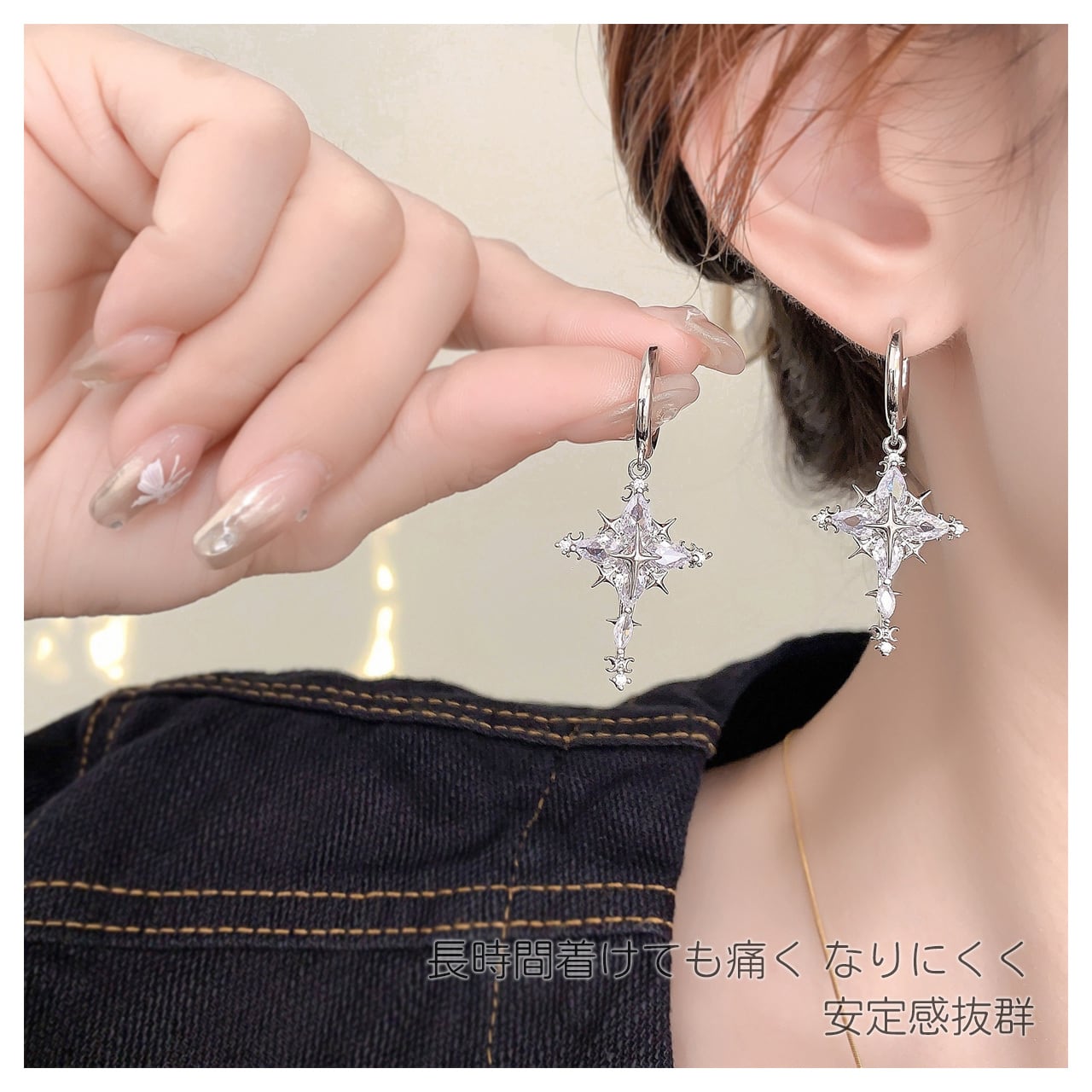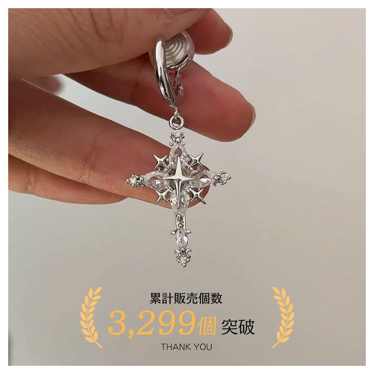 スノーフレーククロス × 四芒星の人気モチーフに、アイストランスペアレントの清冷感デザインを融合,高輝度ジルコニアを精密嵌め込み、光に当たるたびきらきらと輝く。