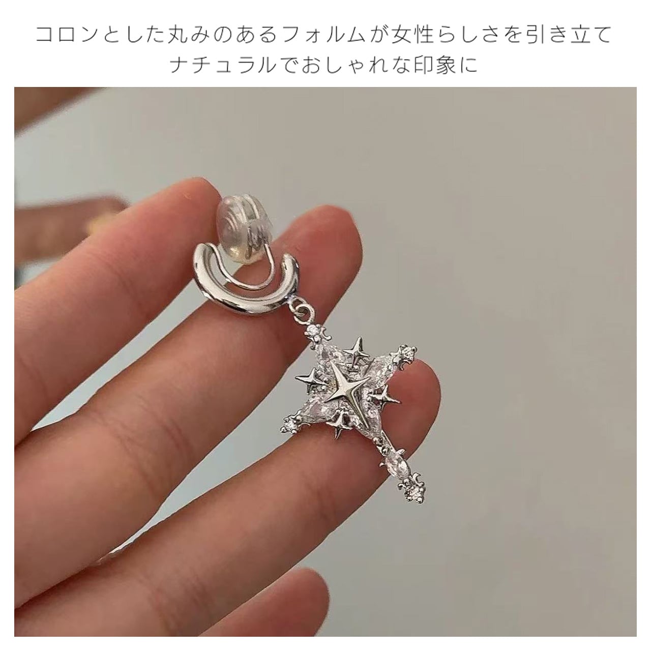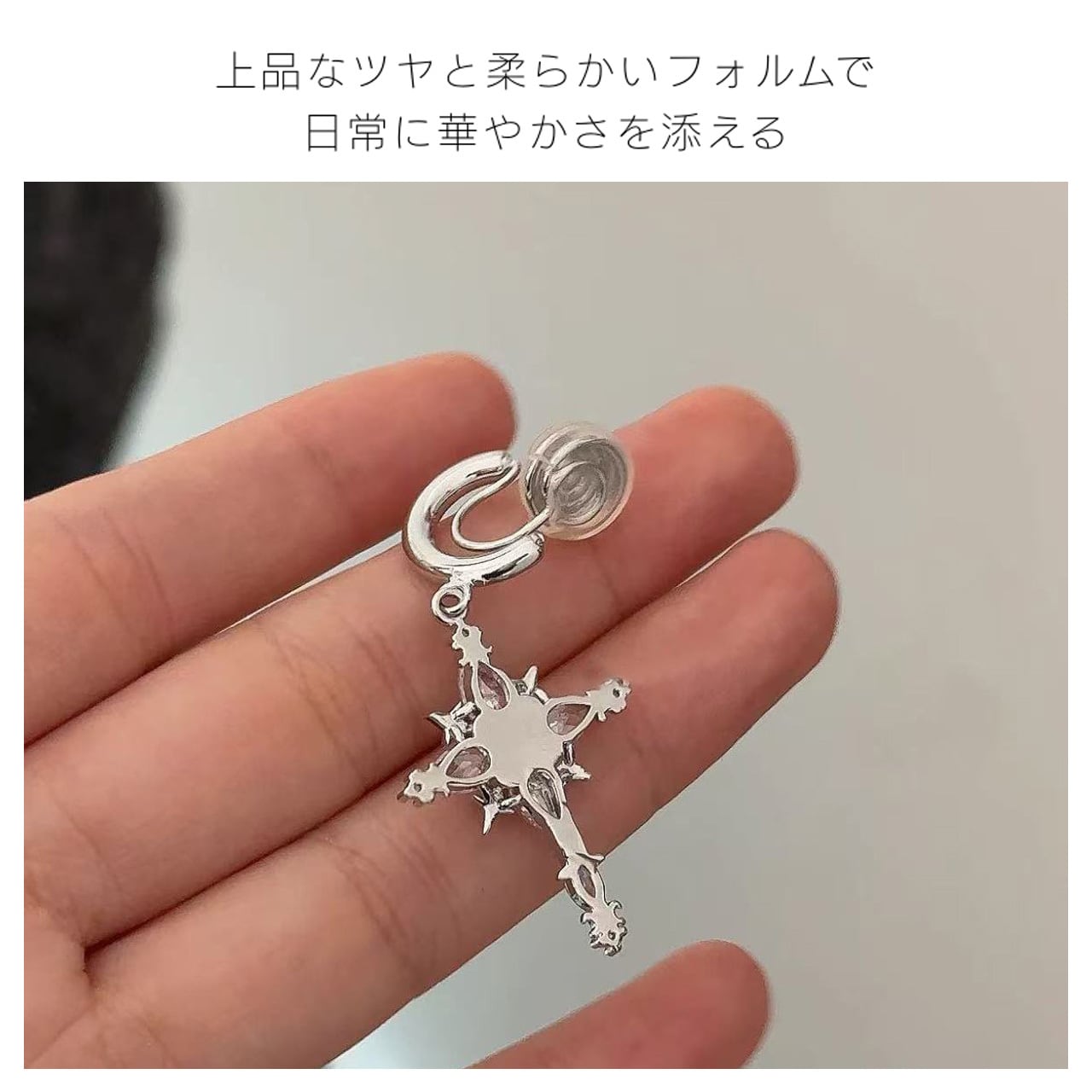 モスキートコイル + スプリング式の無穿孔設計で、穴を開けなくても自由に着けられる。ピアスホールが痛い方や未穿孔の方にも最適、学生や通勤族に人気のアクセです。