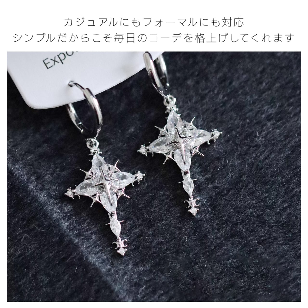 高品質な輝度ジルコニアを雪花・クロス・四芒星の輪郭に沿って精密嵌め込み、人工ダイヤに迫る輝きを発する。光の角度によって異なる輝きを見せ、小さなアクセでも存在感十足。