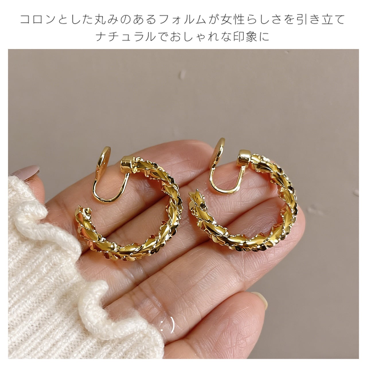 どんなスタイルにも自然になじむ、万能イヤリングです。