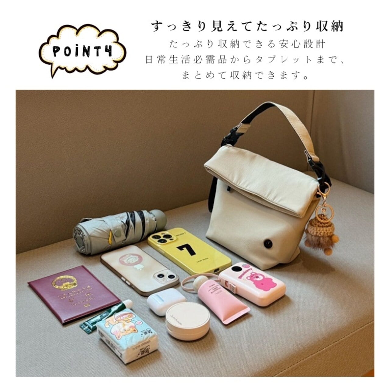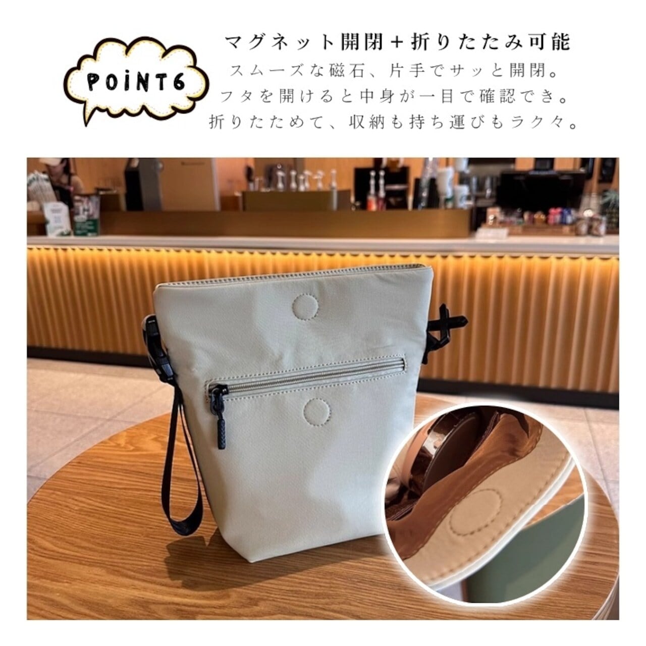 ■ 収納例:iPhone15 / 鍵 / 財布 / 折りたたみ傘 / 化粧品小物 / タブレット(8インチまで)