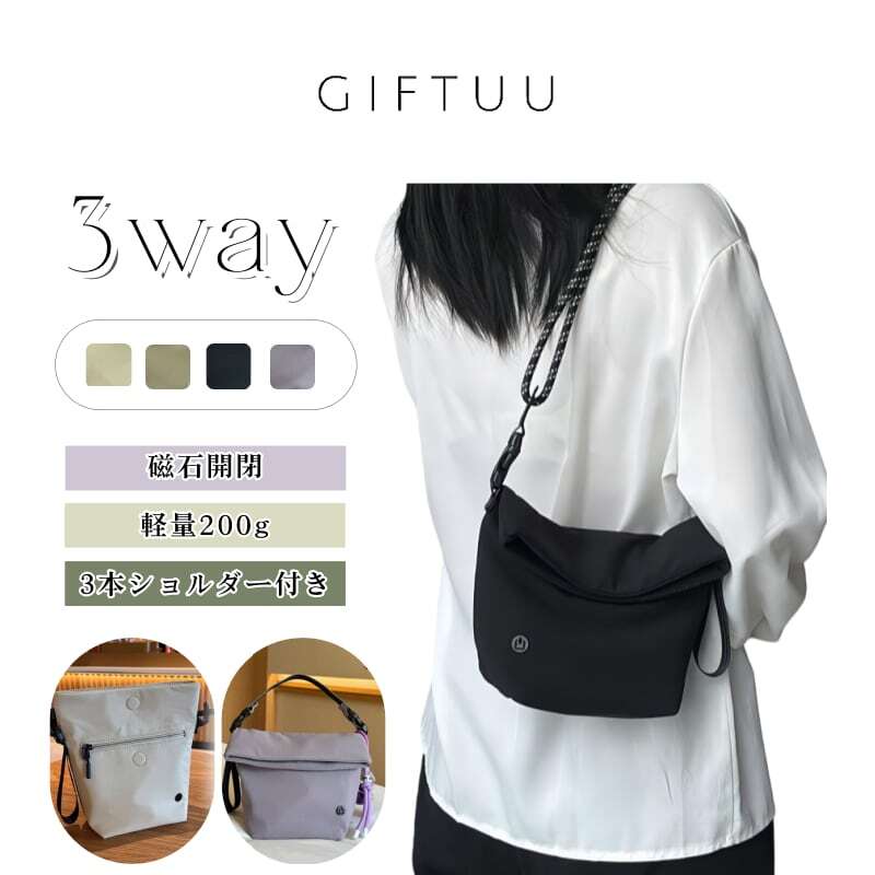 B371 .ショルダーバッグ 軽量 200g ナイロン ミニバッグ 3WAYストラップ 磁石開閉 4ポケット収納 日常使いに最適な