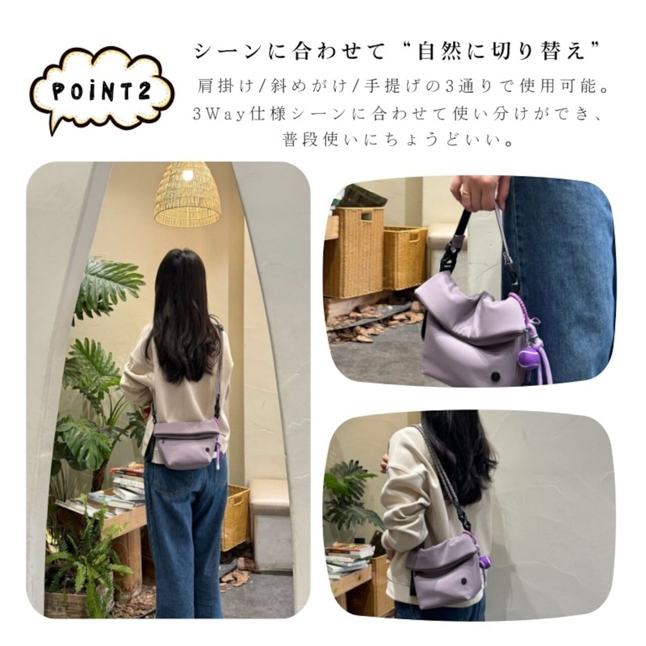 さらに、手提げ/ショルダー/クロスボディの3本ストラップ付きで、シーンに合わせて自在にスタイルチェンジ可能。