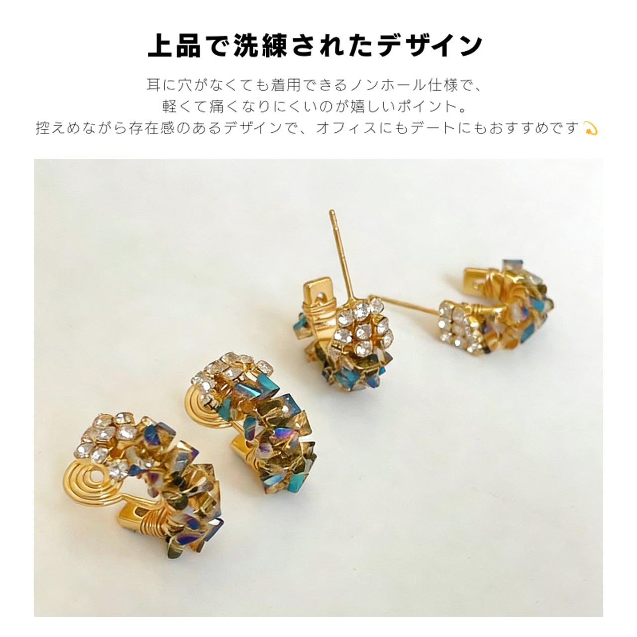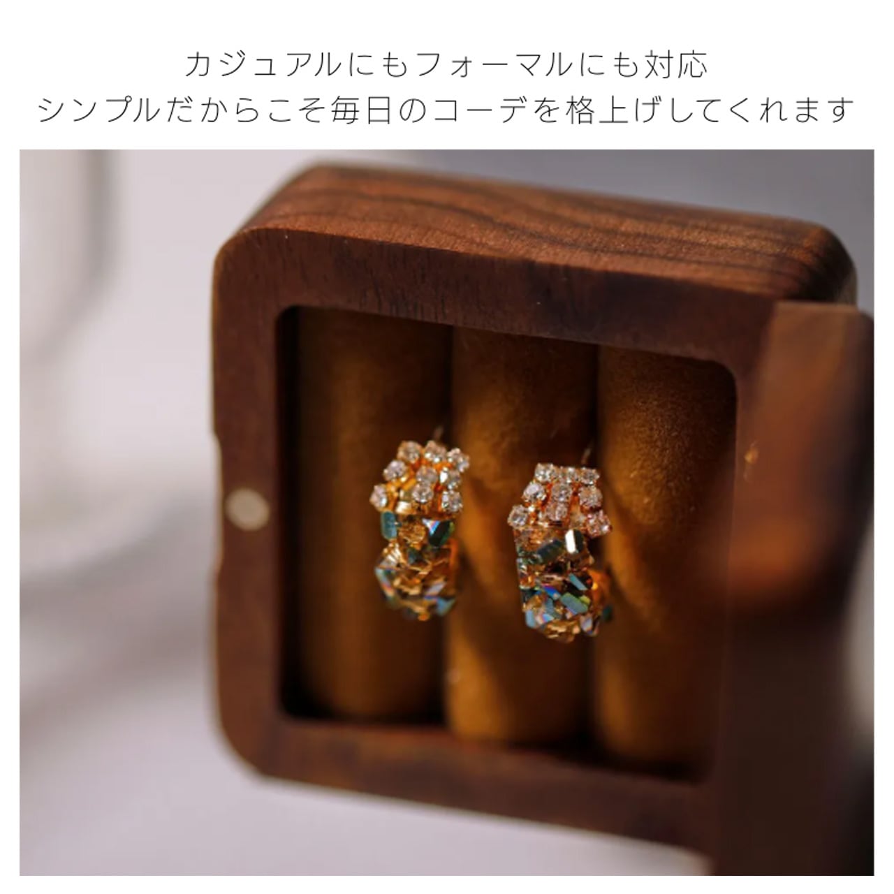 ヴィンテージ風のカットが施された多色ストーンを使用し、光を受けるたびに複雑な輝きを放ちます。高級感あふれるデザインが、どんなコーデにも格上げ効果を与えます。