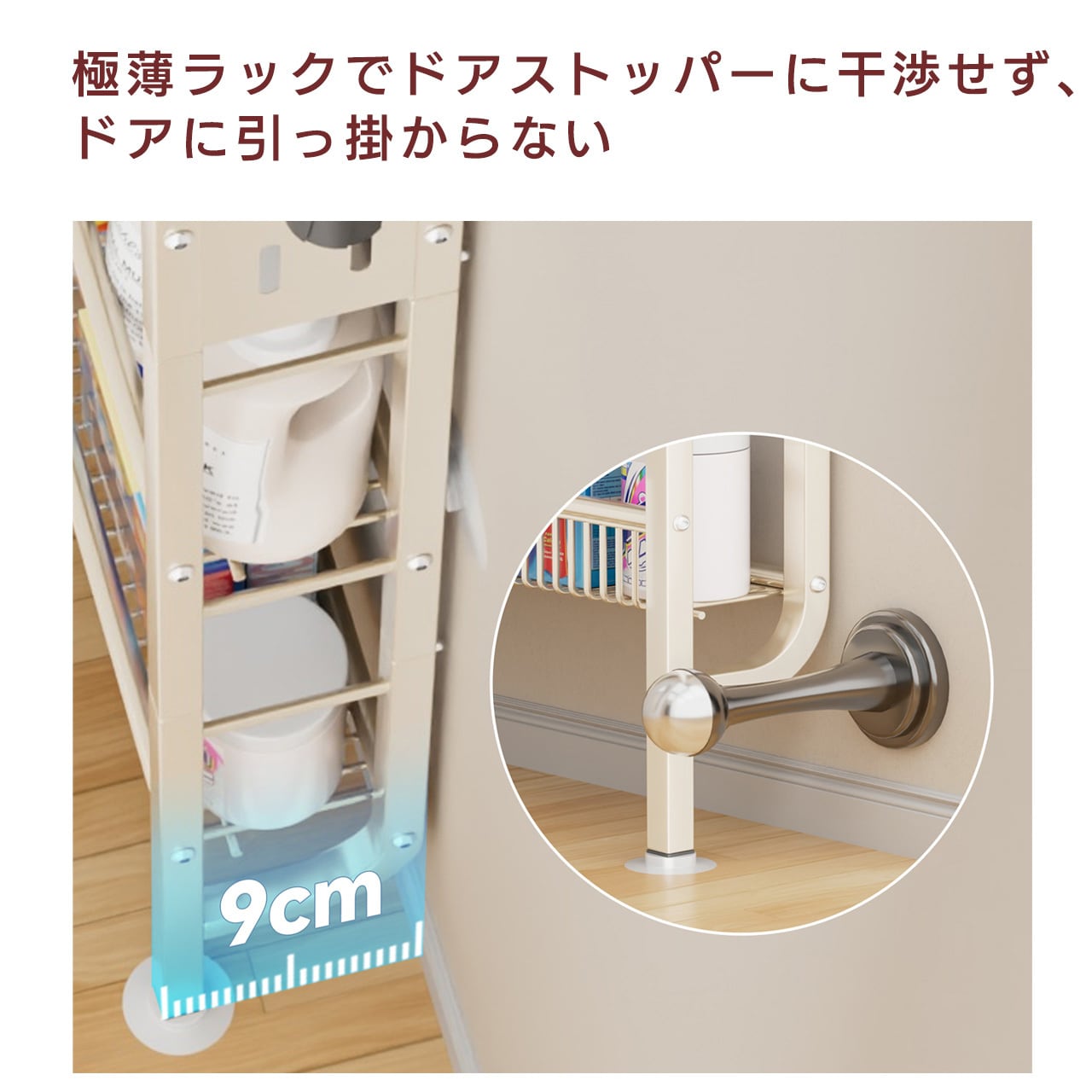 ✅ 厚さわずか 9cm ドア裏のデッドスペースを有効活用厚さわずか 9cm の極薄設計で、ドアと壁の隙間にスッキリ収まり、ドアの開閉を妨げません。今まで活用できなかったドア裏のデッドスペースを、収納力に変えます。