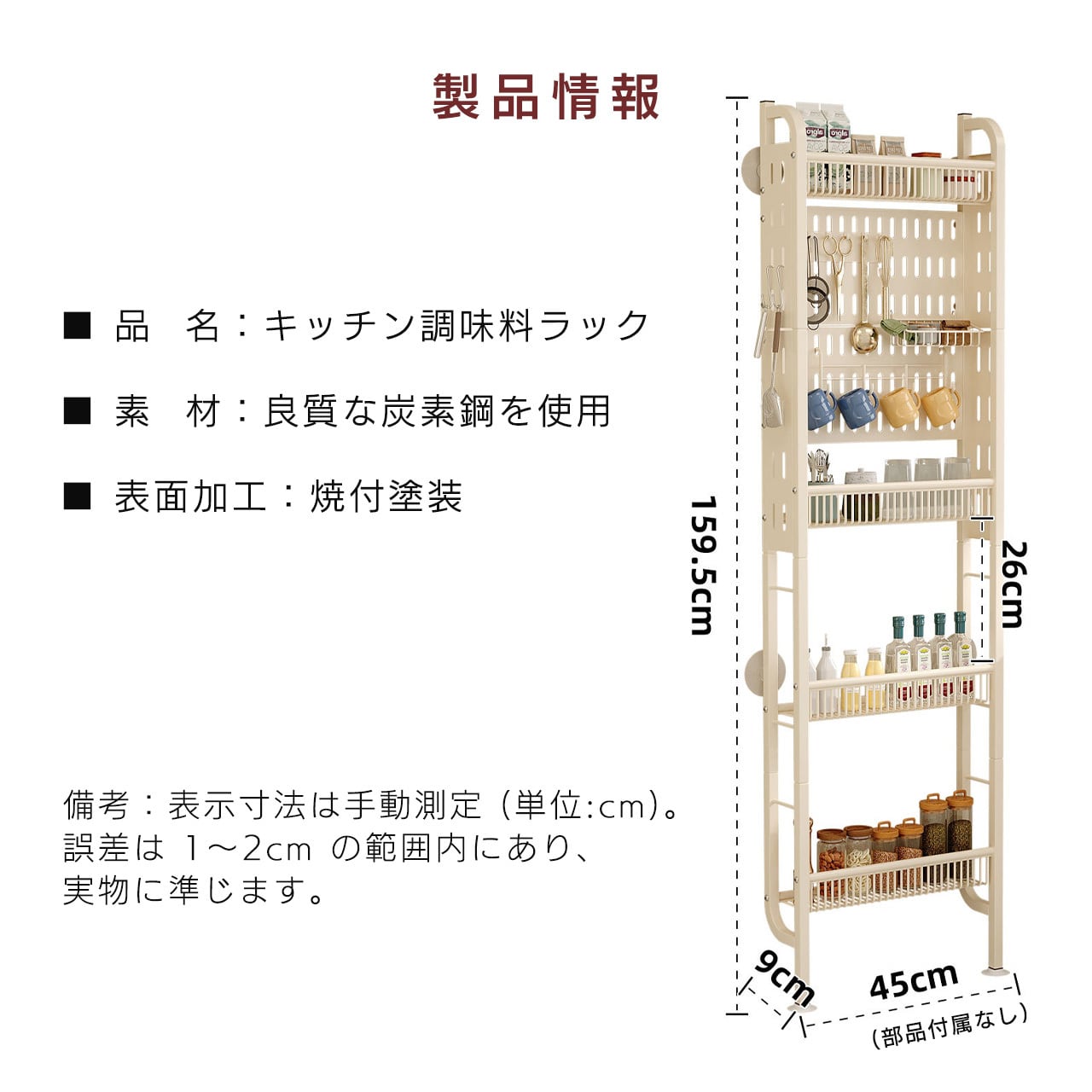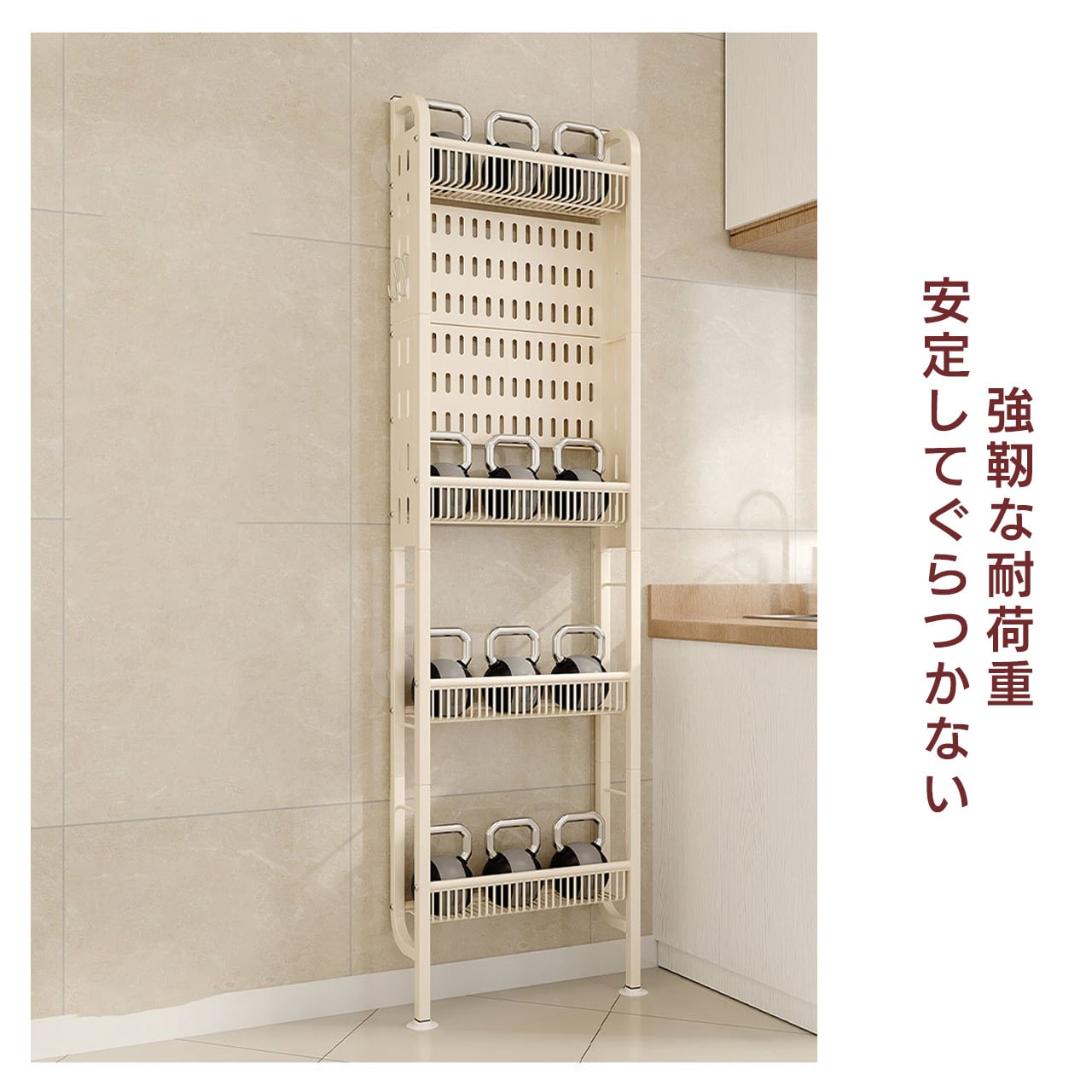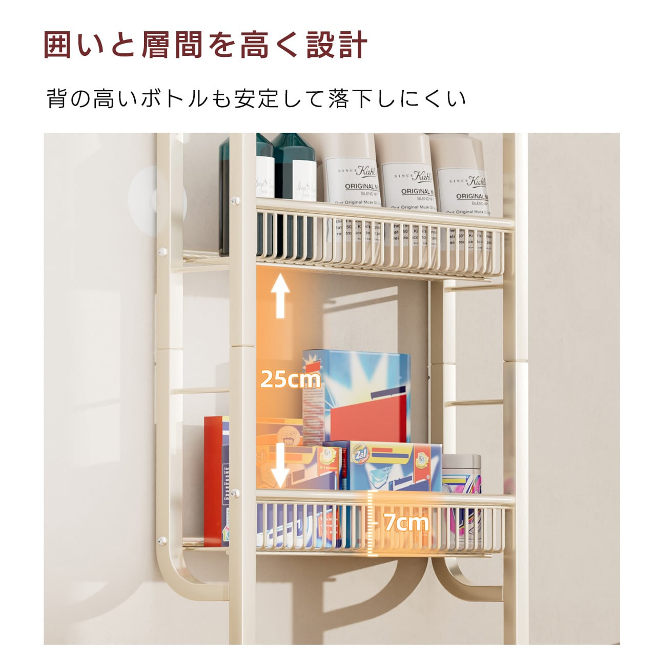 ✅ 高耐久スチール製 荷重に強く変形しにくい高品質なスチール素材を使用し、頑丈なフレーム構造で荷重に強く変形しにくい。洗剤やタオルなどの重い物を載せても安心して使用できます。