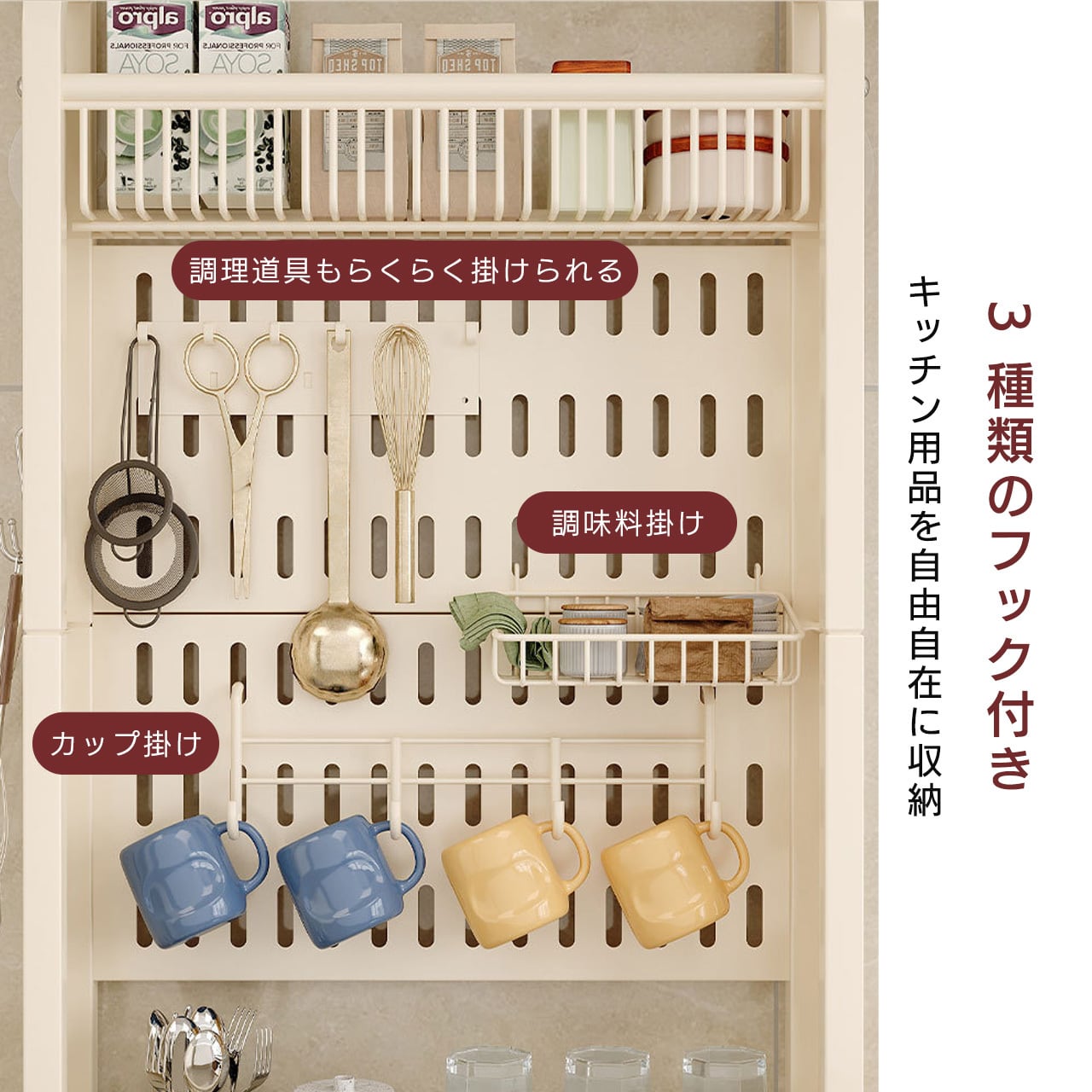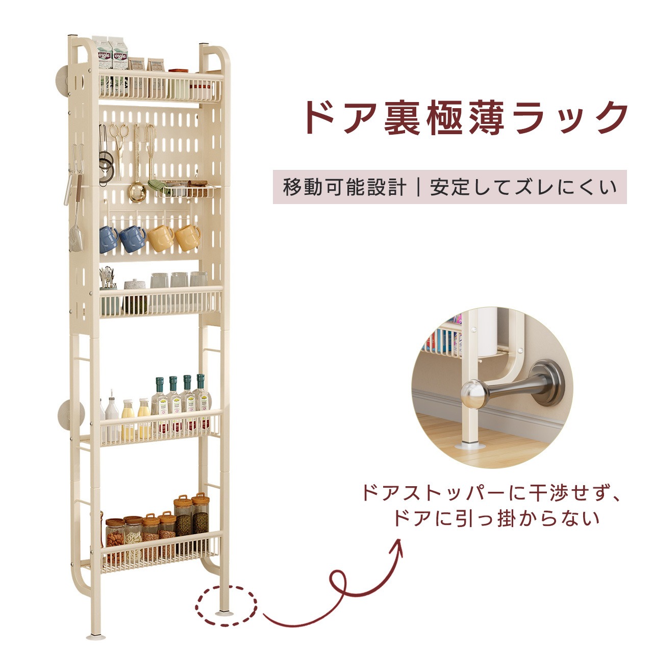 - ドア裏:デッドスペースを活用し、収納力を大幅に UP