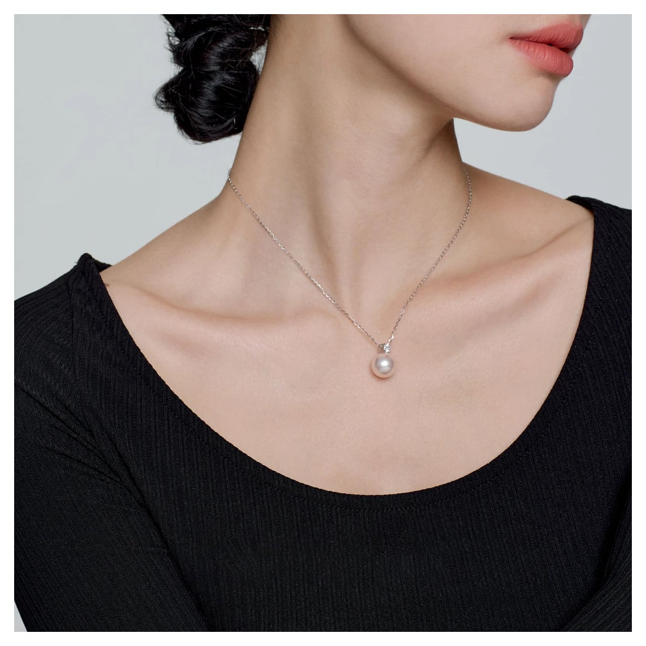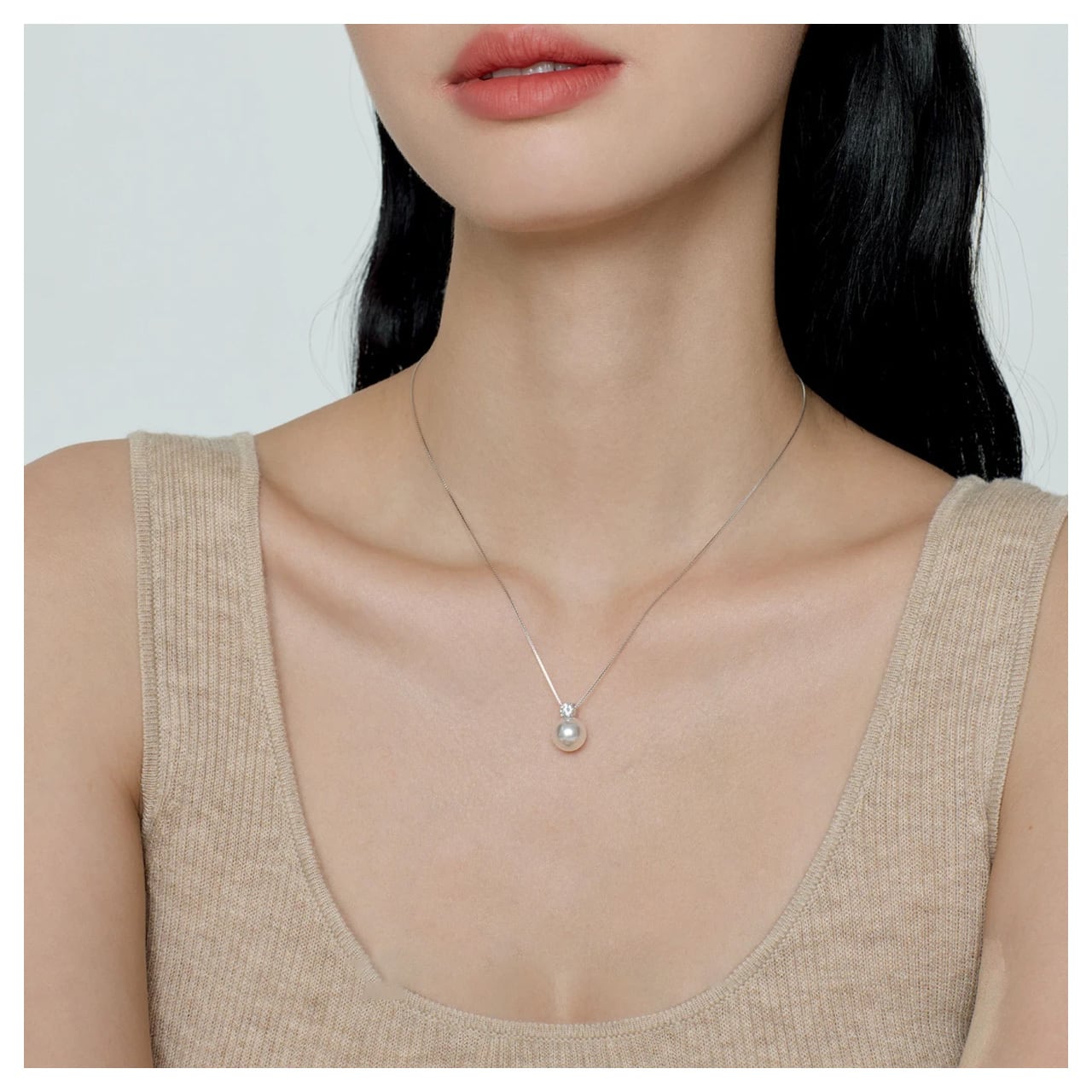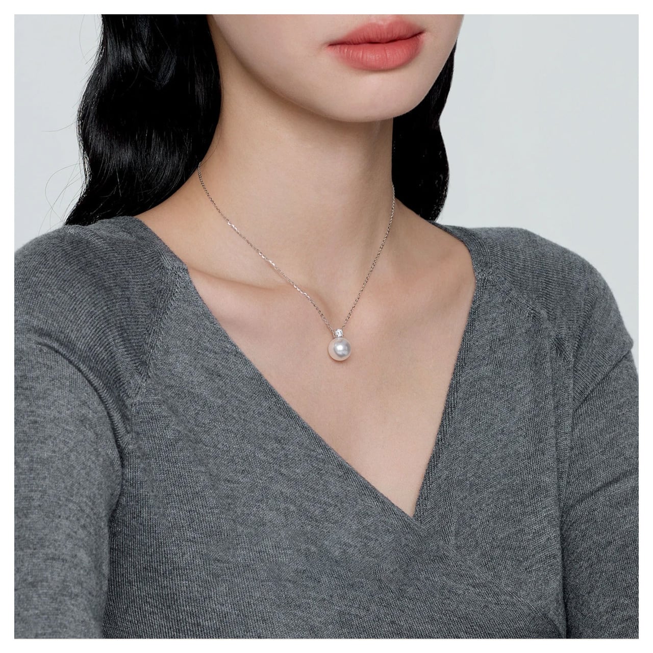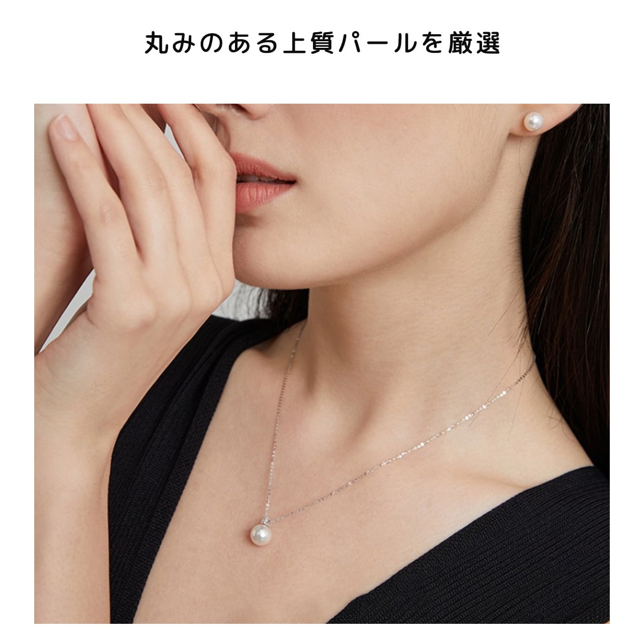 大粒のパールが首元に存在感を与え、単品でも十分な印象を与えます。重ね付けの手間なしに、洗練された高級感を纏えます。