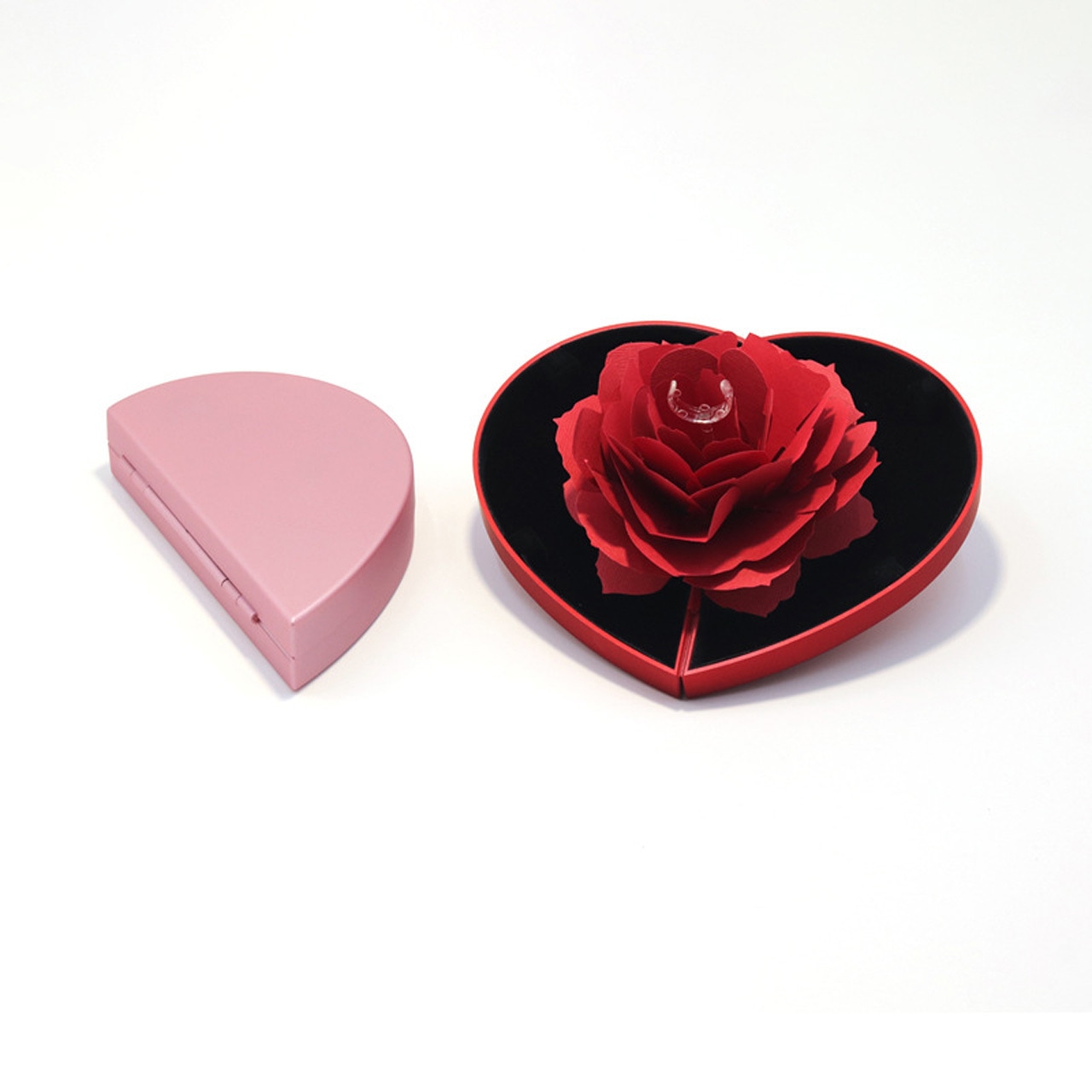 B403 .クリエイティブ回転式 七夕・バレンタイン プリザーブドフラワーギフトボックス ハート型アクセサリーケース(リング・ネックレス用)