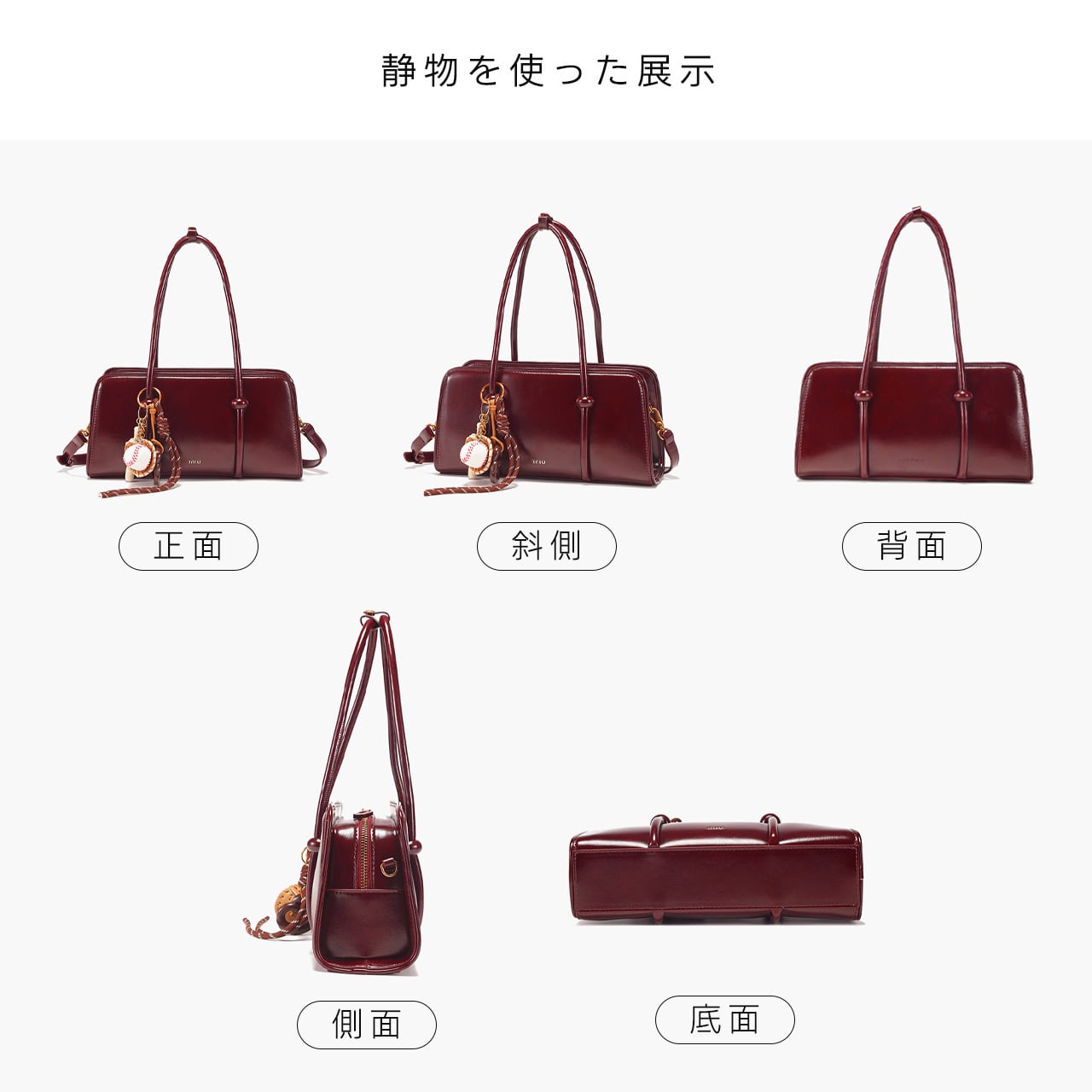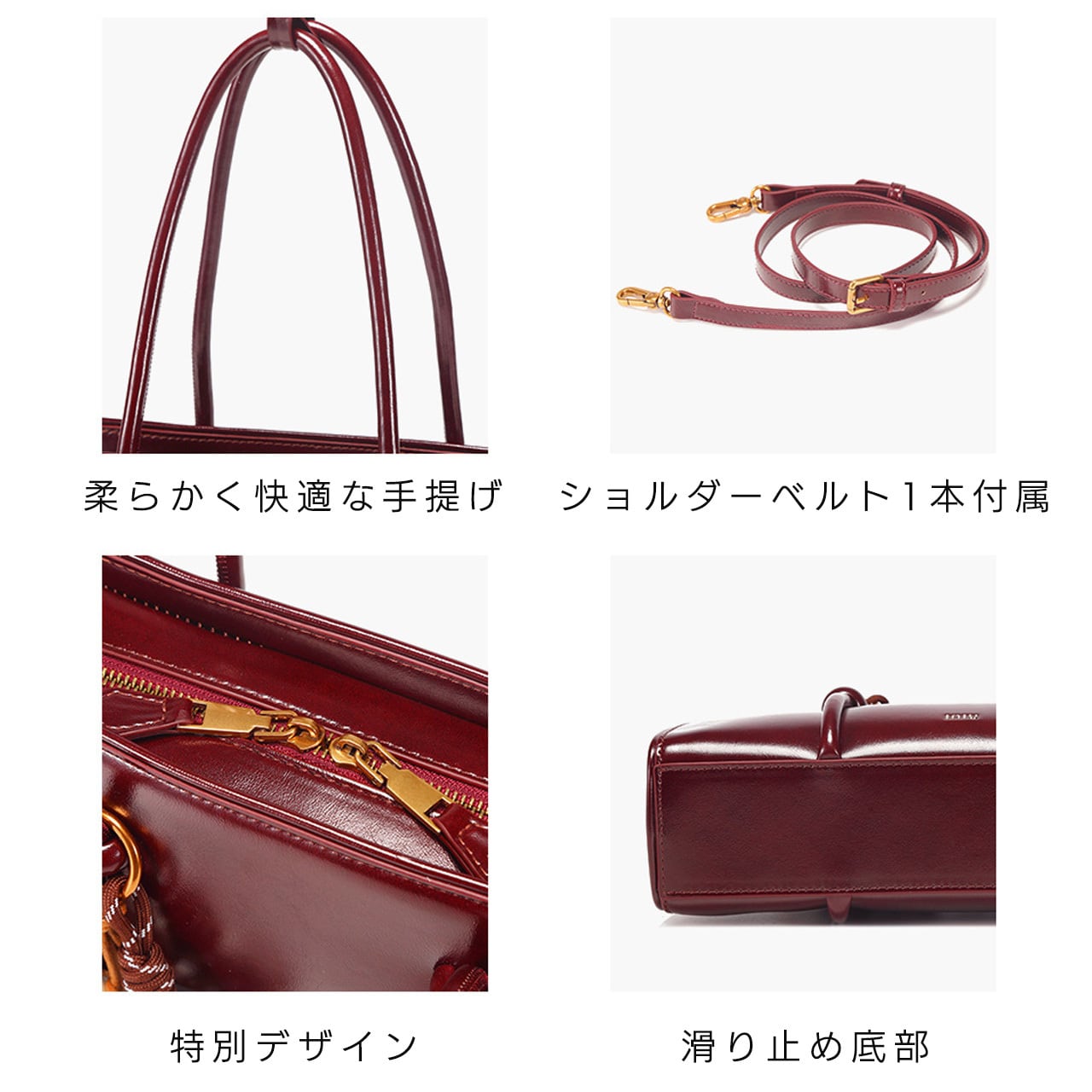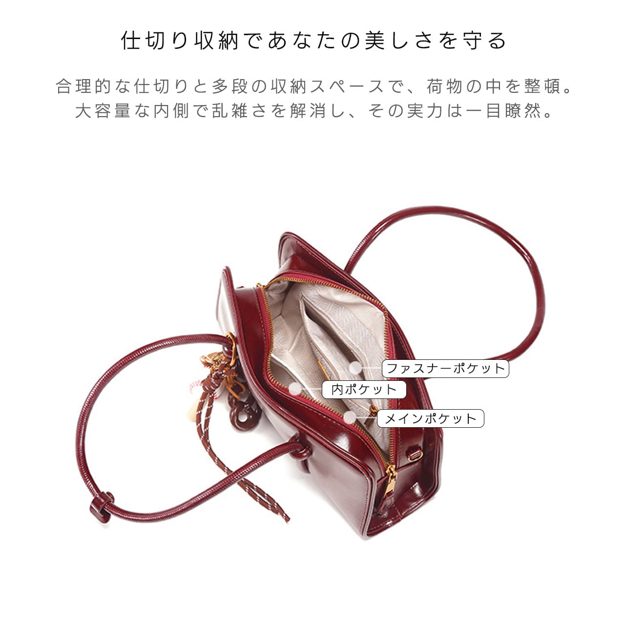 手提げ、ショルダー、クロスボディの 3 つの持ち方に対応。シーンに合わせて持ち方を変えられ、使い勝手が抜群です。