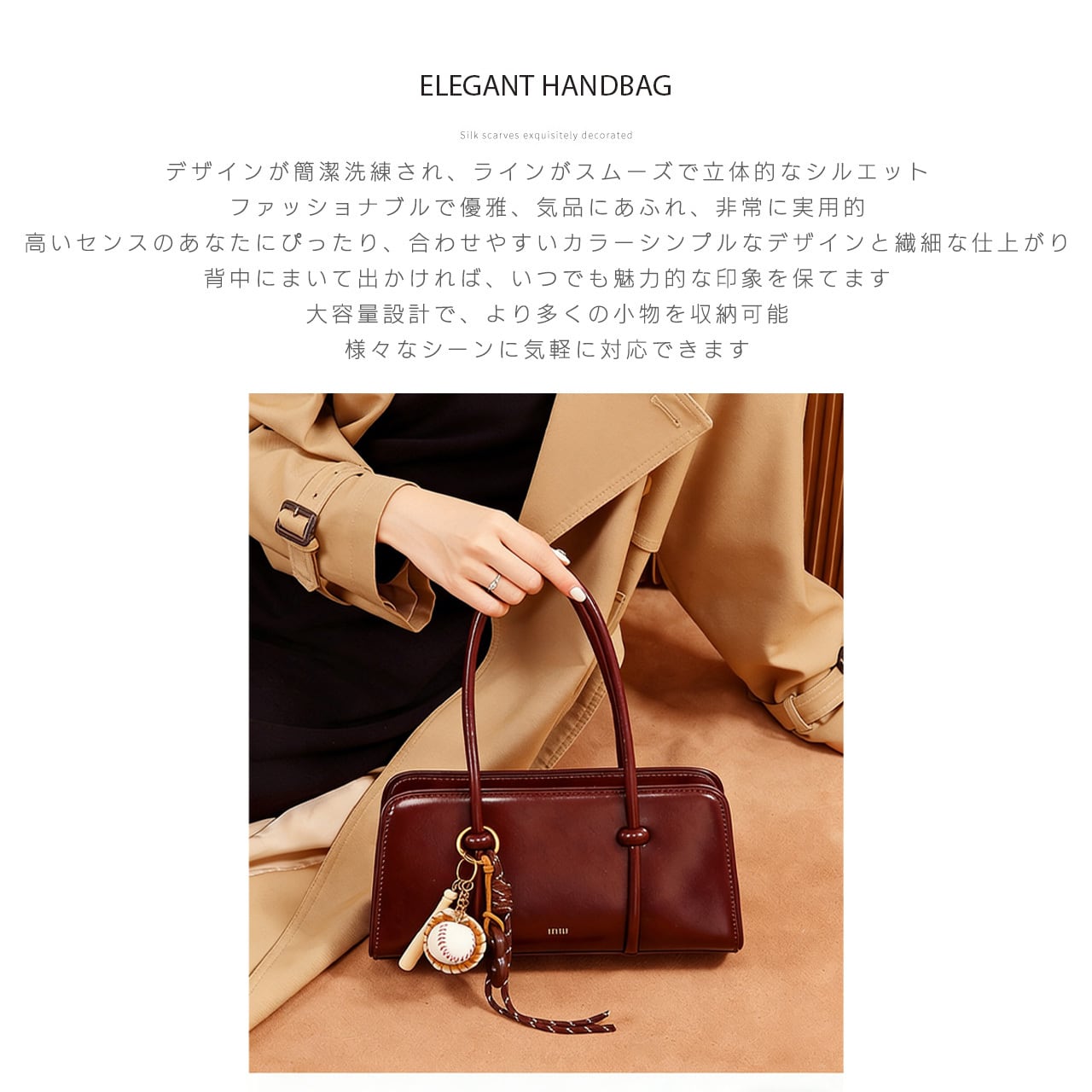 クラシカルなラインで、どんなコーデにも合わせやすい。日常使いはもちろん、フォーマルなシーンでも活躍します。