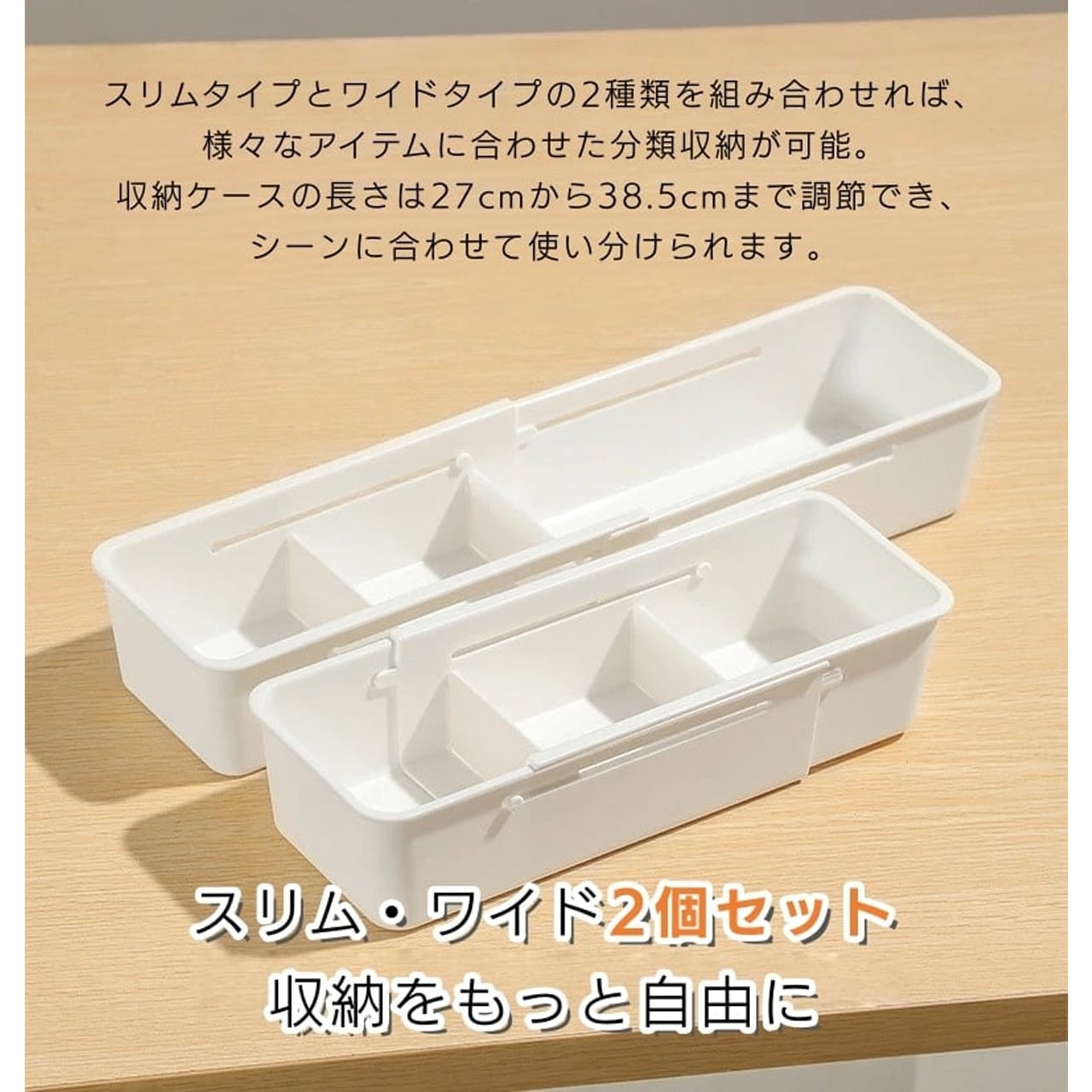 J-376 .伸縮 収納ボックス 仕切り付き プラスチック 引き出し 整理 小物 キッチン クローゼット オフィス スリム ワイド セット 伸ばせる 折りたたみ 隙間収納 インテリア ホーム