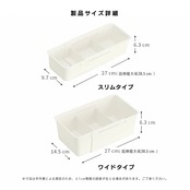 細かい小物には「スリムタイプ」、少し大きめのアイテムには「ワイドタイプ」。お好みや収納するものに合わせて、単体または組み合わせてご使用いただけます。
