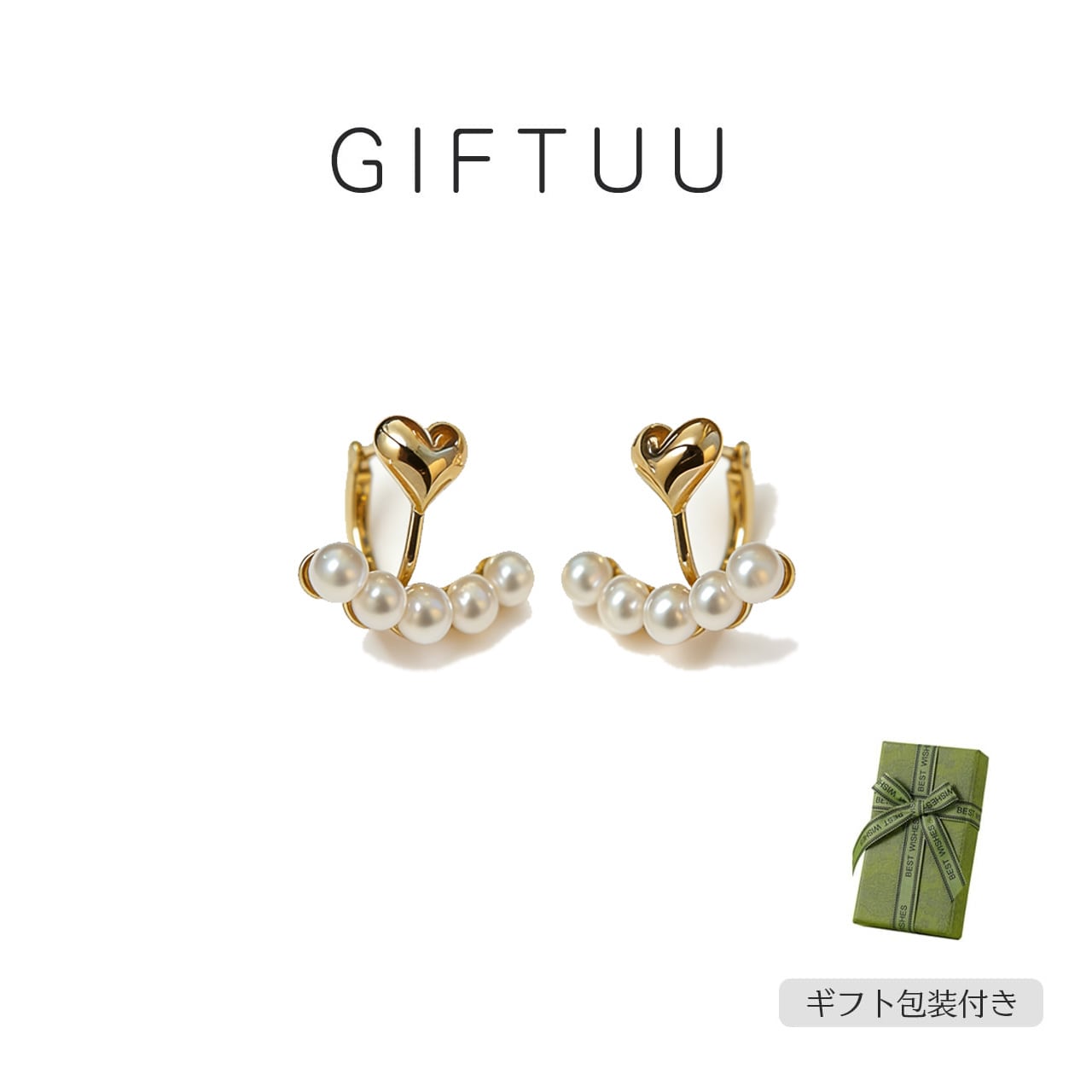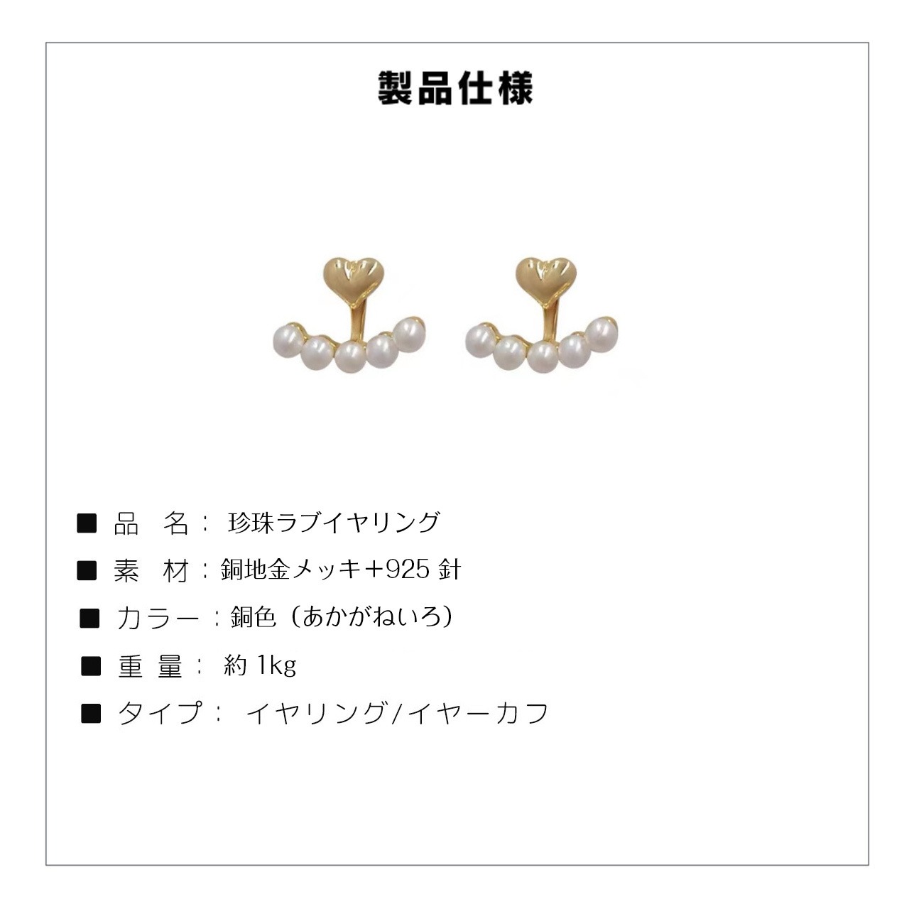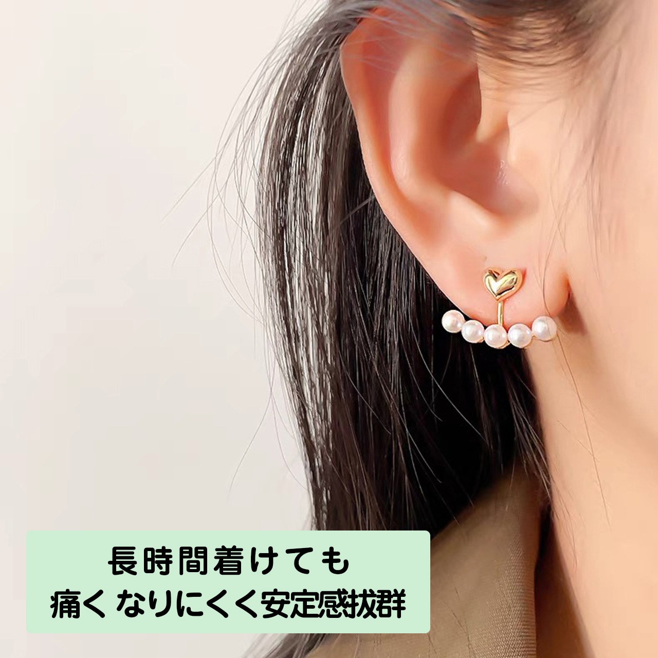 ✨フレンチ パールハート イヤーカフ ピアス 穴なし OK レディース アクセサリー