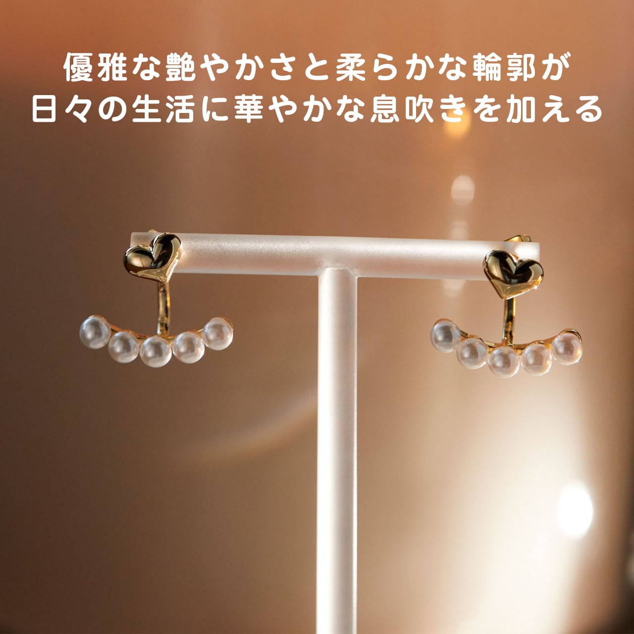 ハートモチーフと艶やかパールが、優雅で可憐な雰囲気を演出