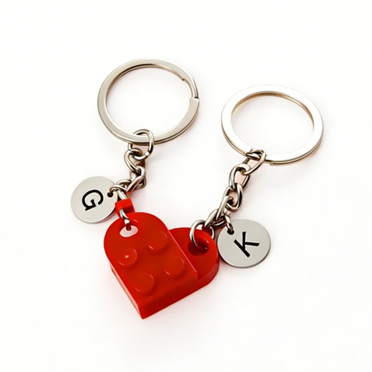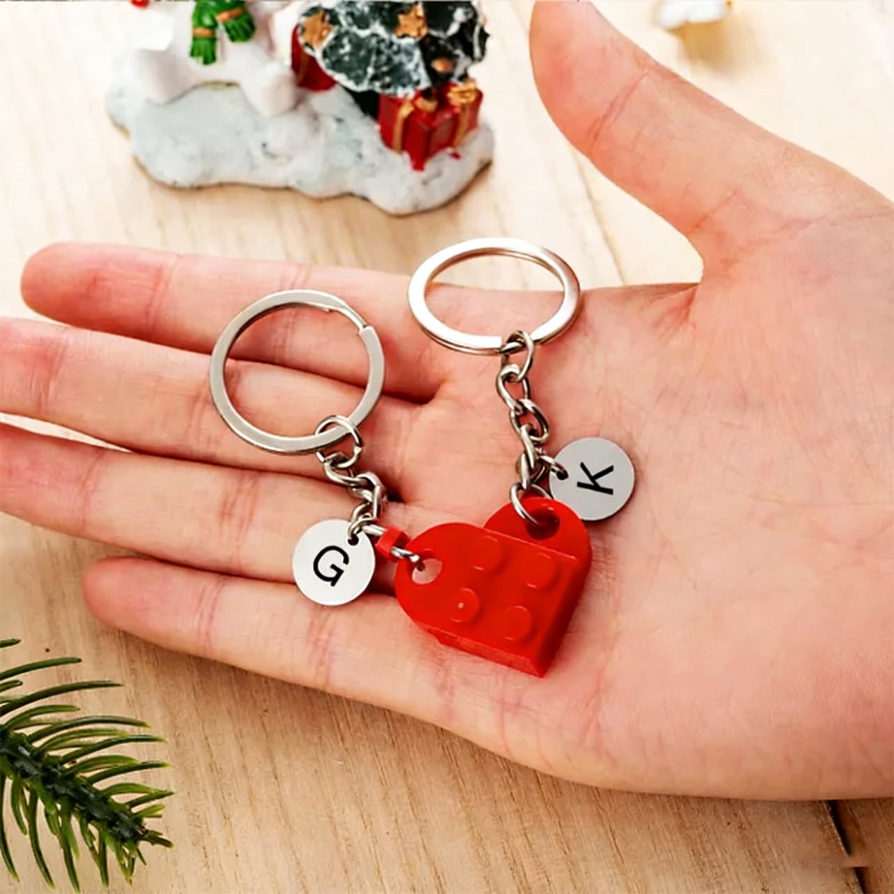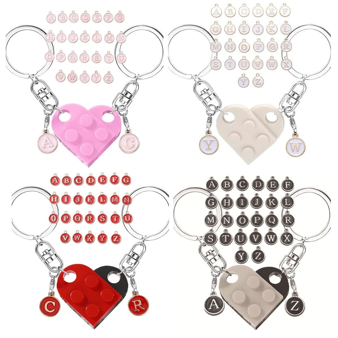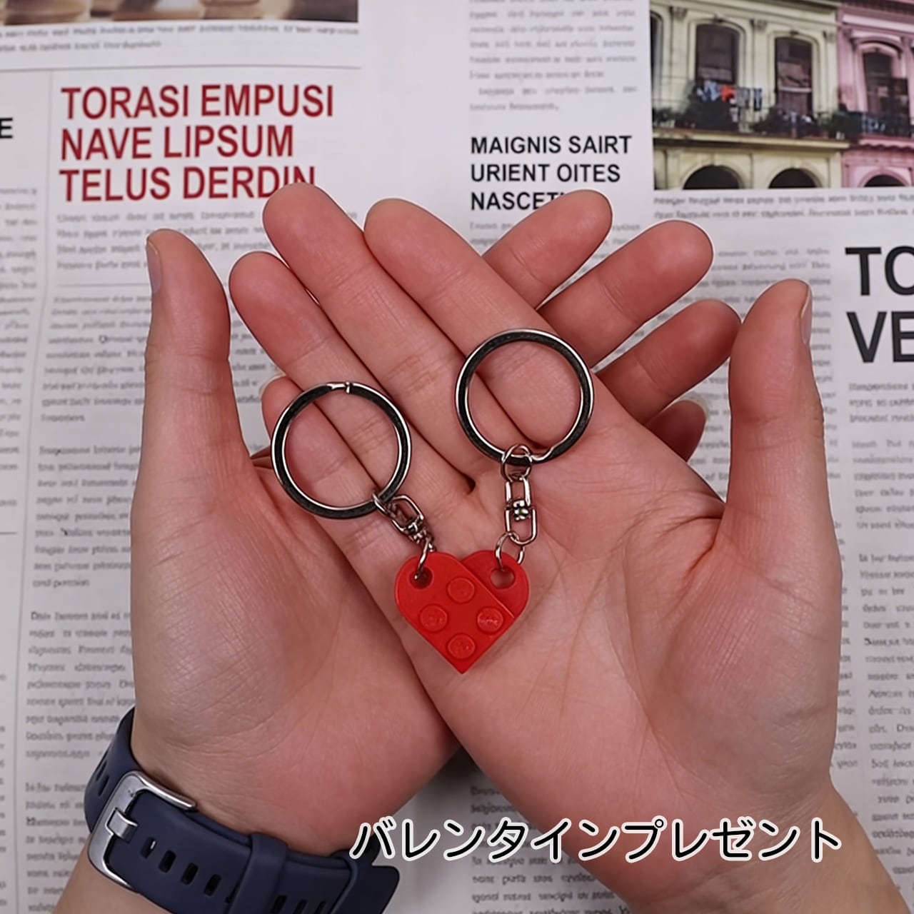ペア対応 ハートブロックキーリング 分離可能 カップル・親友用 ハンドメイドアクセサリー