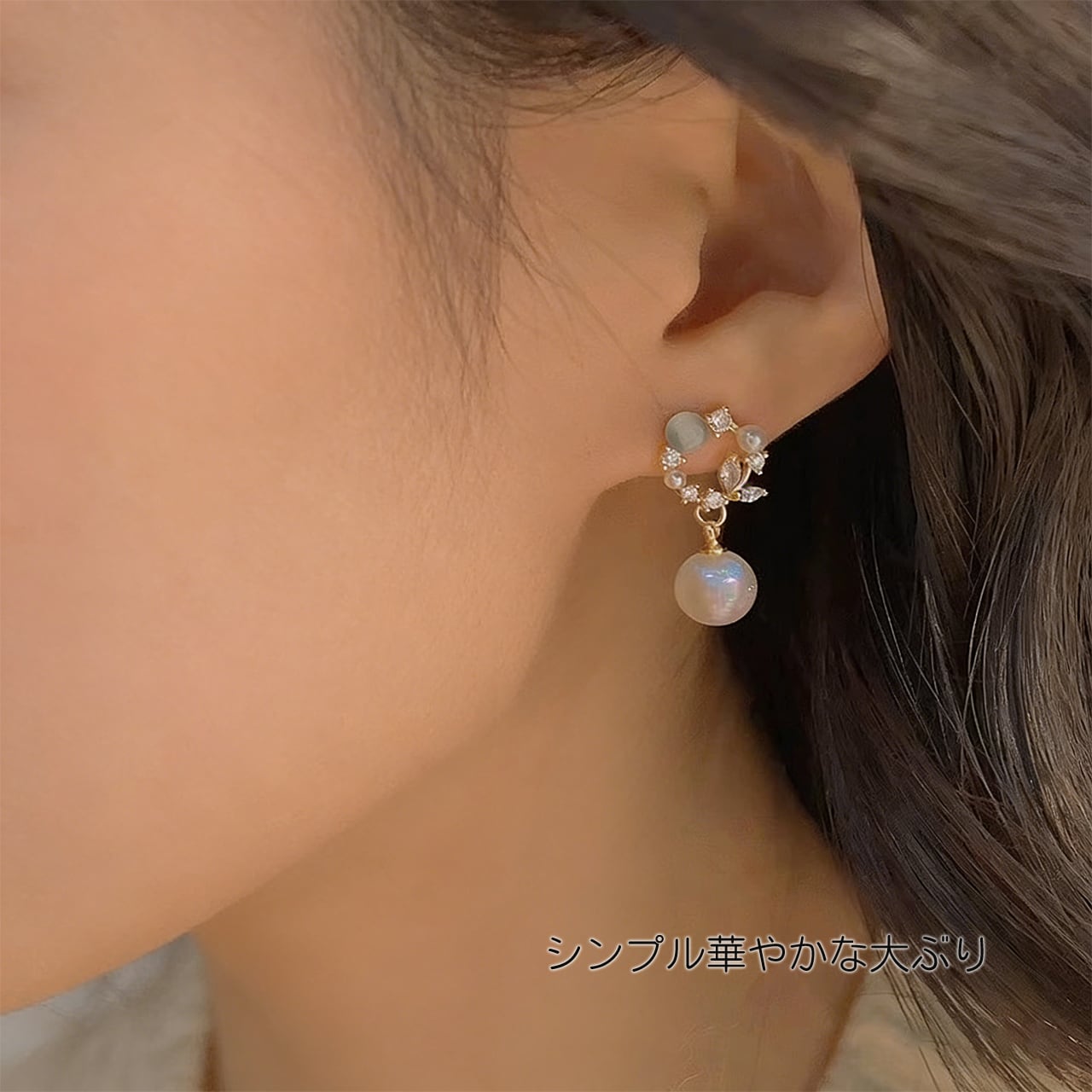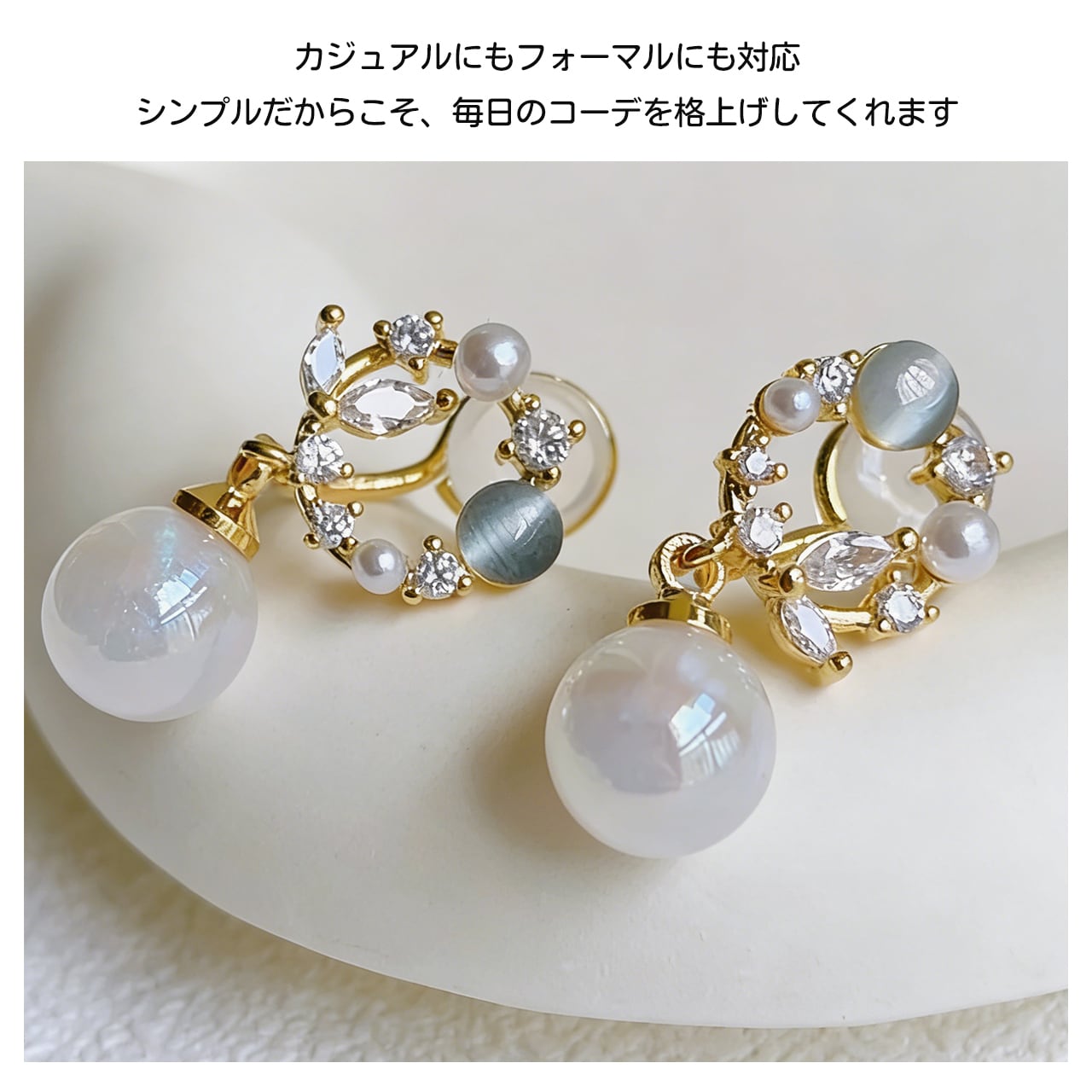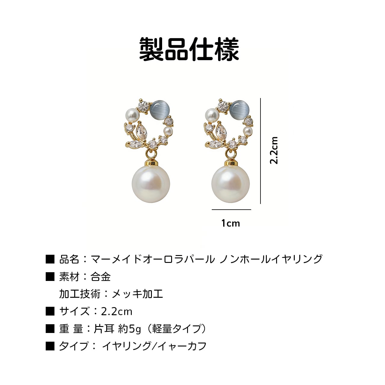 人魚姫のようなオーロラパールが、角度によって美しくきらめき、耳元に上品な華やかさをプラスします。