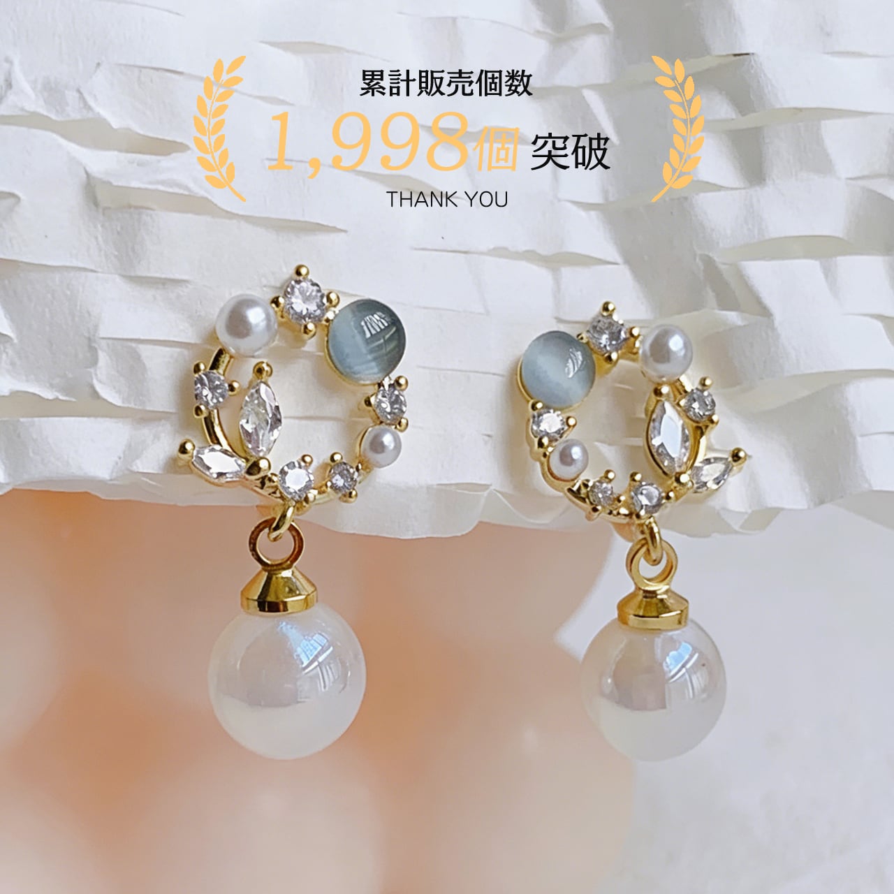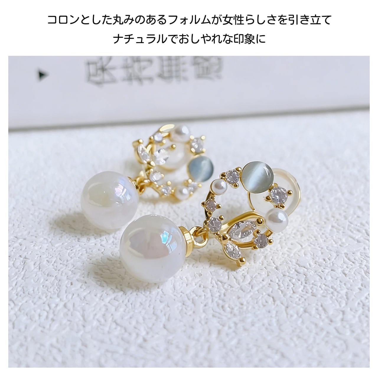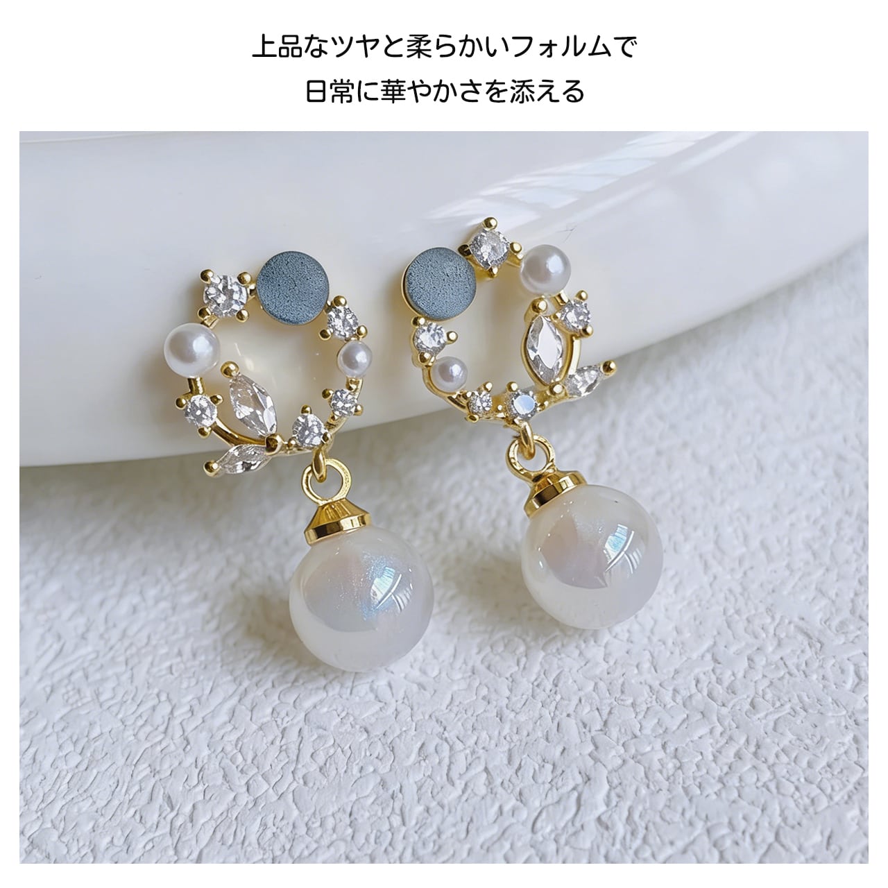 人魚姫のようなオーロラパールが、角度によって美しくきらめき、耳元に上品な華やかさをプラスします。
