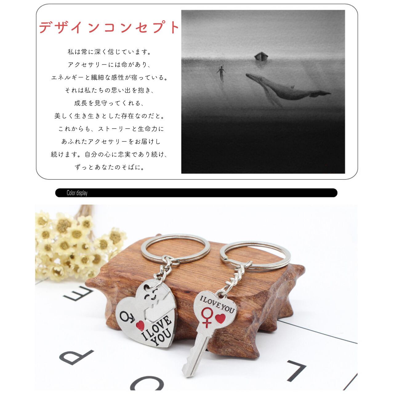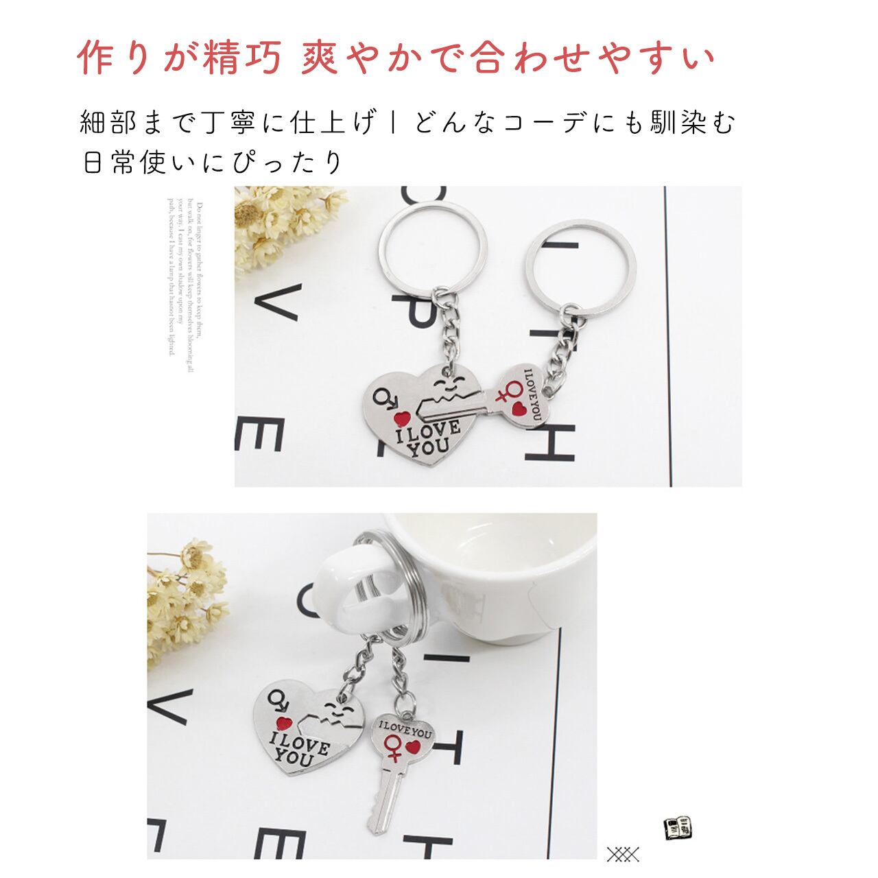 高品質金属製で長く愛用でき、毎日のキーに付けるだけで、いつでも二人の絆を感じられる、特別なアクセサリーです。